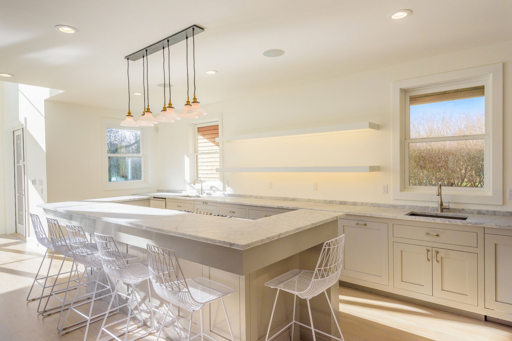 This "Modern Classic" from Modern Green Home combines peerless quality and innovative design on a uniquely private road in the heart of the Amagansett Lanes. It's a short distance to the beach, town, and train from the south facing. Light-filled living space, open floor plan with airy tall ceilings and doors that open onto the deck, pool and gardens. With room to relax or entertain. The home is 4,500 sq. ft. on the top two floors with an add