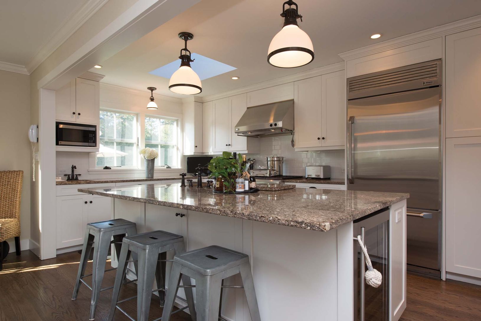 Completely renovated classic Hampton's home right around the corner from East Hampton Village and it's world class shopping, dining and beaches. Stained cedar shingle exterior with wood roof, galvanized steel gutters, and Anderson 400 series windows. All new multi-zoned forced air HVAC, central vac, alarm. HEAT/AC can be controlled from app on iPhone to ensure house is warm/cool for arrival. On the first floor is the living room with fireplace