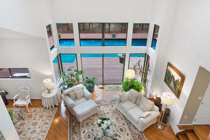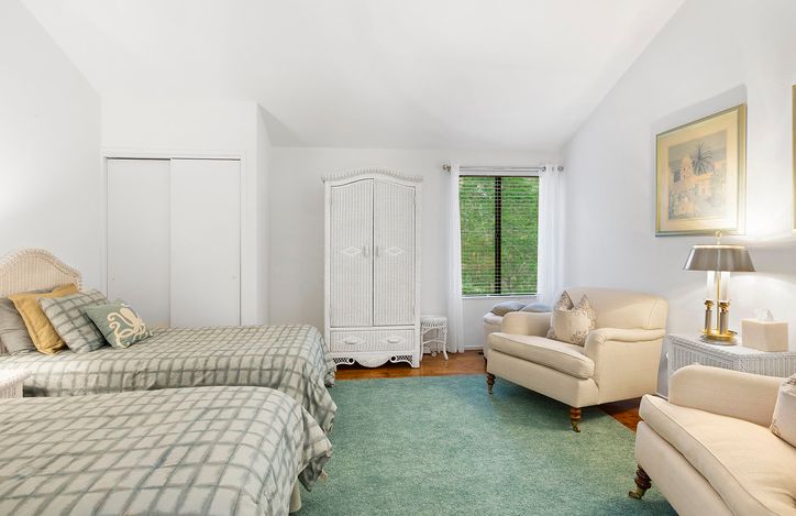 On a secluded cul-de-sac in East Hampton is this sun lit home on 2 acres. A 2 story great room with walls of glass face out to your oversized pool surrounded by a mahogany deck. Inside your eat in kitchen with gourmet appliances opens to a formal dining room and great room. Four oversized bedrooms and one smaller bedroom or office a garage and lower level complete this Hamptons home. The master bedroom with ensuite on the 2nd floor has a large