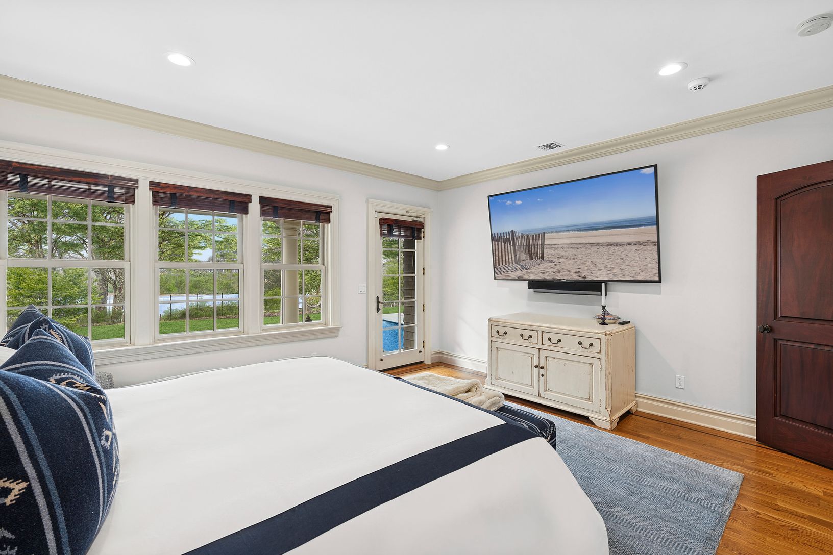 A rare pond front offering in Bridgehampton South. Set on 0.92± acres overlooking picturesque Kellis Pond, this impeccably maintained three level 6,200± square foot gated traditional-style home delivers a compelling blend of scale, elegance, and waterfront serenity. The home opens to a dramatic double-height foyer and flows into a sun-filled living room with fireplace. A bright eat-in kitchen with top of the line appliances and breakfast nook