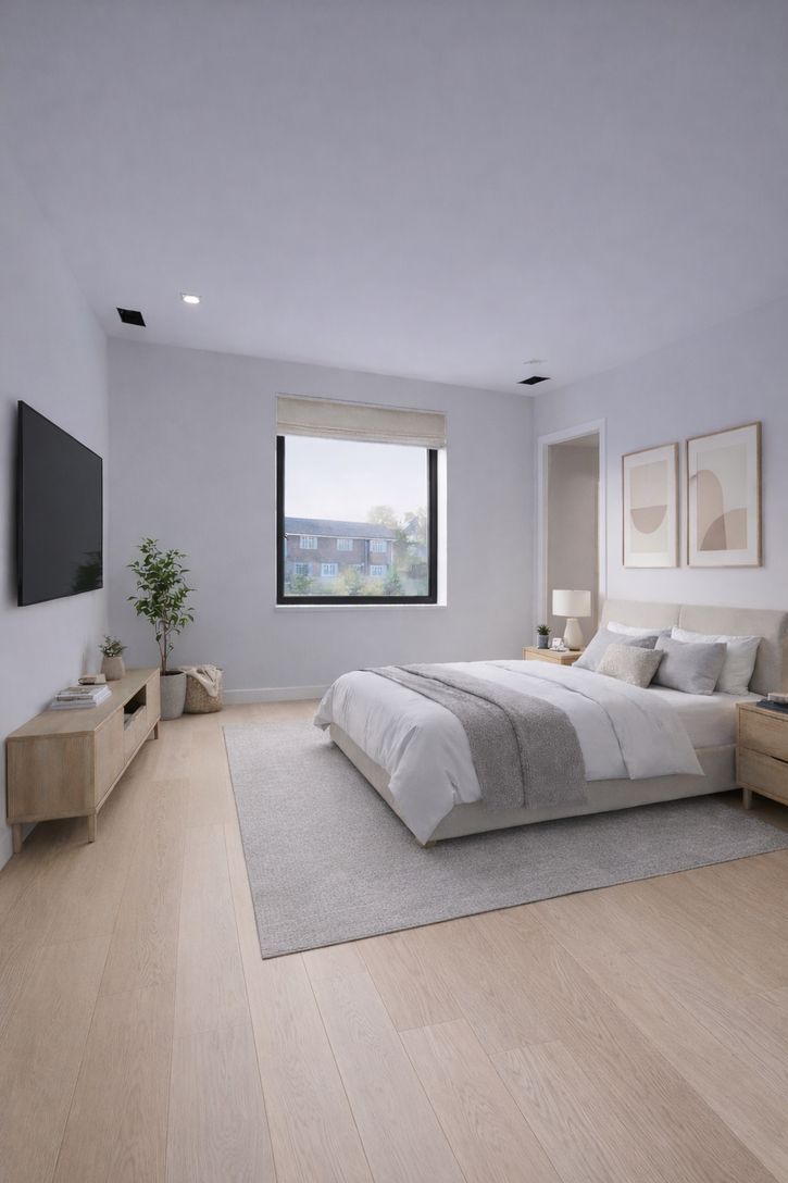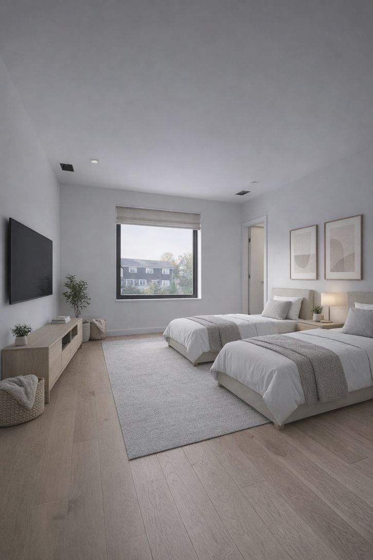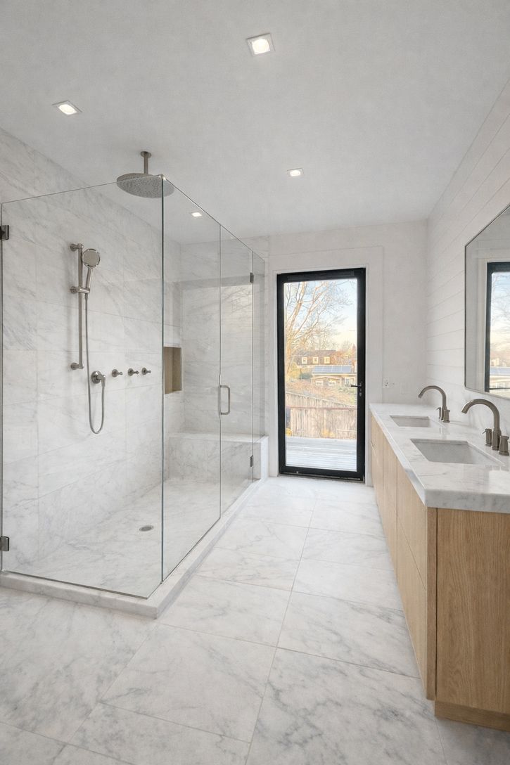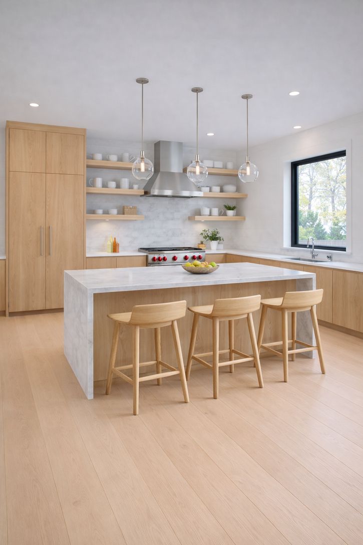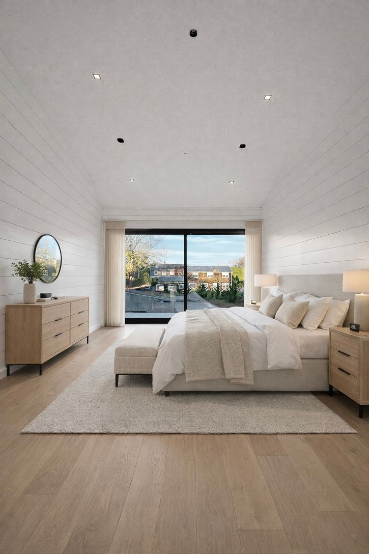 This newly custom-designed 3,214 SF home offers 5 bedrooms and 4 baths, featuring a separate one-of-a-kind oversized barn with 18-foot ceilings. A striking 8-foot by 4-foot pivot door opens to an expansive open-concept floor plan with 10-foot ceilings throughout. The modern kitchen is equipped with Subzero appliances. Throughout the home, wide-plank engineered oak flooring and sleek, minimalist wood trim create a sophisticated atmosphere. The
