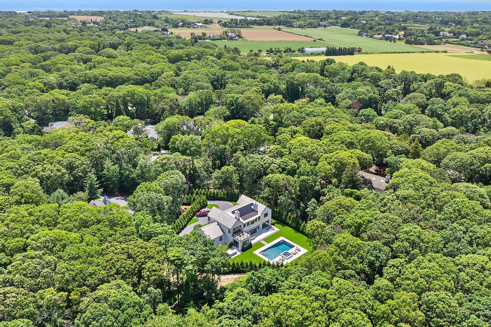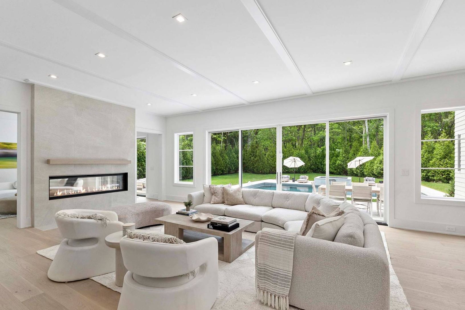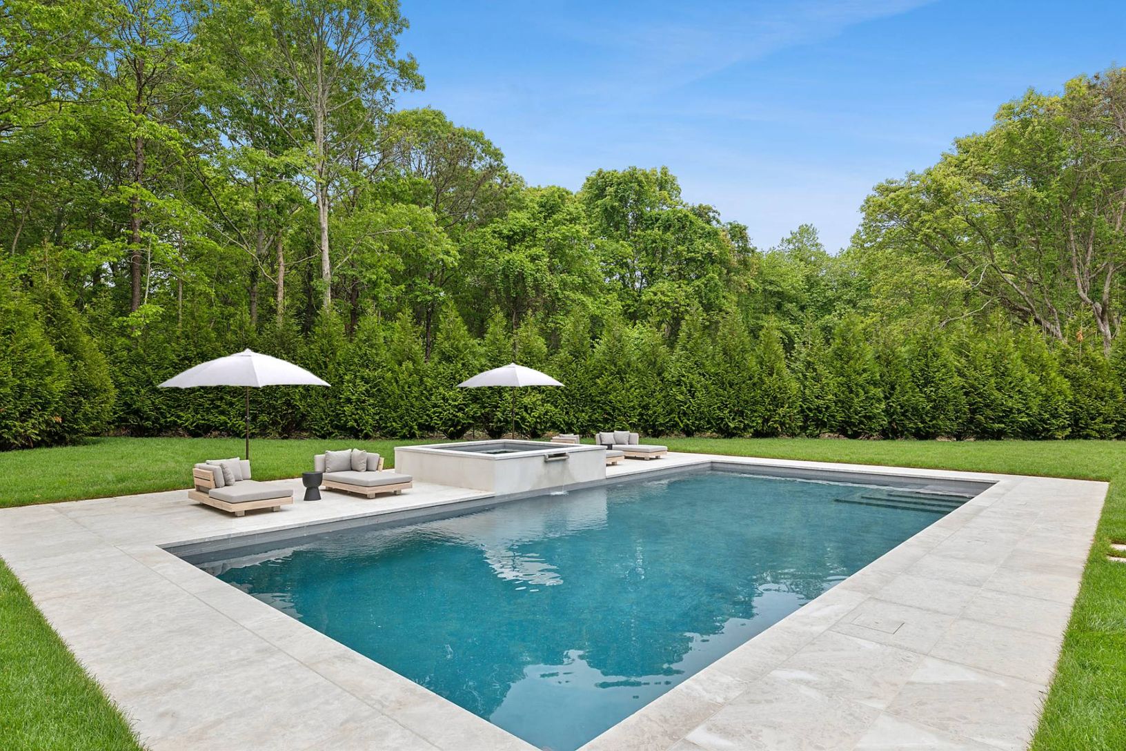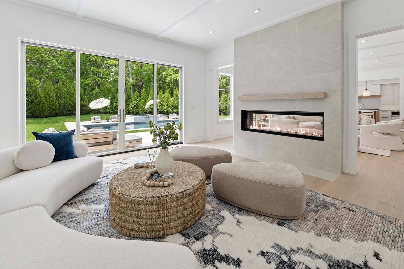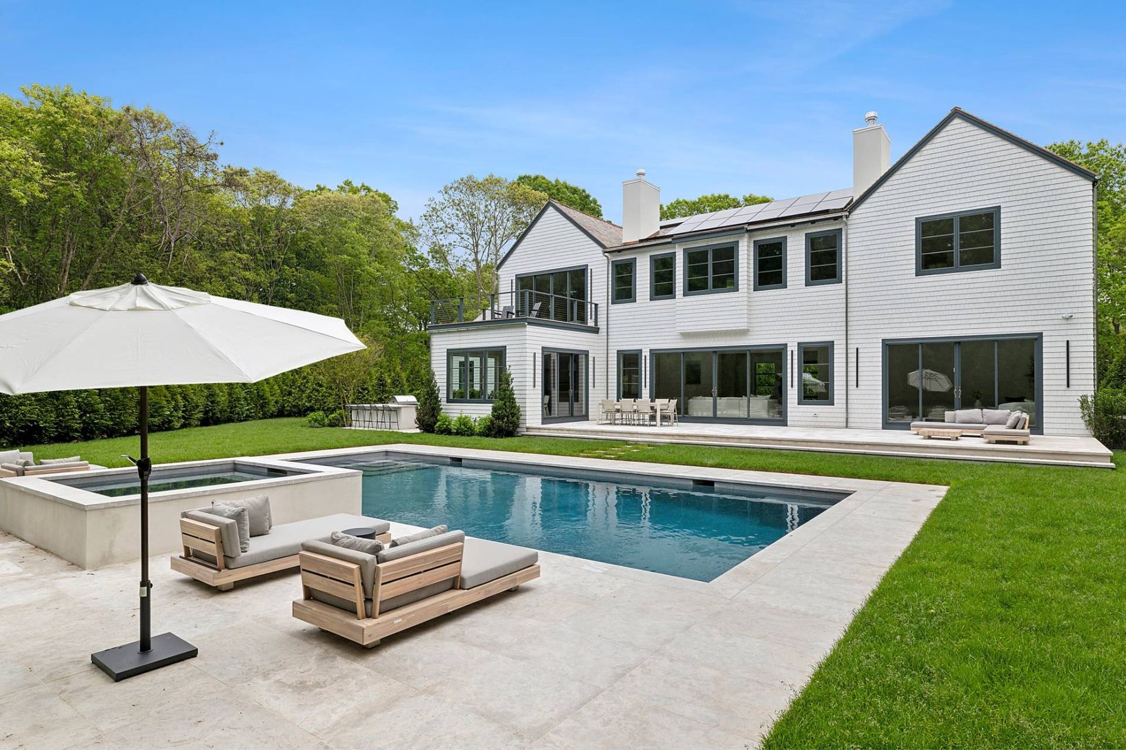 Ready for immediate occupancy and fully furnished. Stunning new construction from renowned Hamptons Paramount Development Group, South of the Highway in Wainscott. Sited on a flag lot off the end of a cul-de-sac and surrounded by scenic easement, this brand-new home has 7,366 +/- sq. ft. of living space on 3 levels with 7 bedrooms, 7.5 baths, an attached 2-car garage, and heated saltwater pool with an optional pool house. Seamless luxury insid