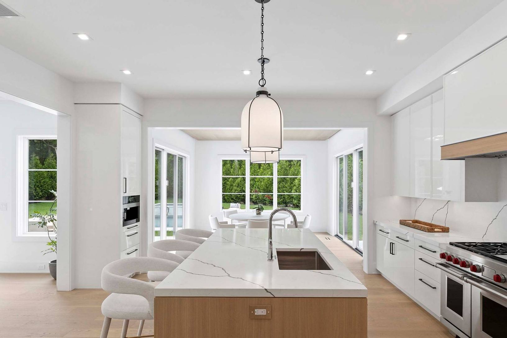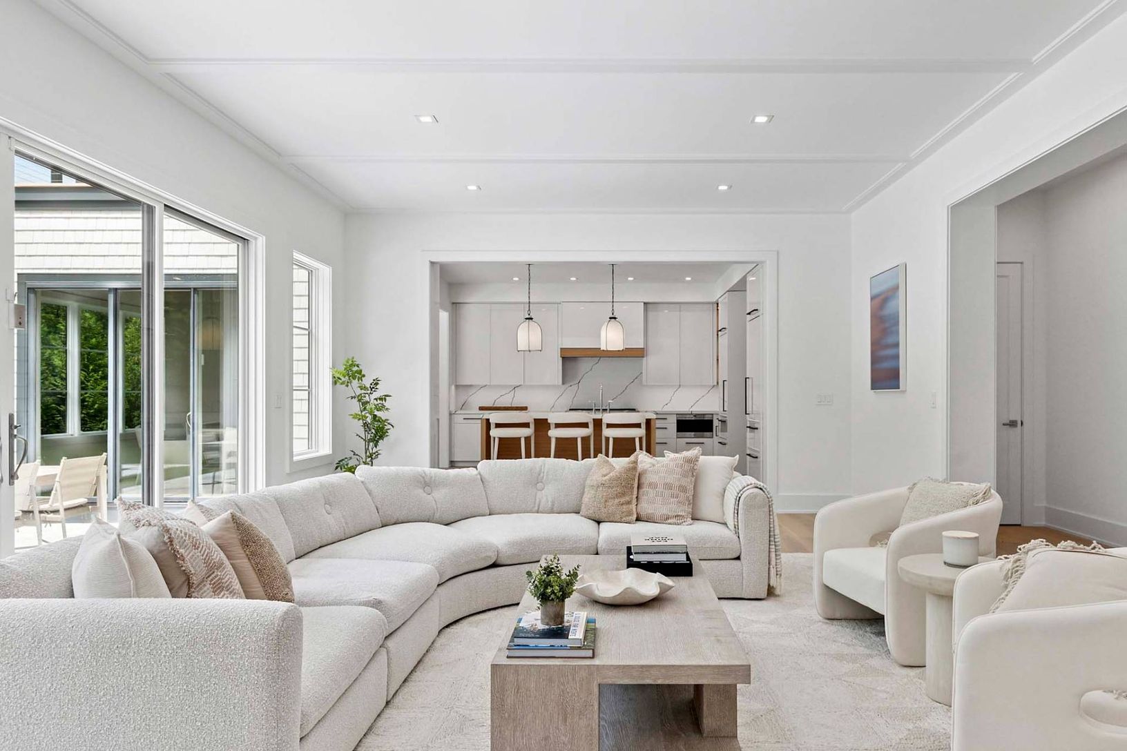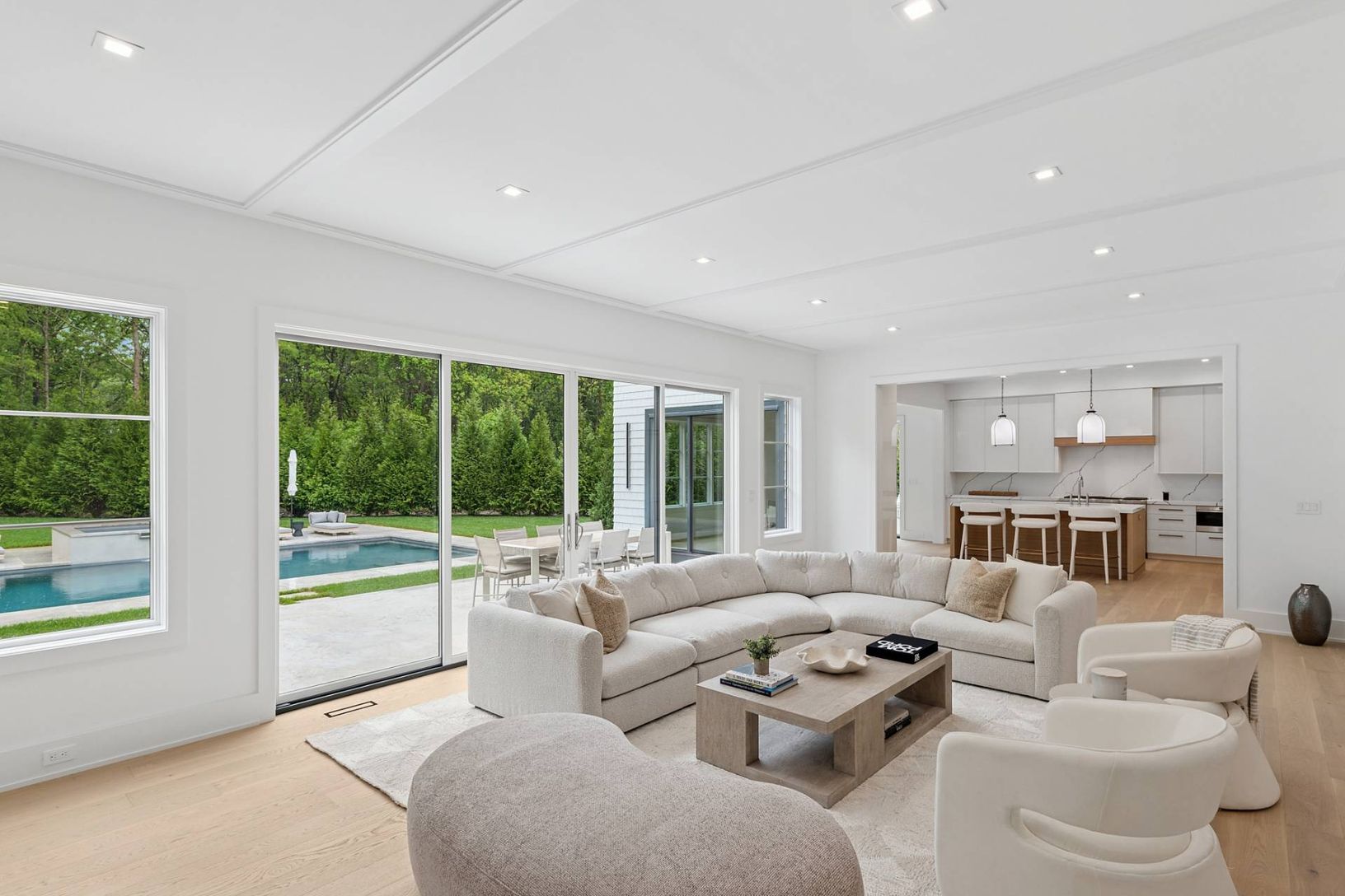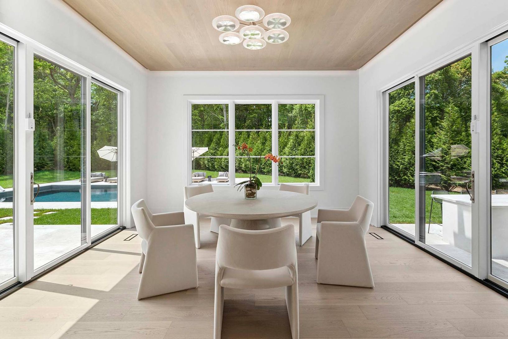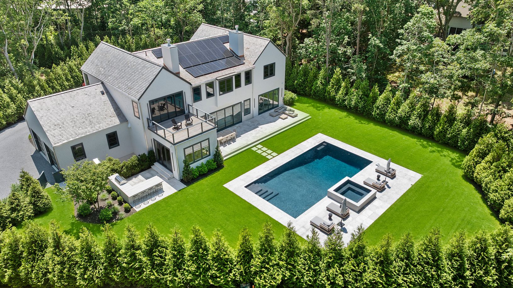 Ready for immediate occupancy and fully furnished. Stunning new construction from renowned Hamptons Paramount Development Group, South of the Highway in Wainscott. Sited on a flag lot off the end of a cul-de-sac and surrounded by scenic easement, this brand-new home has 7,366 +/- sq. ft. of living space on 3 levels with 7 bedrooms, 7.5 baths, an attached 2-car garage, and heated saltwater pool with an optional pool house. Seamless luxury insid