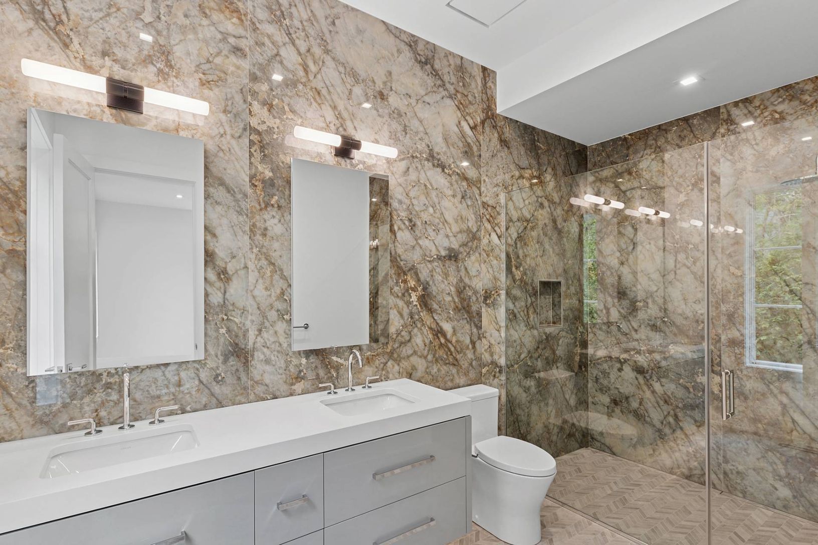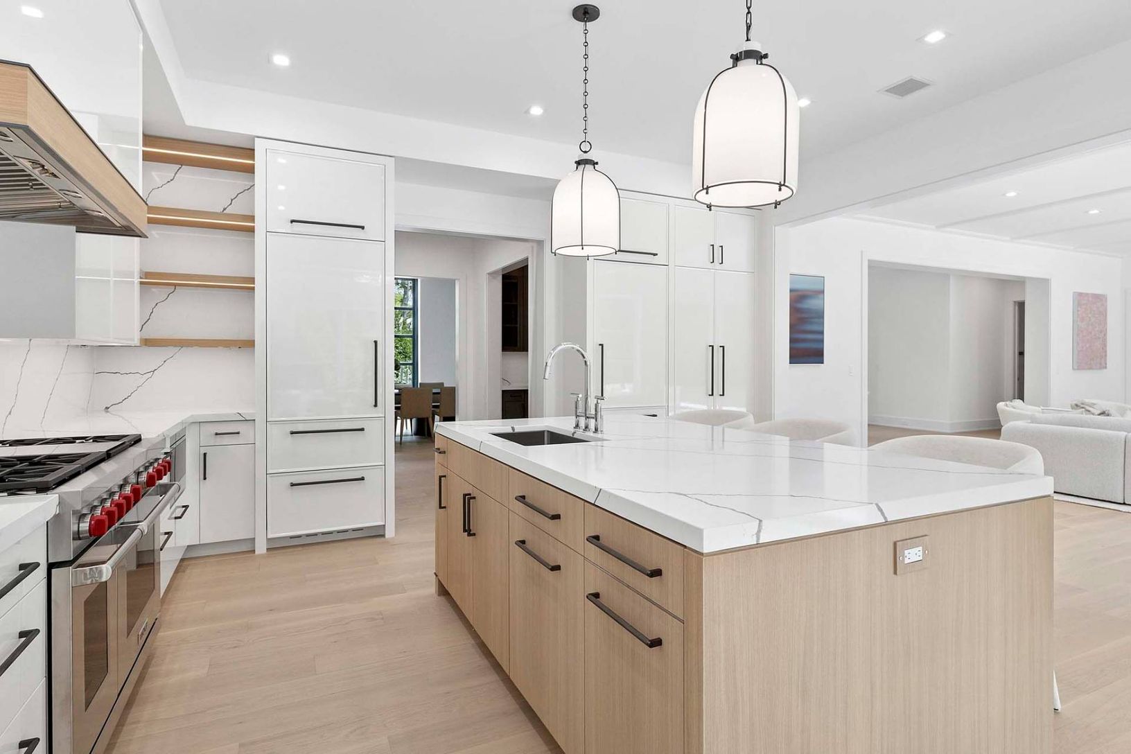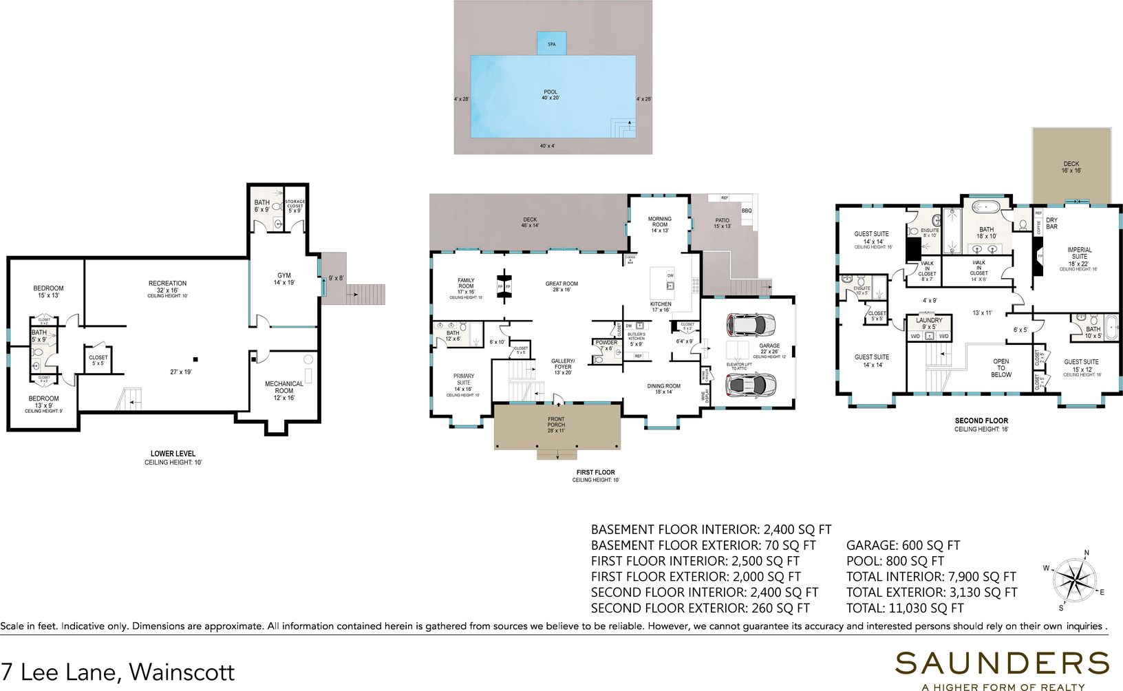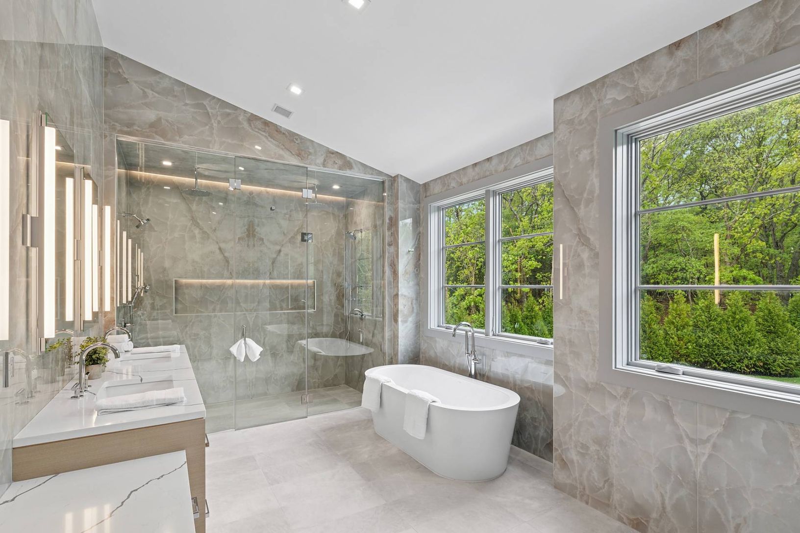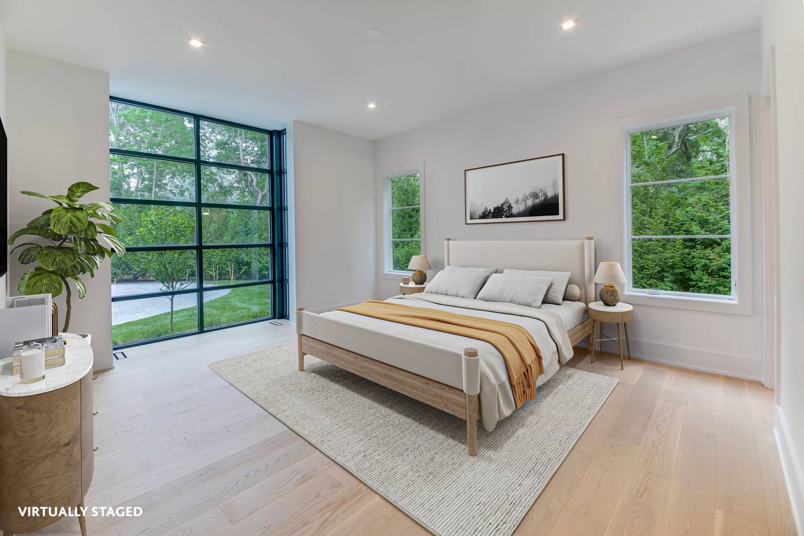 Ready for immediate occupancy and fully furnished. Stunning new construction from renowned Hamptons Paramount Development Group, South of the Highway in Wainscott. Sited on a flag lot off the end of a cul-de-sac and surrounded by scenic easement, this brand-new home has 7,366 +/- sq. ft. of living space on 3 levels with 7 bedrooms, 7.5 baths, an attached 2-car garage, and heated saltwater pool with an optional pool house. Seamless luxury insid