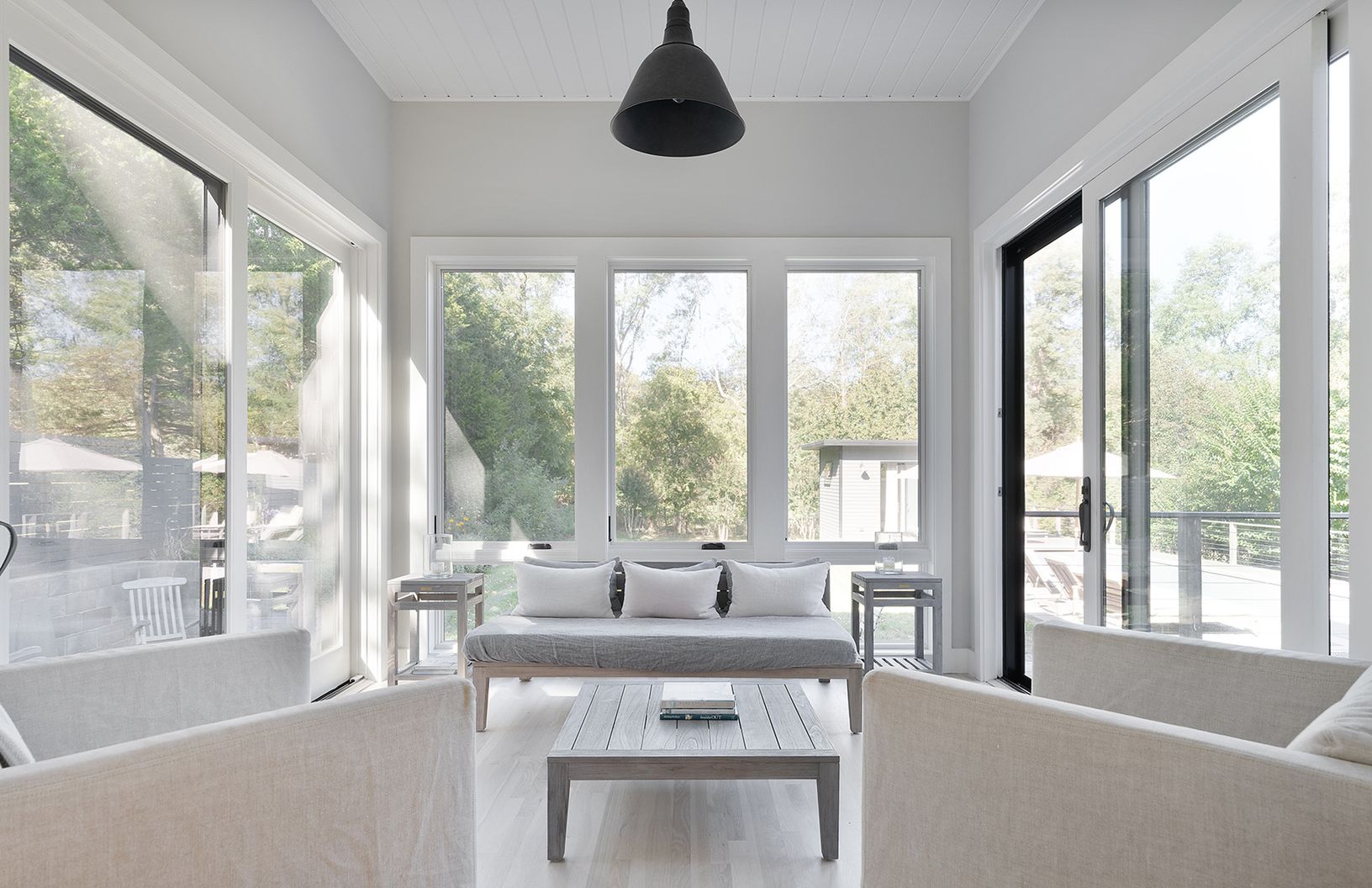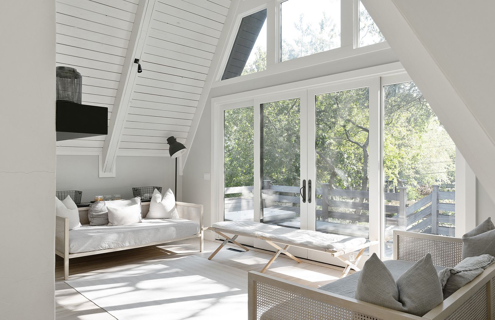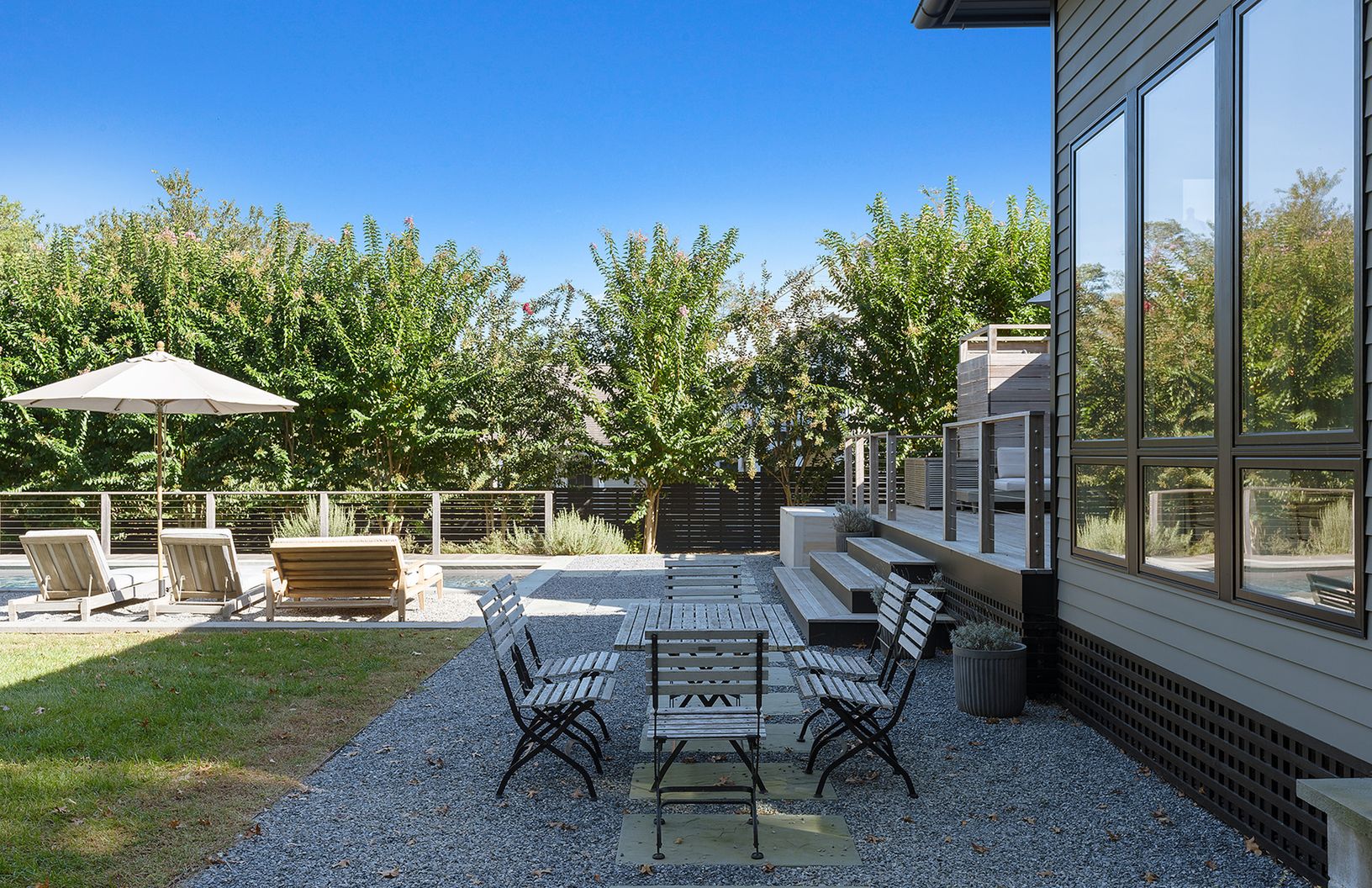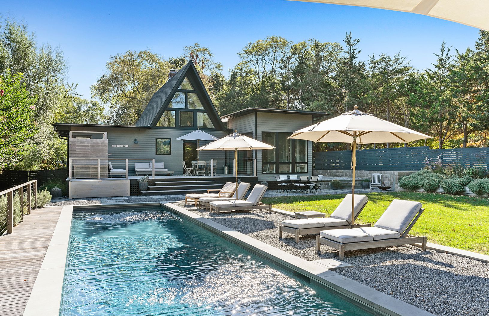 Welcome to 7 Marc Street, on beautiful Shelter Island. This one of a kind, completely renovated 'A- Frame' is a must see. Located on a quiet road and blending minimalistic, well-designed interiors, this 3 bed/2 bath home, purposefully maximizes the experience of indoor/outdoor living. Floor to Ceiling sliding doors allow a seamless flow between the house and the surrounding decks, patios & gardens; whilst the dappled light from surrounding