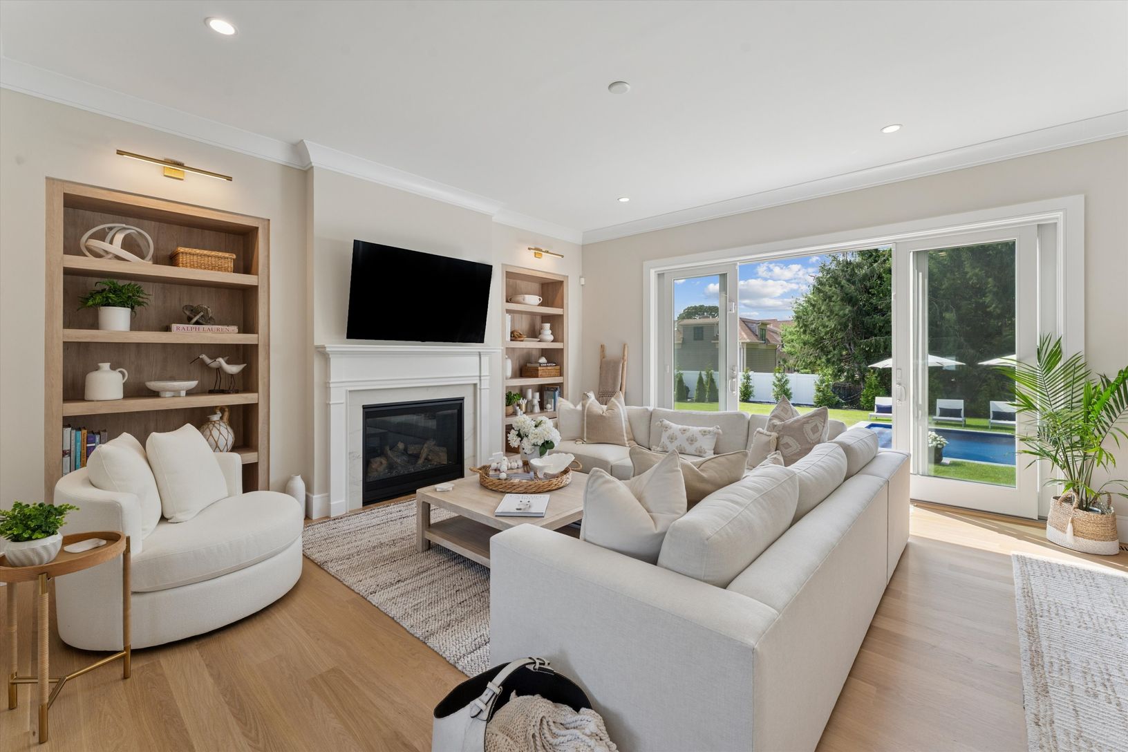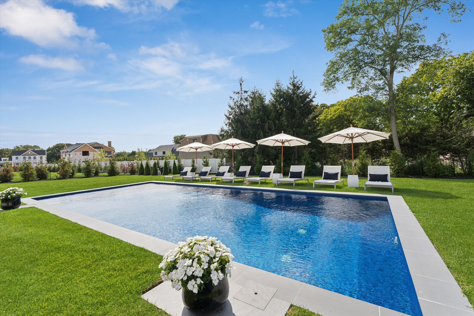 Welcome to 7 Margareta Court, a stunning new construction in the heart of Westhampton Beach. Designed with both luxury and comfort in mind, this 6 bedroom, 6.5 bath home offers an open floor plan with white oak hardwood floors, abundant natural light, and seamless indoor-outdoor living through sliding glass doors that open to a private backyard oasis. The gourmet eat-in kitchen is complete with a Wolf 6-burner range, Sub Zero refrigerator, Bos