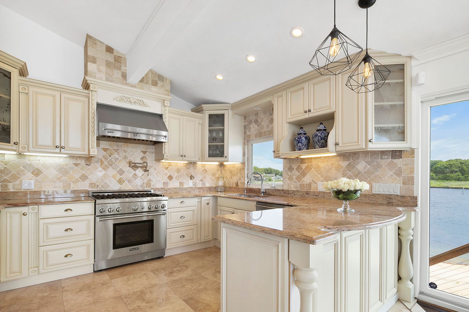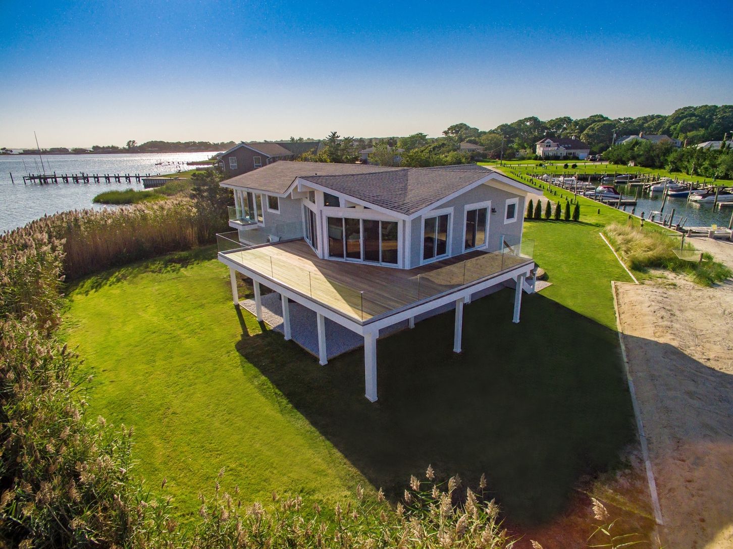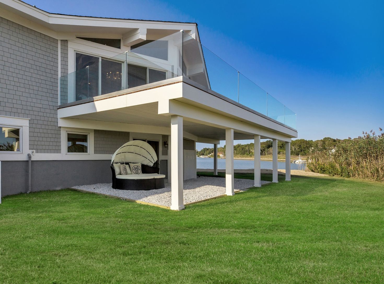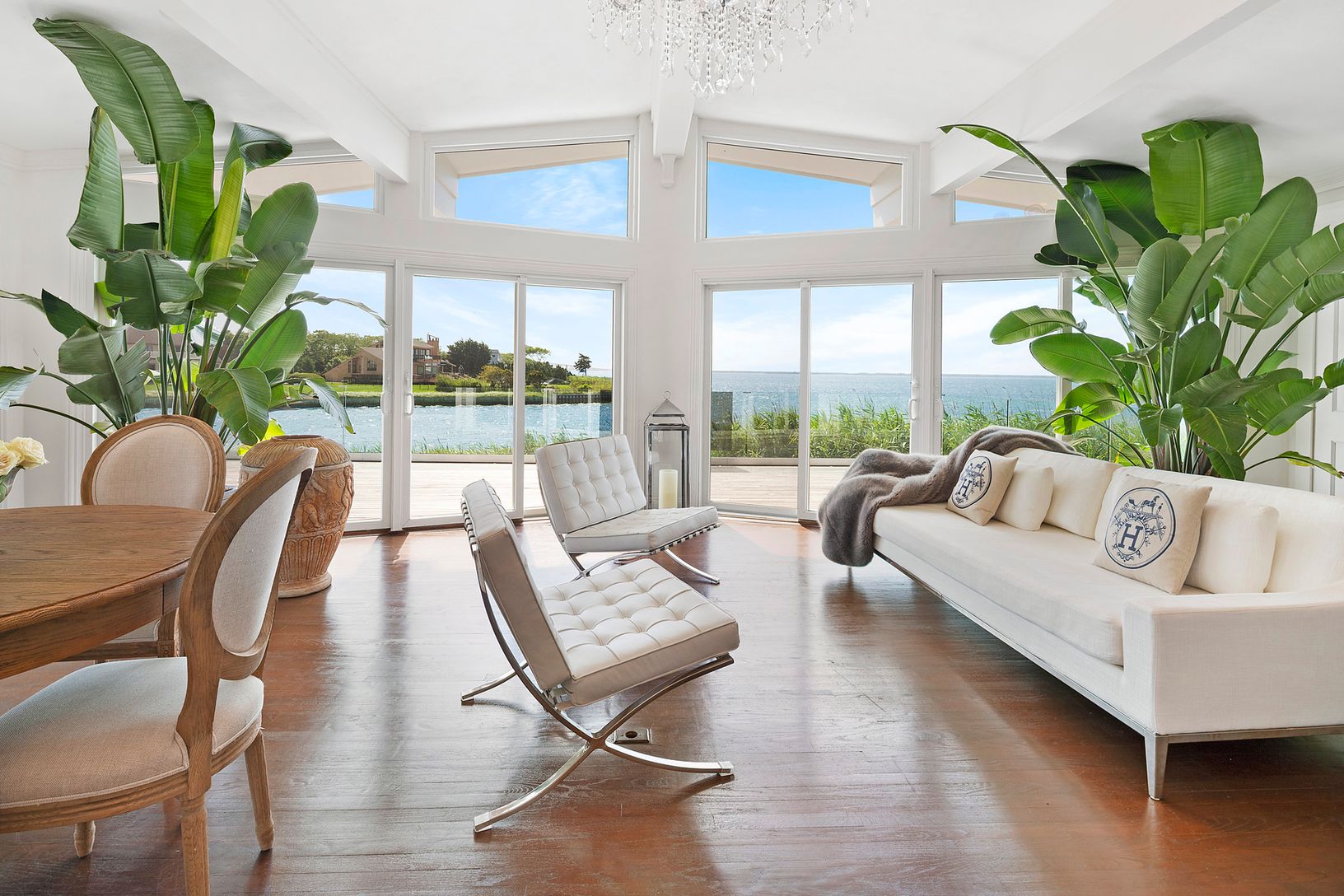 Italian super yacht designer Mara Capoferri for Fendi and Dolce & Gabbana puts her chic style into this unique, one of kind, Hamptons waterfront Beach House. With the elegance one might only see while aboard a super yacht, she masterfully transformed this average home into a stunning beach house with water views from every room. Designed to bring elements of the outdoors right into the living space by using the abundance of light that co
