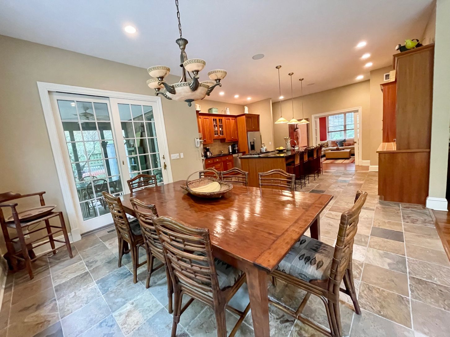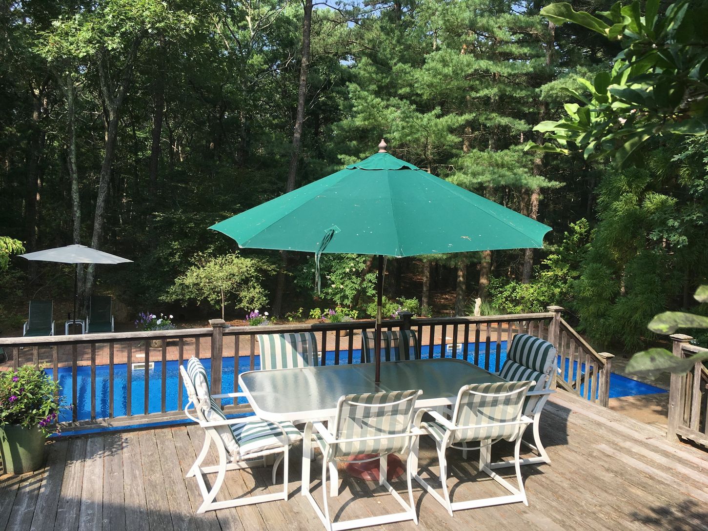 Rental Registration #: 24-245. *This lovely and private spacious home features beautifully furnished great room, state of the art eat-in kitchen, dining area, media room and a ensuite master on first floor. There is also laundry room, powder room and screened porch for summer dining. Second floor offers another ensuite master and 2 additional guest bedrooms with shared balcony and full bathroom. Office space and workout area on second flo