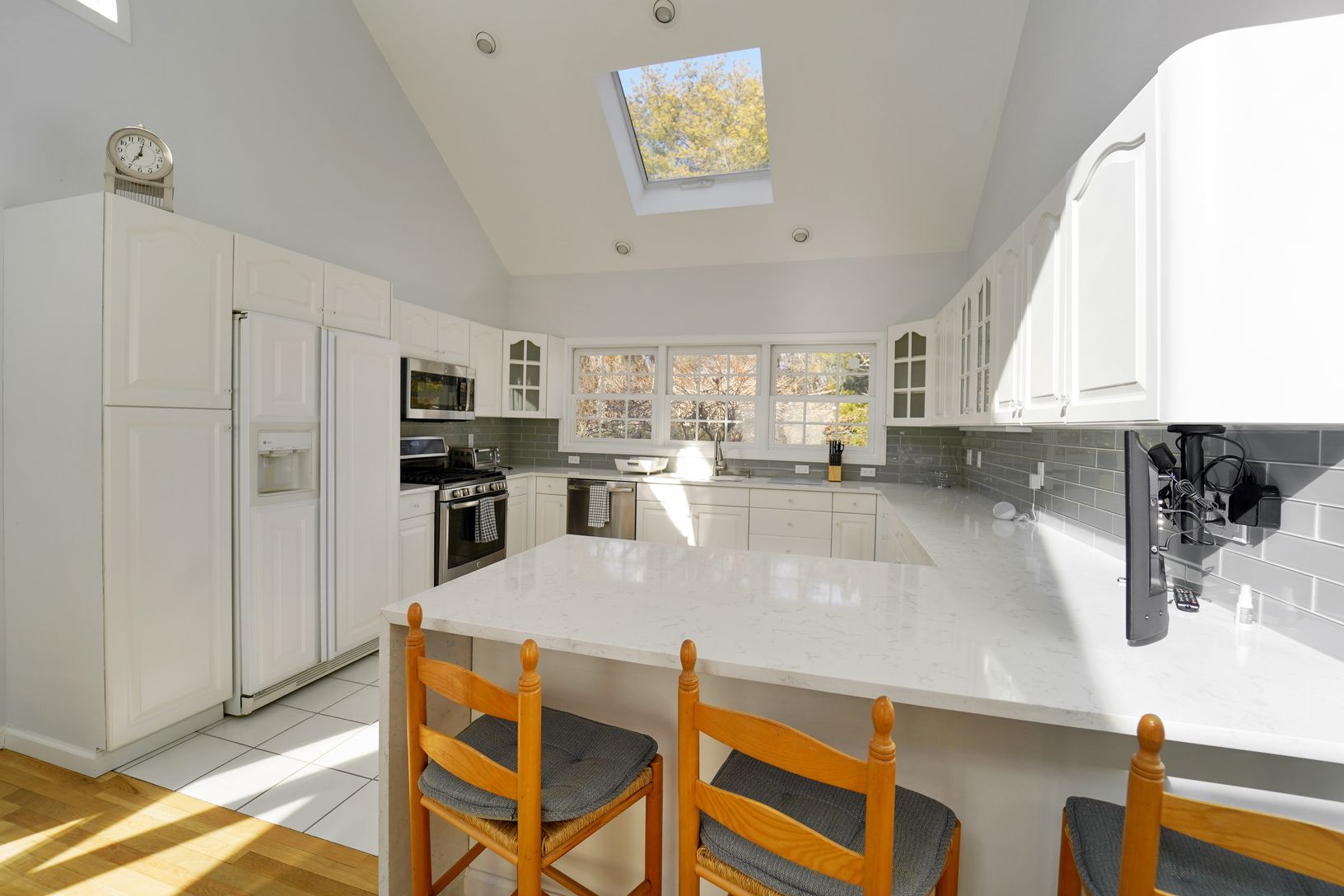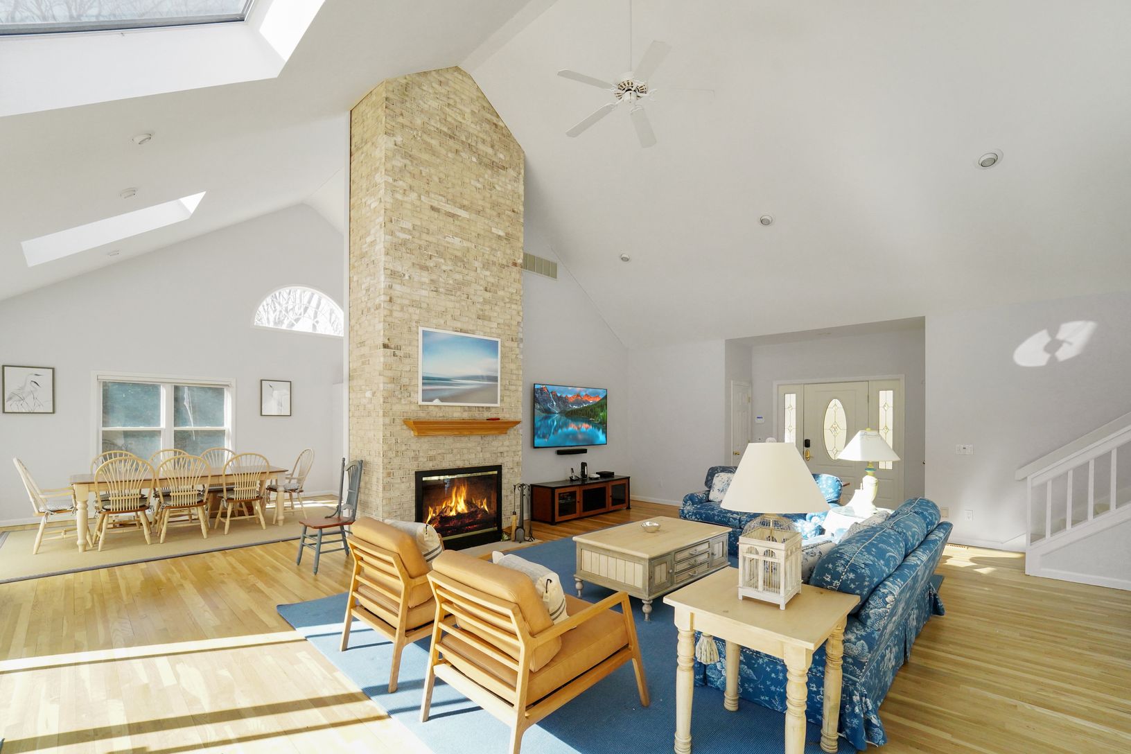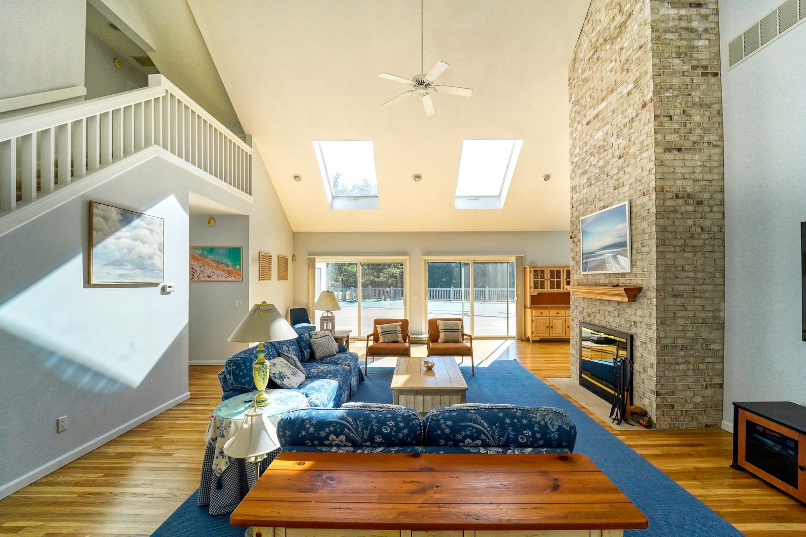 Welcome to 7 Plume Grass Way. This Immaculate Post-Modern home has everything you would need for your Summer Rental. Once you drive down the beautifully manicured driveway, you can walk right into this 5 Bedroom and 5 Bath Summer Oasis. Look straight through the Vaulted Ceiling Livingroom out to the large deck and Pool Area. Or walk through the open floorplan past the dining area and into the Matched appliance kitchen with marble countertops.
