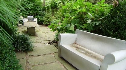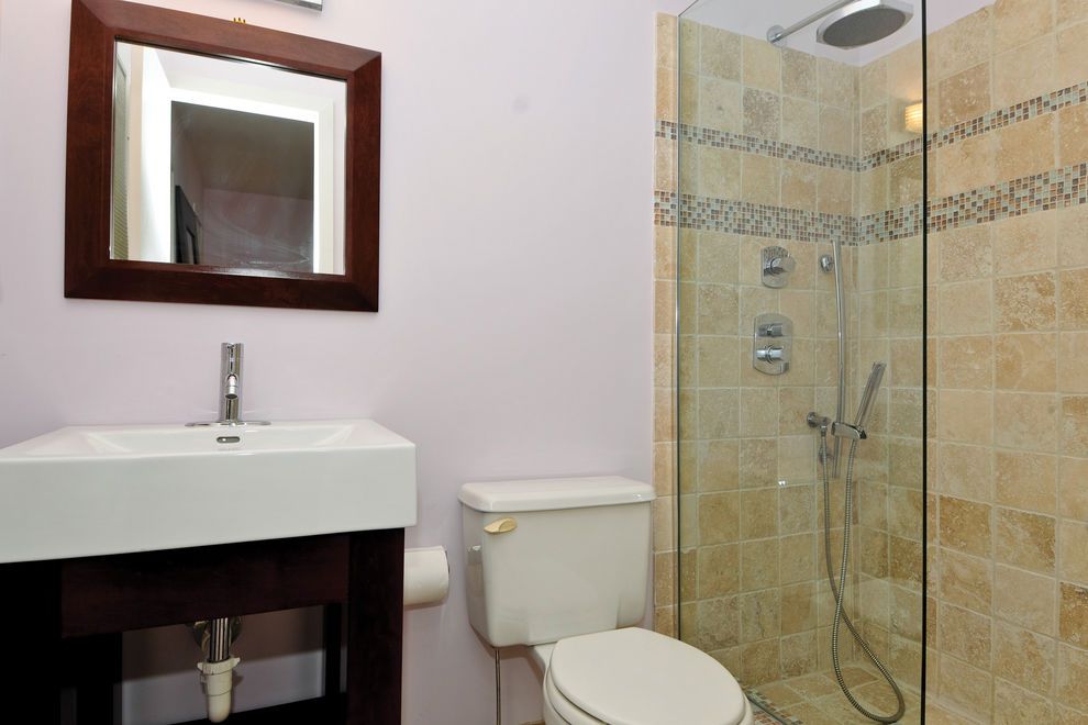 Modern one story secluded living art-gallery. A gallery owner's own enjoys an open living room with fireplace, the eat-in kitchen was remodeled in 2009, there are three bedroom suites each with a walk-in closet and a 2010 renovated full bath plus there is also a modern powder room. The great room leads onto a large new deck and pool with its recently installed glass railing as to not obstruct the surrounding beautifully landscaped private open