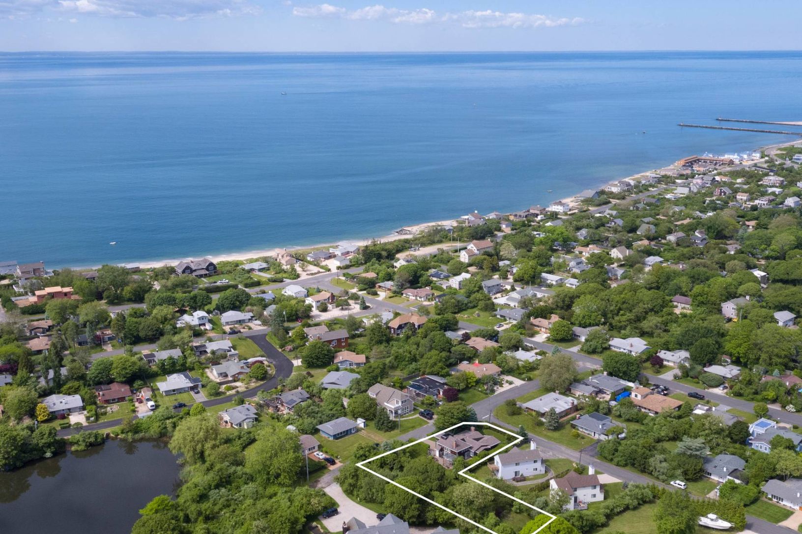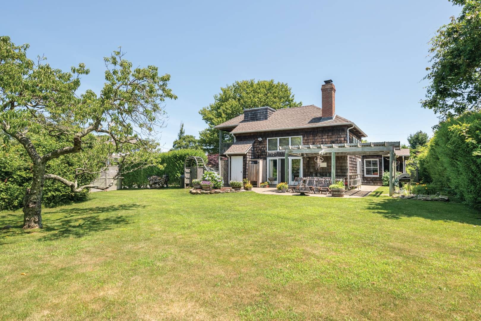 Why rent when you can buy the perfect Montauk beach home? Tucked away in the highly sought-after Culloden Shores community, this chic sun-drenched four-bedroom home is located a block from a private bay beach and boasts an over-sized property with an expansive rolling lawn and mature native vegetation. The quiet cul-de-sac location gives the home a warm, neighborhood feel. Originally built in the 1960s on four combined lots, the home was taste