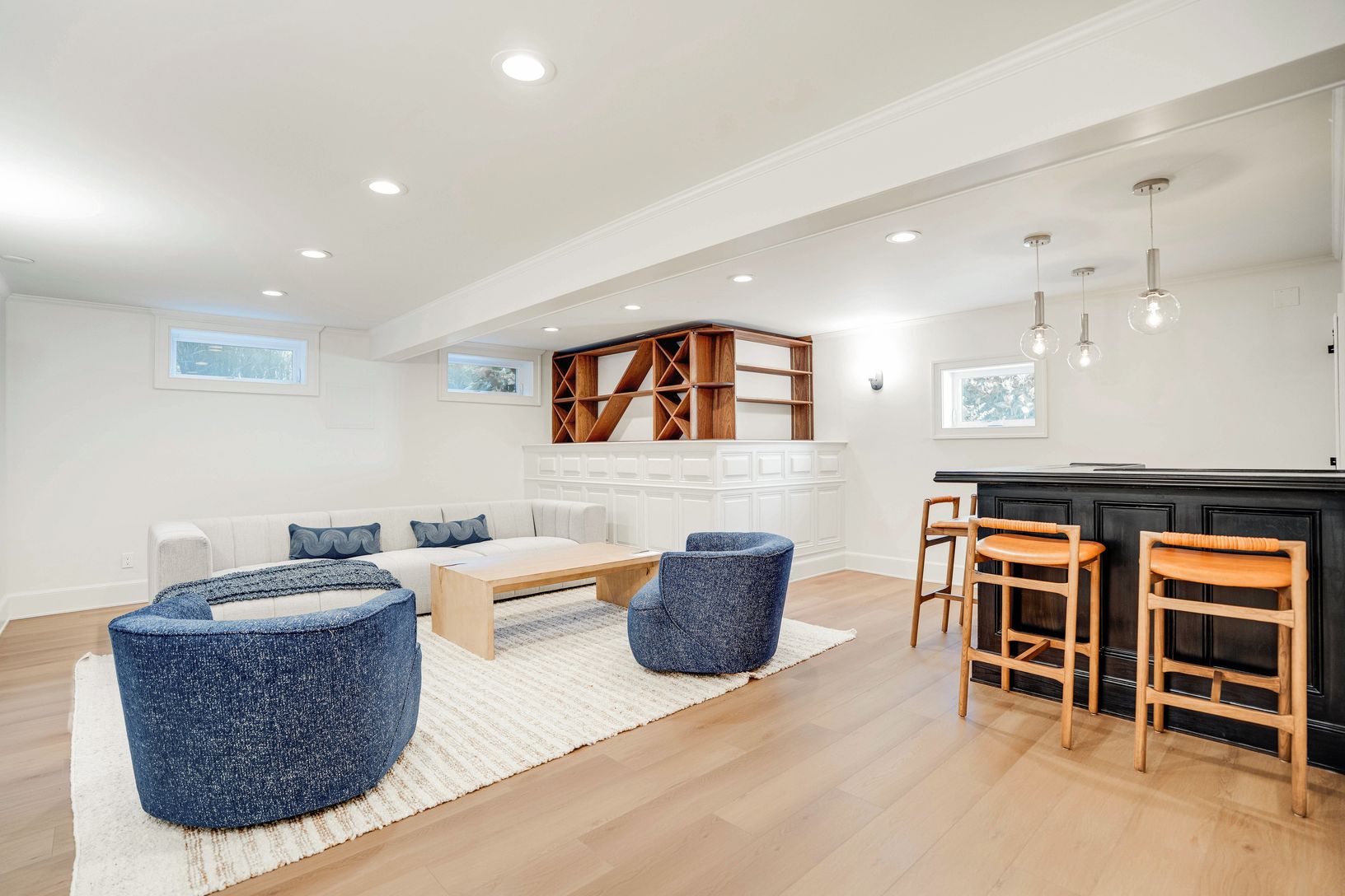 This stunning, fully renovated home offers the perfect blend of luxury and comfort in a private waterfront community with exclusive bay beach access. 3750 +/- square feet across three levels, this four bedroom, four full and two half bathrooms home has been recently renovated by Kristen Farrell & Co. The living & dining room feature soaring double-height ceilings and a cozy fireplace, while the kitchen is outfitted with a gas-burning s