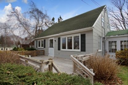 This lovely Cape-style home, with large front deck, is centrally located and situated on 0.66 acres. The house has been freshly painted and is ready for your arrival. This home offers a spacious living room with wood floors, eat-in kitchen with an island, sunroom/den facing south conveniently adjacent to the kitchen, a full hall bath, first floor master bedroom with handicap accessible bath. The second floor has 2 bedrooms and a half-bath. Th