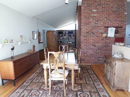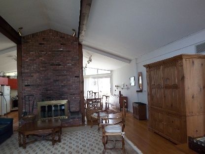 This home has been lovingly maintained for many years by the same family. There are three bedrooms plus an artists studio with a separate entrance which could easily convert to a spacious master bedroom with ample room for an additional bathroom. A soaring fireplace dominates the living room and the old brick facing borders the dining area and kitchen. The views open to the handsome grounds and Three Mile Harbor where you can launch your boat