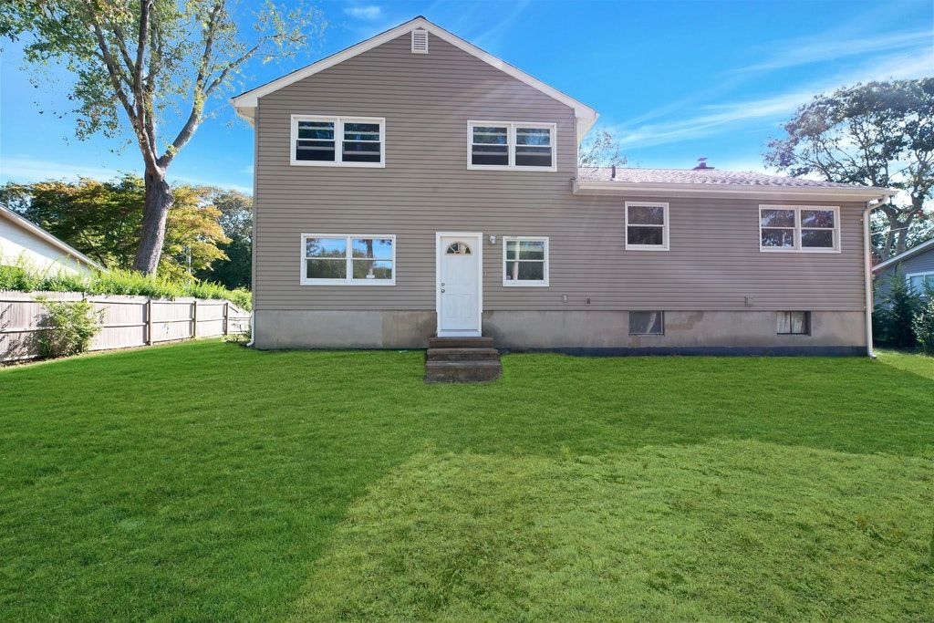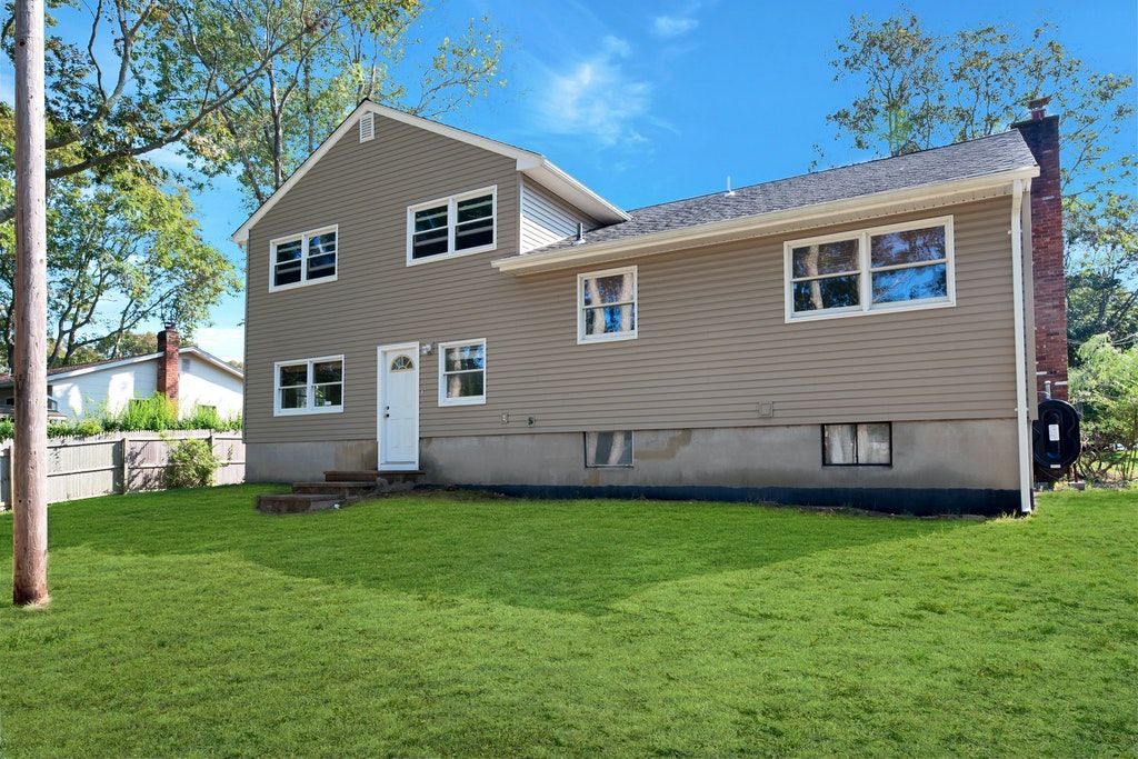 Spacious Split Level home featuring 4 bedrooms, 2.5 baths (1 bath in master), an expandable walk in attic for future living space, brick fireplace, laundry on the main floor, Guest suite on lower level with private entrance, 2 car garage, full basement with new oil tank and hot water heater, new roof, siding and shutters. Tiana Bay beach access nearby.
