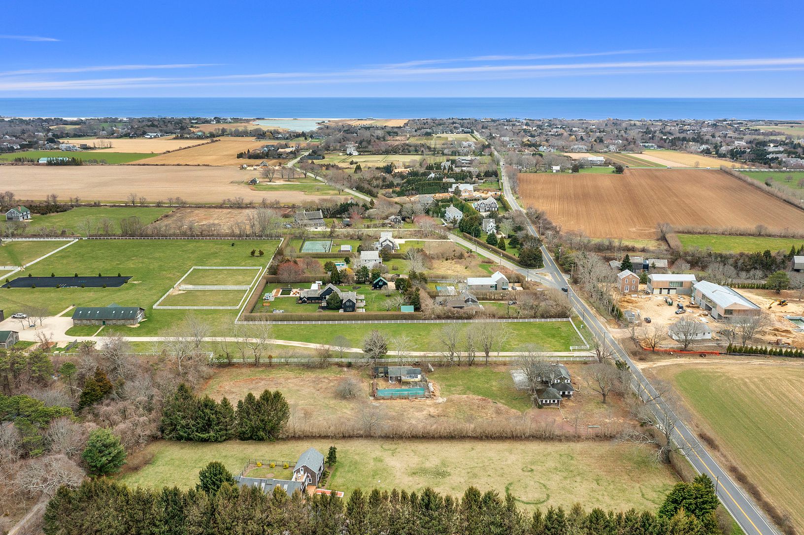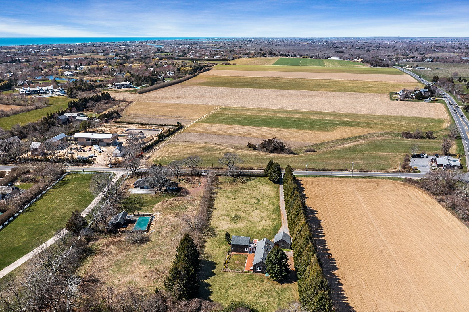 Prime South of the Highway location on just under two acres south of the highway in Wainscott. The property provides western farm field views and privacy. The property has Board of Health approval for an 8 bedroom, 10,000 sq. ft. house, pool and tennis court. A unique opportunity on the border of Wainscott and Sagaponack only 1 mile from Town Line Beach. The existing house offers three bedrooms, two and a half baths, an open living room, and c