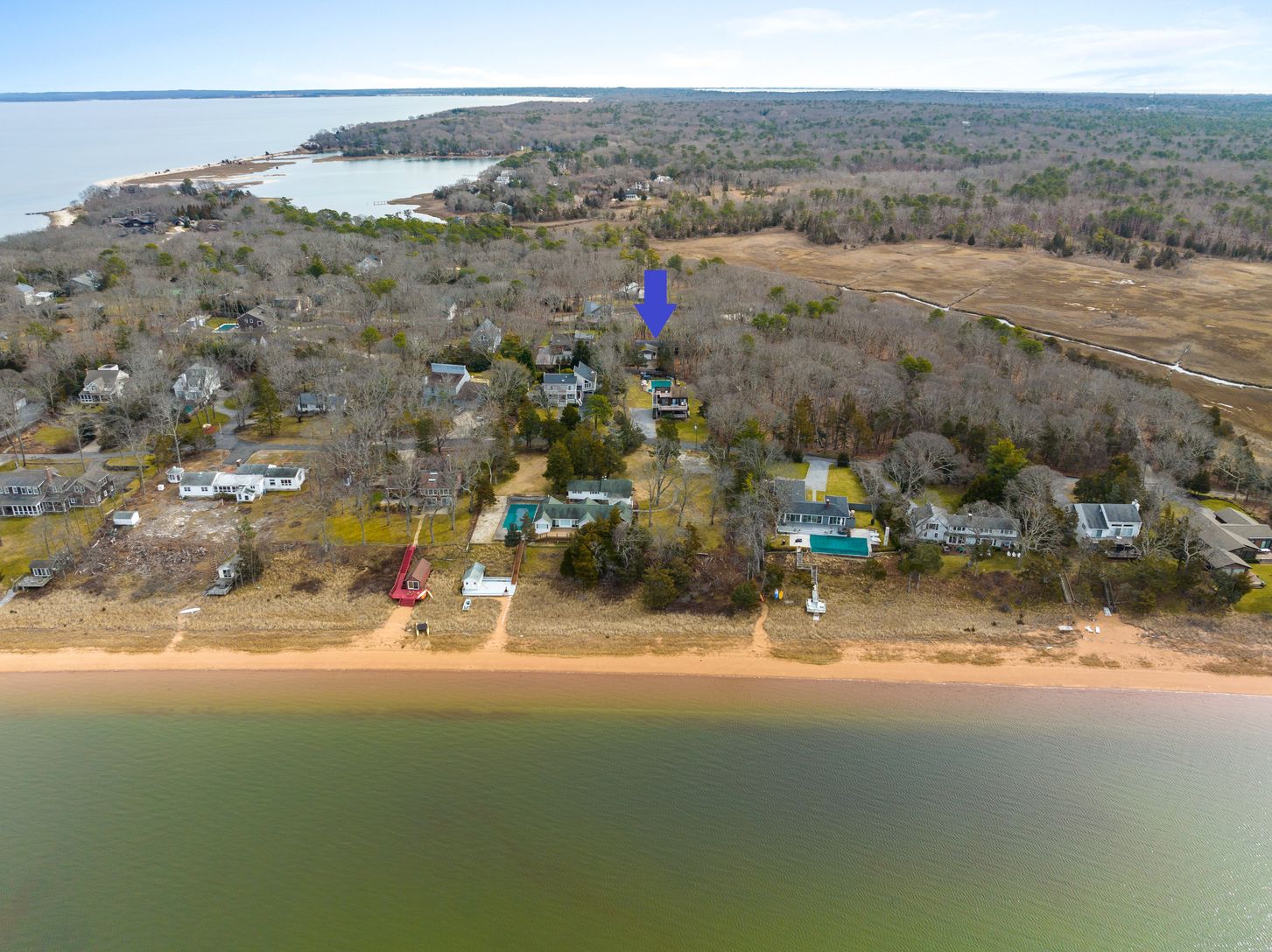 Welcome to 7 Whippoorwill Lane, this lovely two bed 1.5 bath ranch style home located in Red Cedar Point Location. Close to Peconic Bay Private beach, water view from front bedroom, the main living area features an open living room with vaulted ceilings, skylight, wood fireplace, Den/ family room, hardwood floors, spacious kitchen, primary bedroom with Walkin closet, guest bedroom, possibility of a third bedroom with permits. Updated Anderson