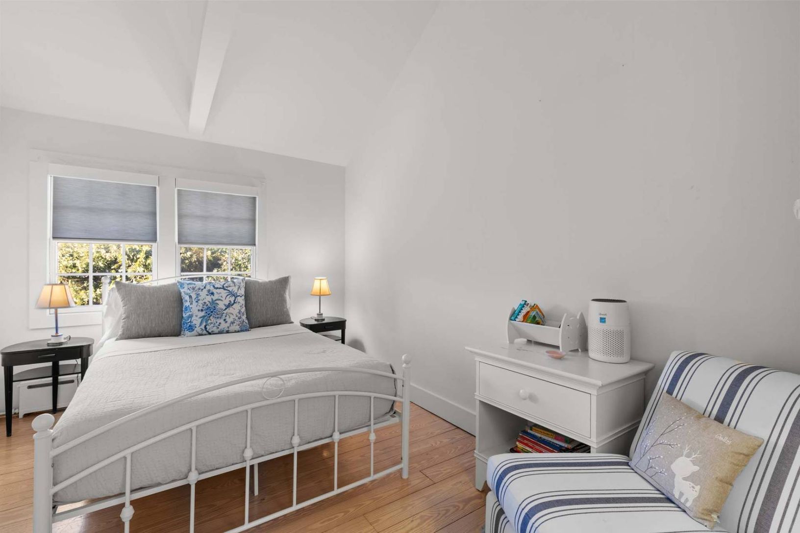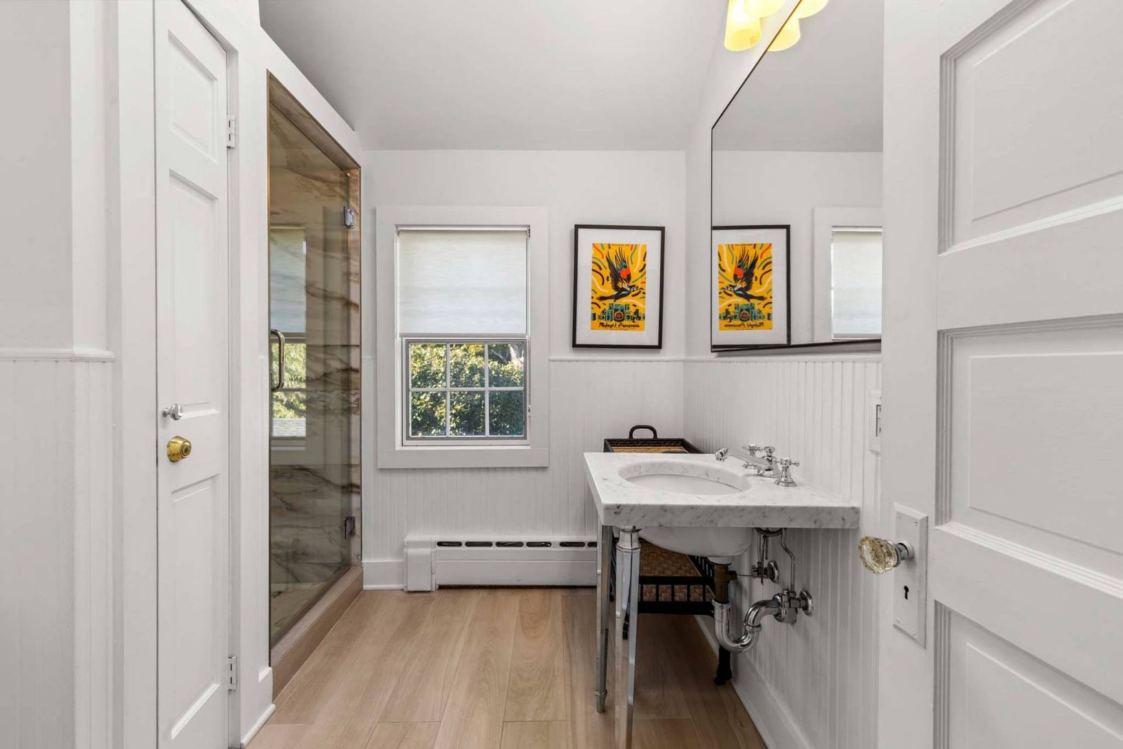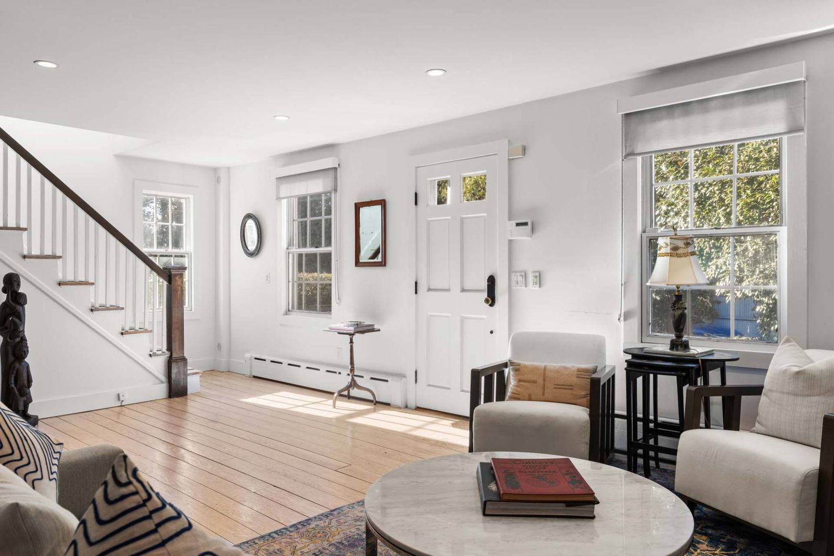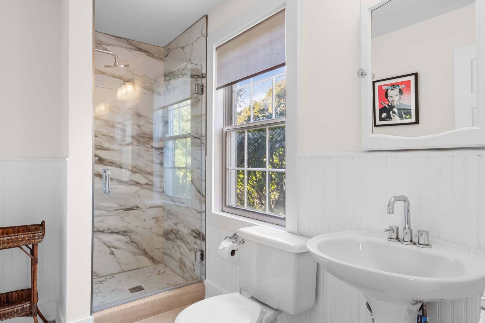 Enjoy summer in East Hampton in this light, bright home built in 1902 and fully renovated for 21st century living, with wood floors and white walls and ceilings. The four bedroom, four bath home is situated on a quiet street just a few blocks to the restaurants, shops and galleries of the Village, and minutes to ocean beaches. First floor interiors flow among the living room with fireplace, dining room and spotless kitchen with granite counter