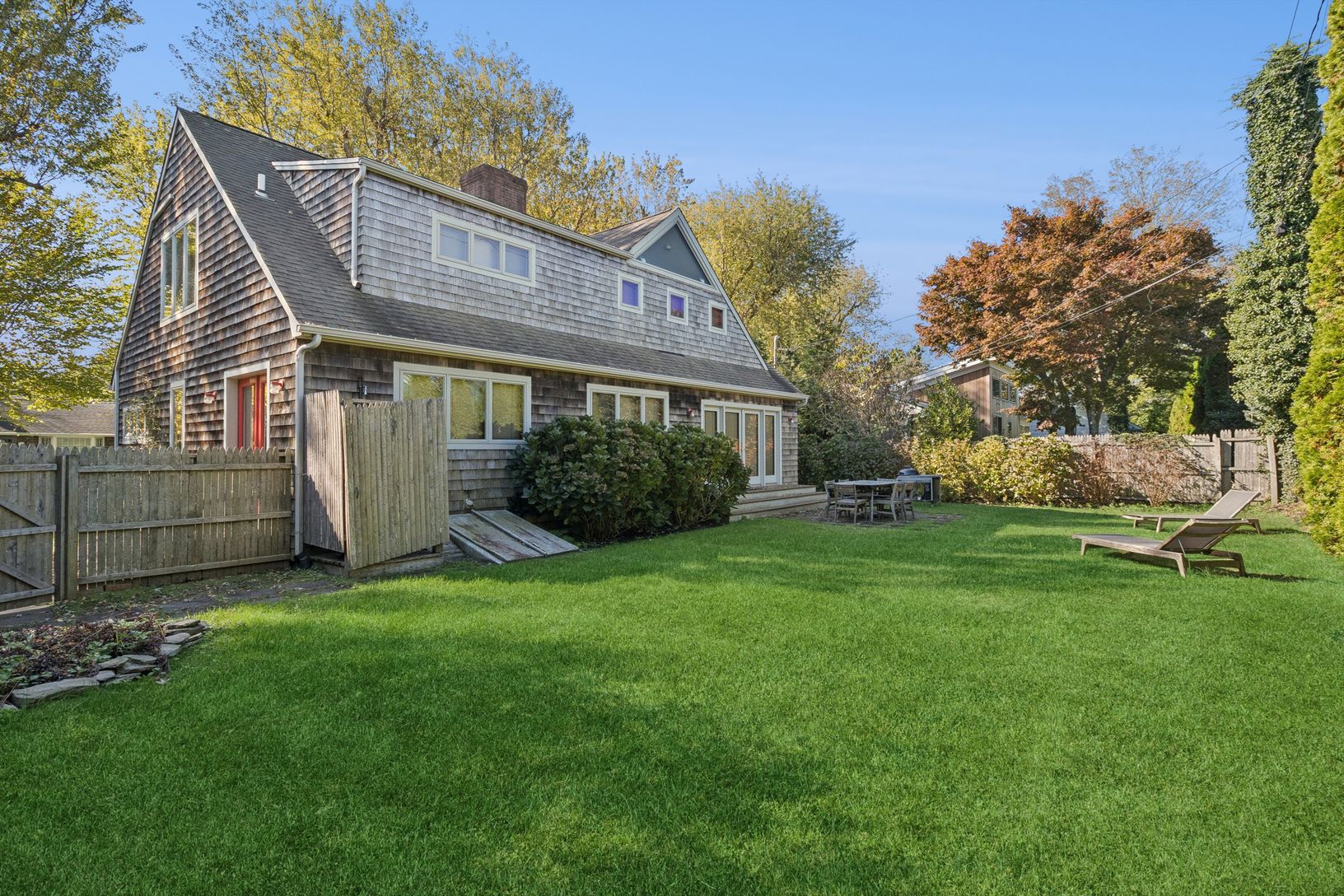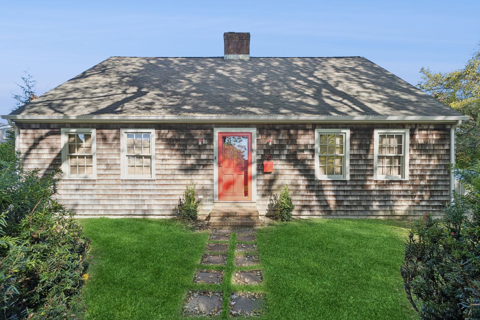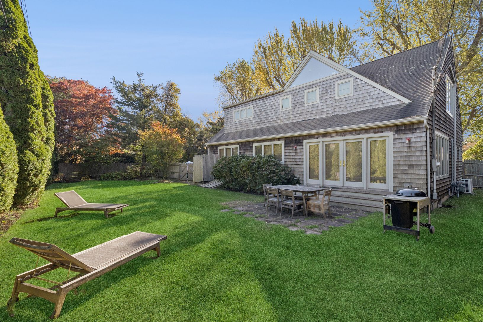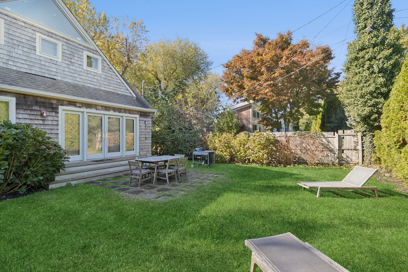 This beautifully crafted custom Cape is wrapped in lush, mature gardens and perfectly positioned just moments from everything in East Hampton Village. Inside, three comfortable bedrooms and two full baths anchor a bright, open layout that seamlessly connects the living room, dining area, and kitchen-complete with spacious workspace. A mudroom, wall-to-wall brick fireplace, French doors, gas heat, and a full basement add practicality and char