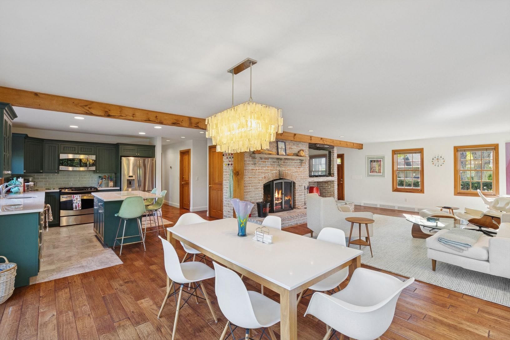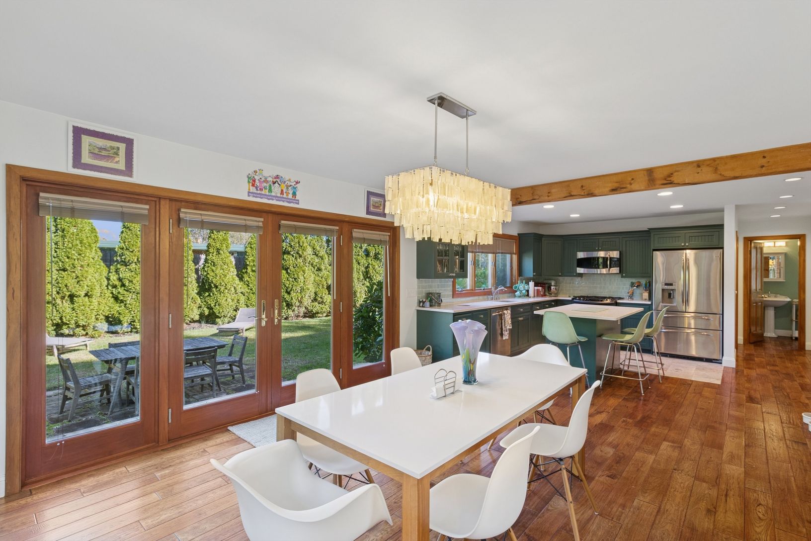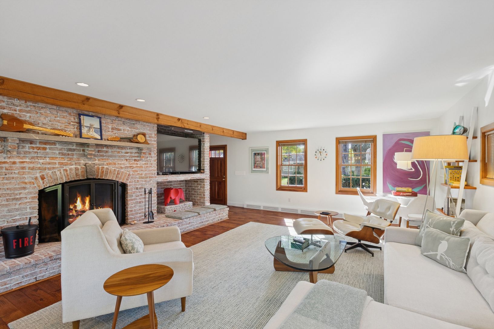 This beautifully crafted custom Cape is wrapped in lush, mature gardens and perfectly positioned just moments from everything in East Hampton Village. Inside, three comfortable bedrooms and two full baths anchor a bright, open layout that seamlessly connects the living room, dining area, and kitchen-complete with spacious workspace. A mudroom, wall-to-wall brick fireplace, French doors, gas heat, and a full basement add practicality and char