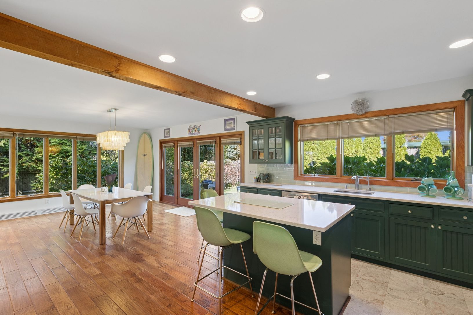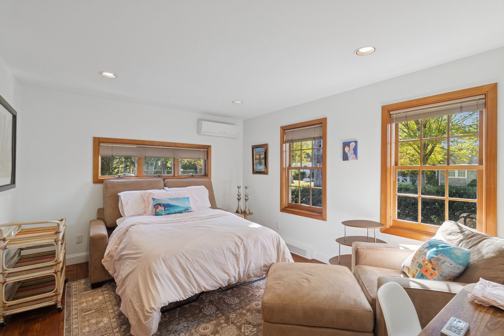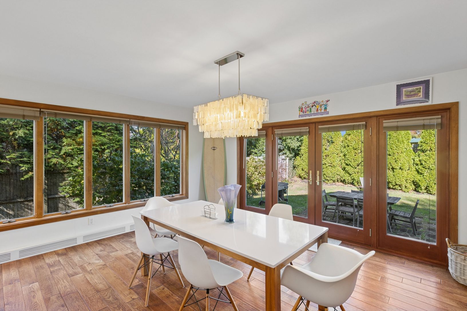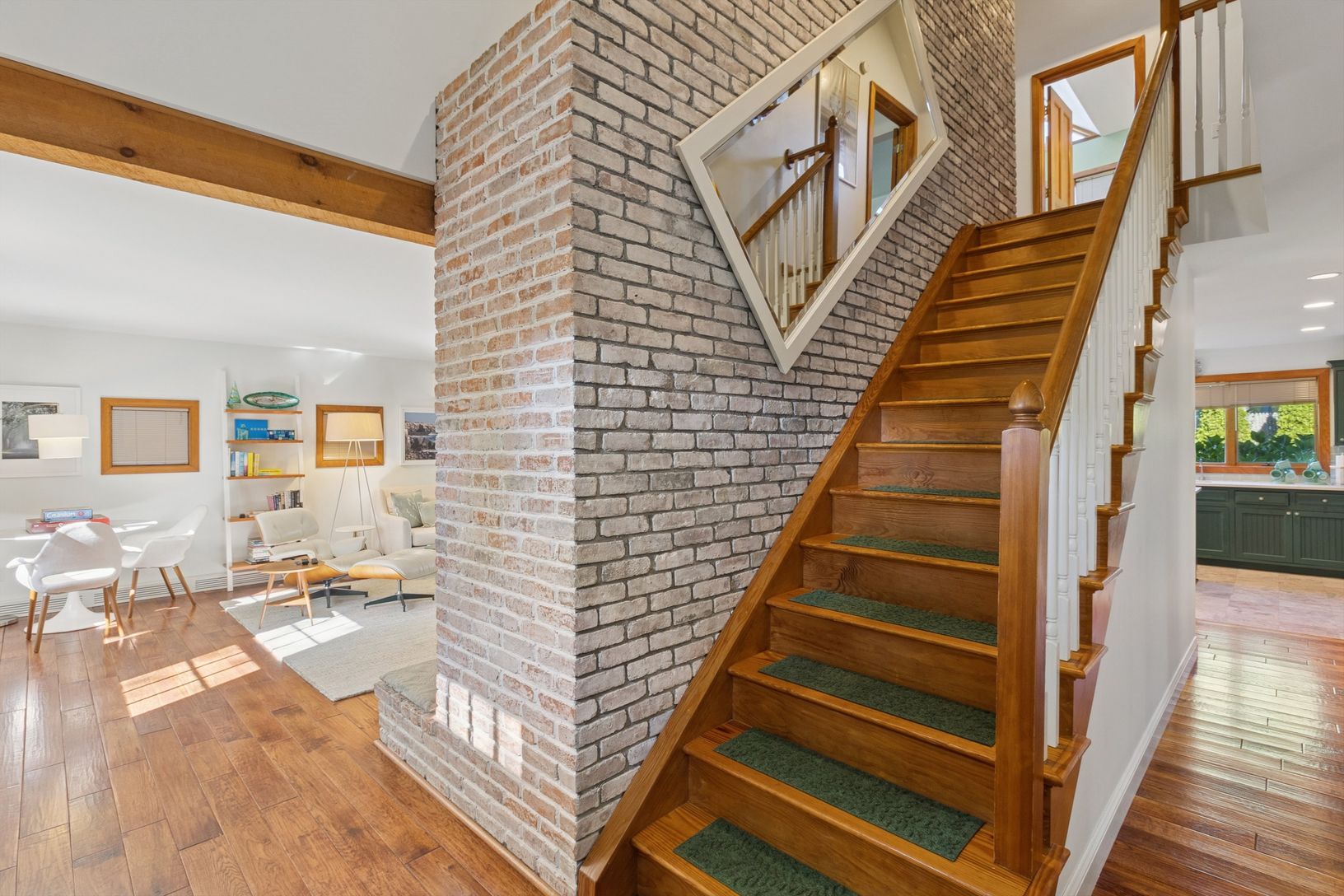 This beautifully crafted custom Cape is wrapped in lush, mature gardens and perfectly positioned just moments from everything in East Hampton Village. Inside, three comfortable bedrooms and two full baths anchor a bright, open layout that seamlessly connects the living room, dining area, and kitchen-complete with spacious workspace. A mudroom, wall-to-wall brick fireplace, French doors, gas heat, and a full basement add practicality and char