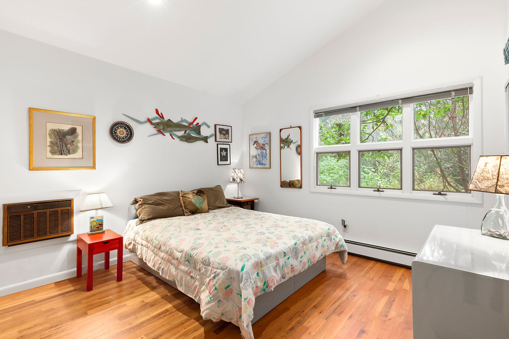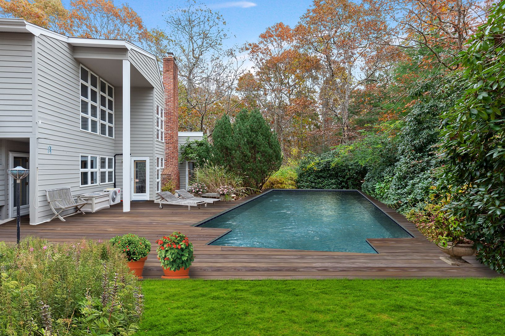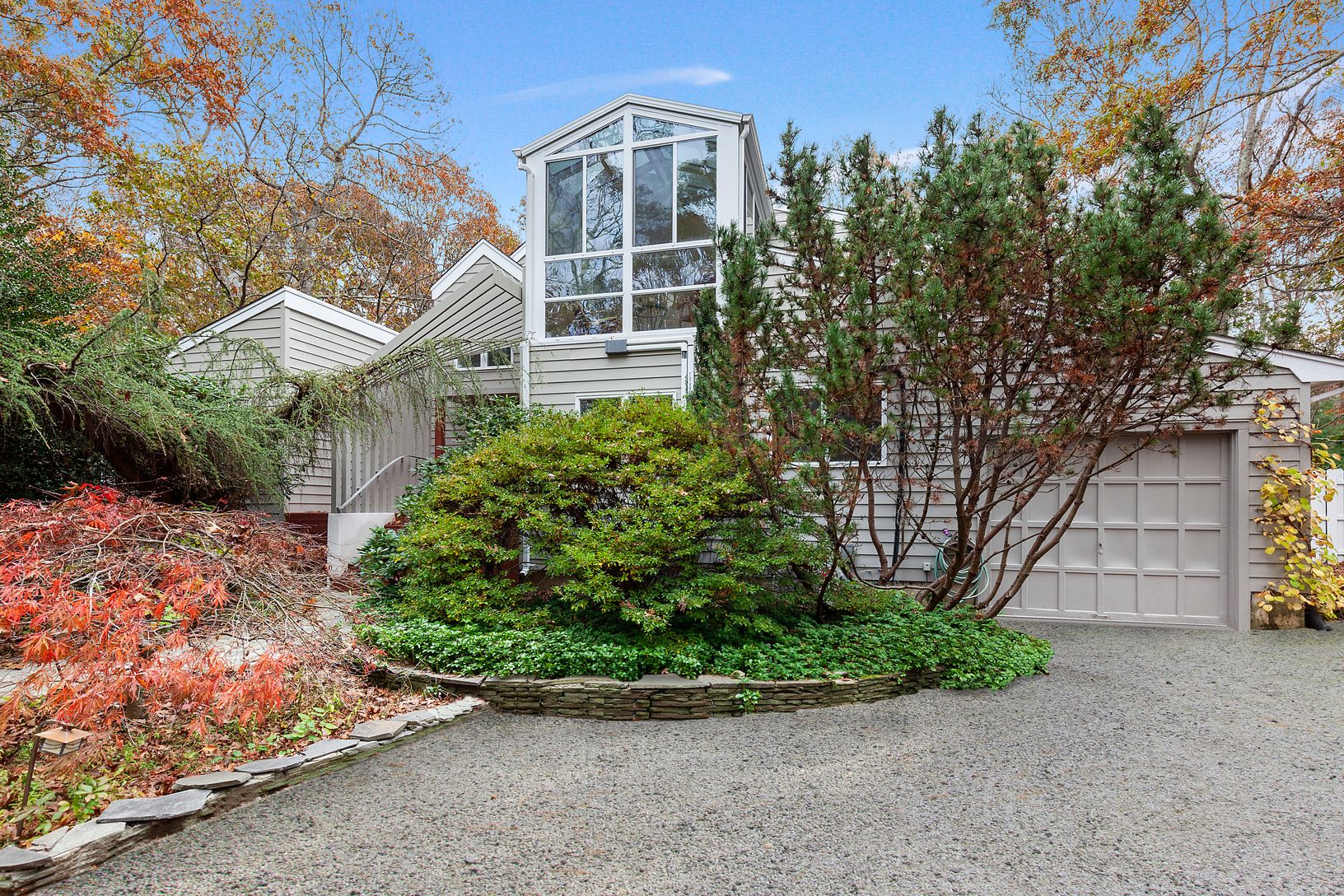 This 3 bedroom, 2 bath home is just minutes to East Hampton Village, set on .87 acre lot. The first floor has a double height ceiling living room with fireplace, kitchen and dining area, and two spacious bedrooms. The second floor has a large loft area/3rd bedroom with full bathroom and a sun-filled glass enclosure. There is also a one car garage and a very private professionally-landscaped backyard.