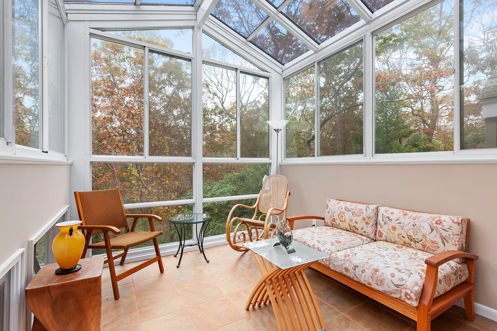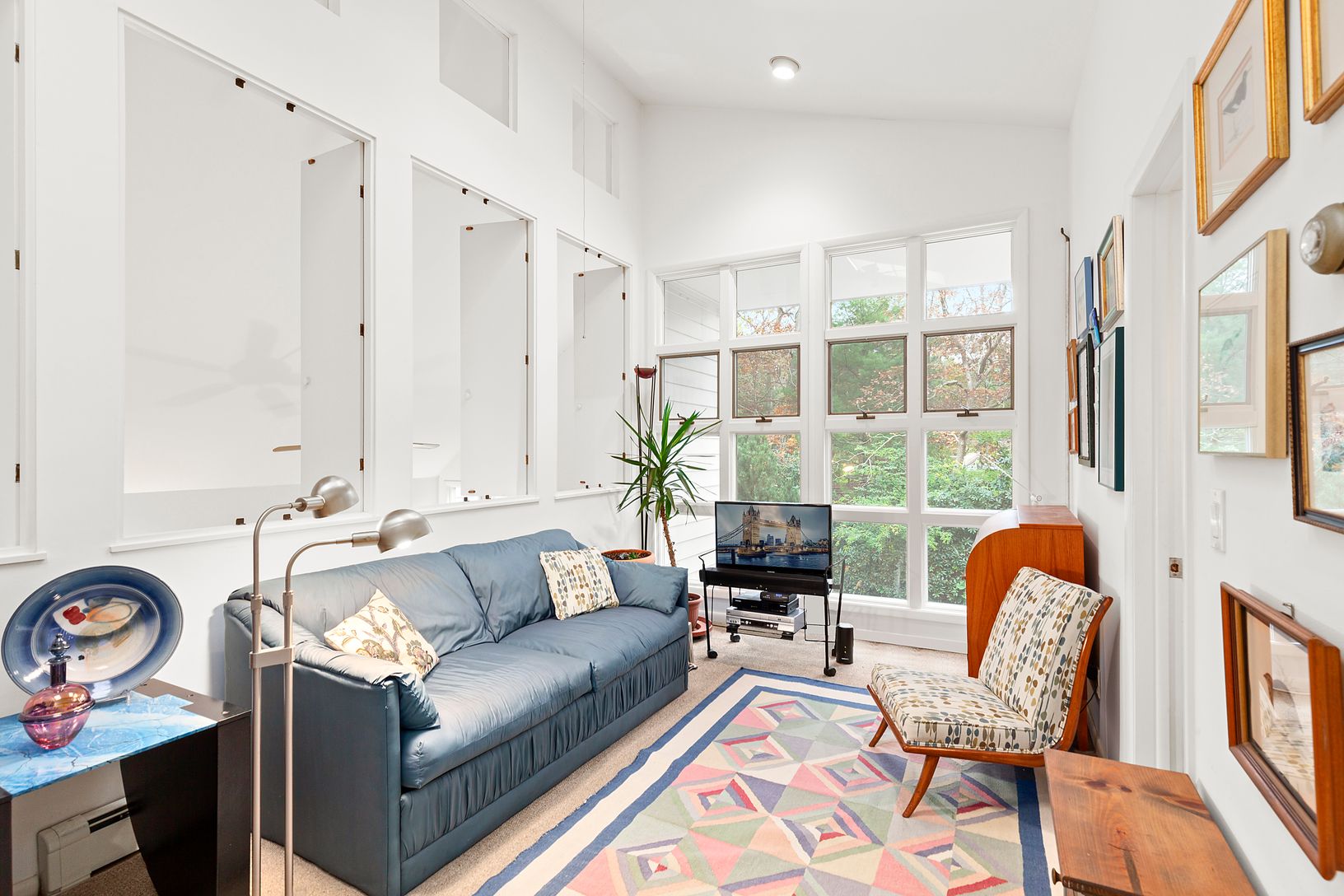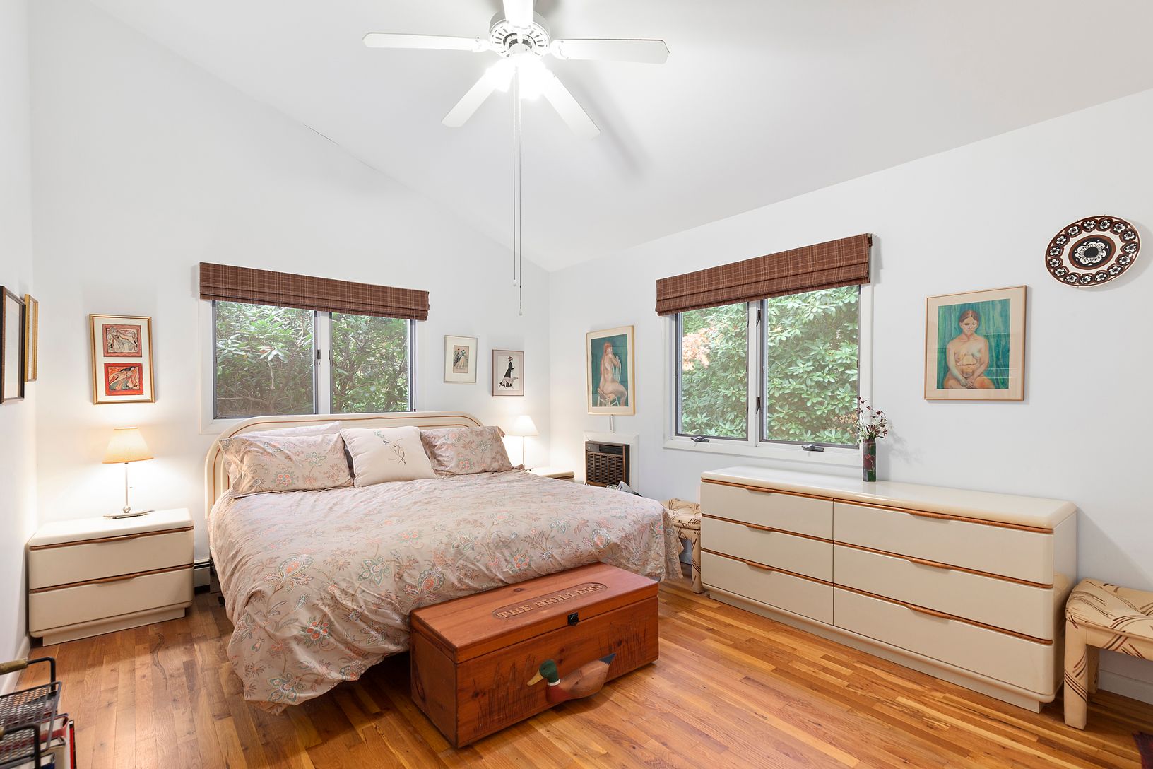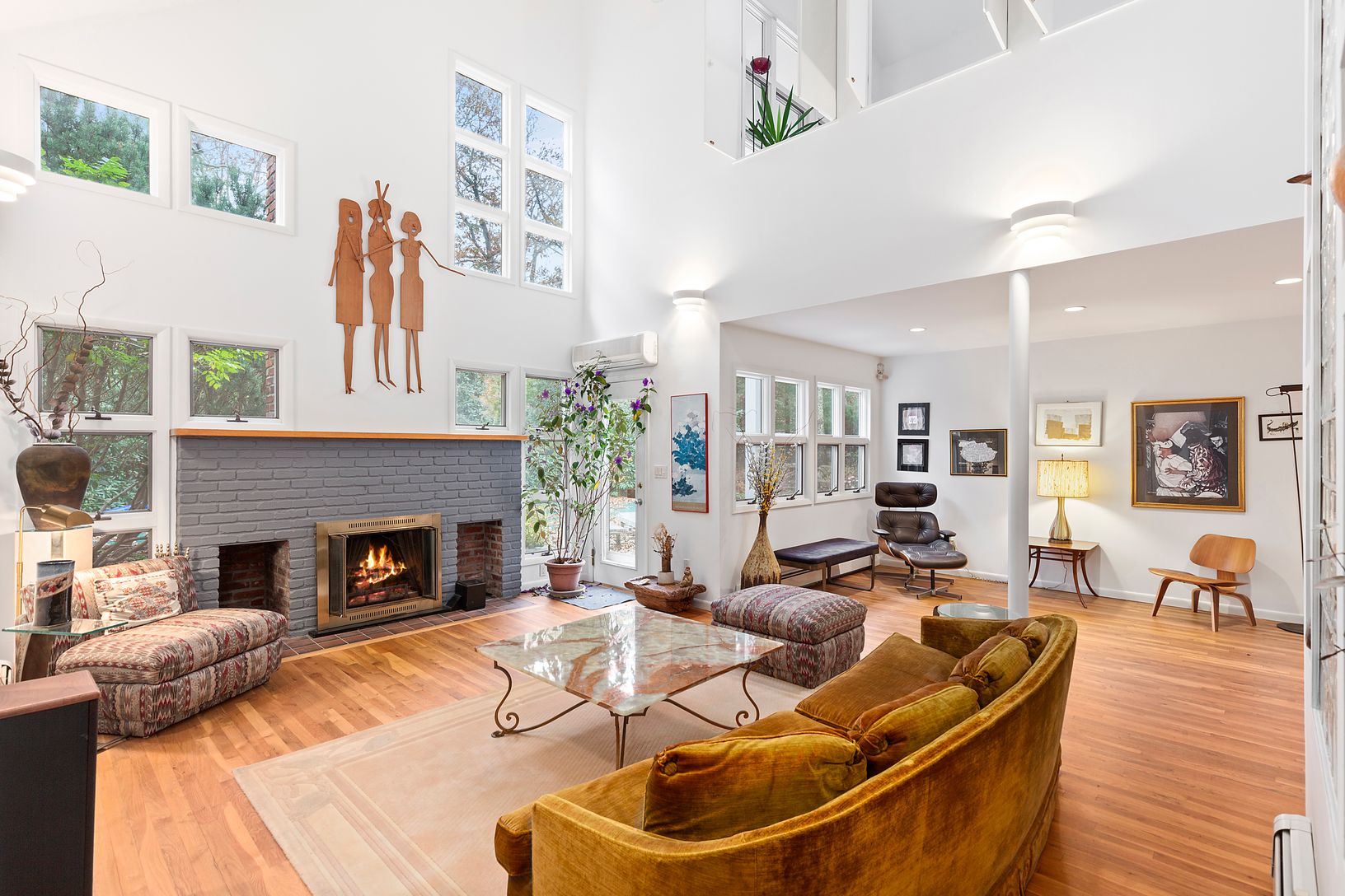 This 3 bedroom, 2 bath home is just minutes to East Hampton Village, set on .87 acre lot. The first floor has a double height ceiling living room with fireplace, kitchen and dining area, and two spacious bedrooms. The second floor has a large loft area/3rd bedroom with full bathroom and a sun-filled glass enclosure. There is also a one car garage and a very private professionally-landscaped backyard.