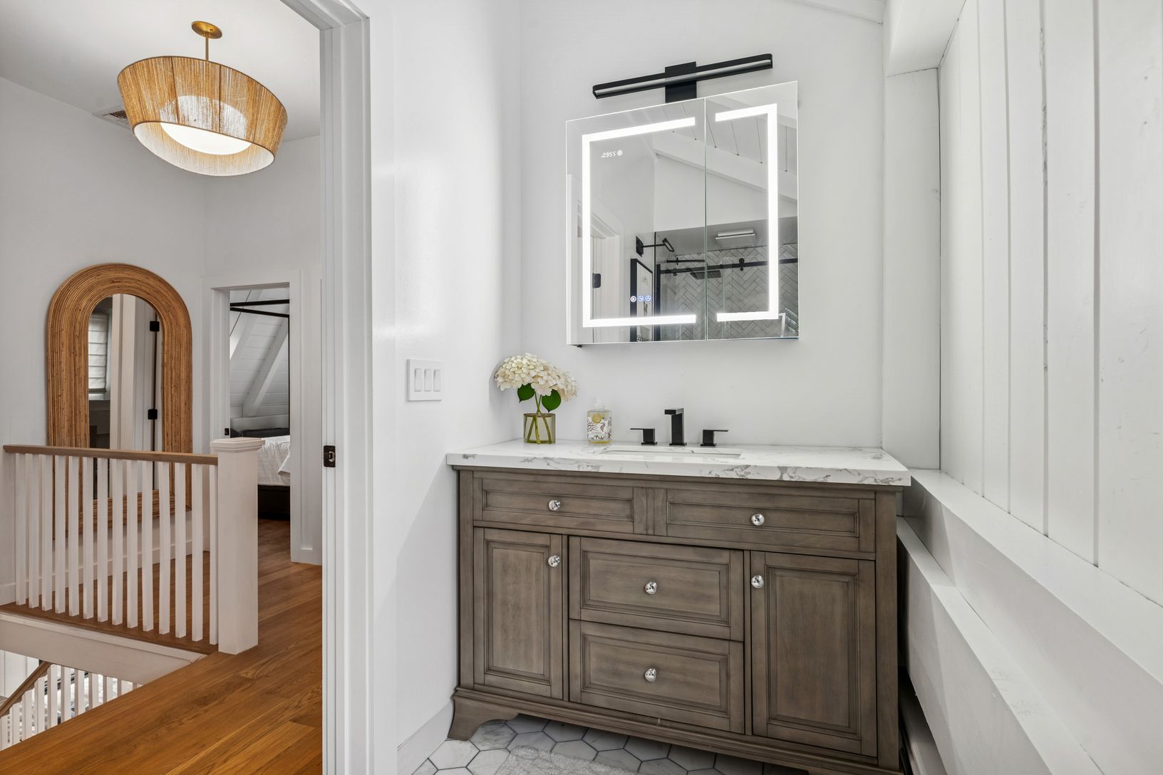 Set on a serene and private one-acre parcel, this fully redone and reimagined Southampton residence captures the essence of Hamptons living: timeless, relaxed, and effortlessly elegant. Thoughtfully updated with high-quality finishes throughout, the home offers over 2,300 square feet of bright, welcoming interiors designed for both everyday comfort and summer entertaining. The layout features three bedrooms and three-and-a-half baths, generous