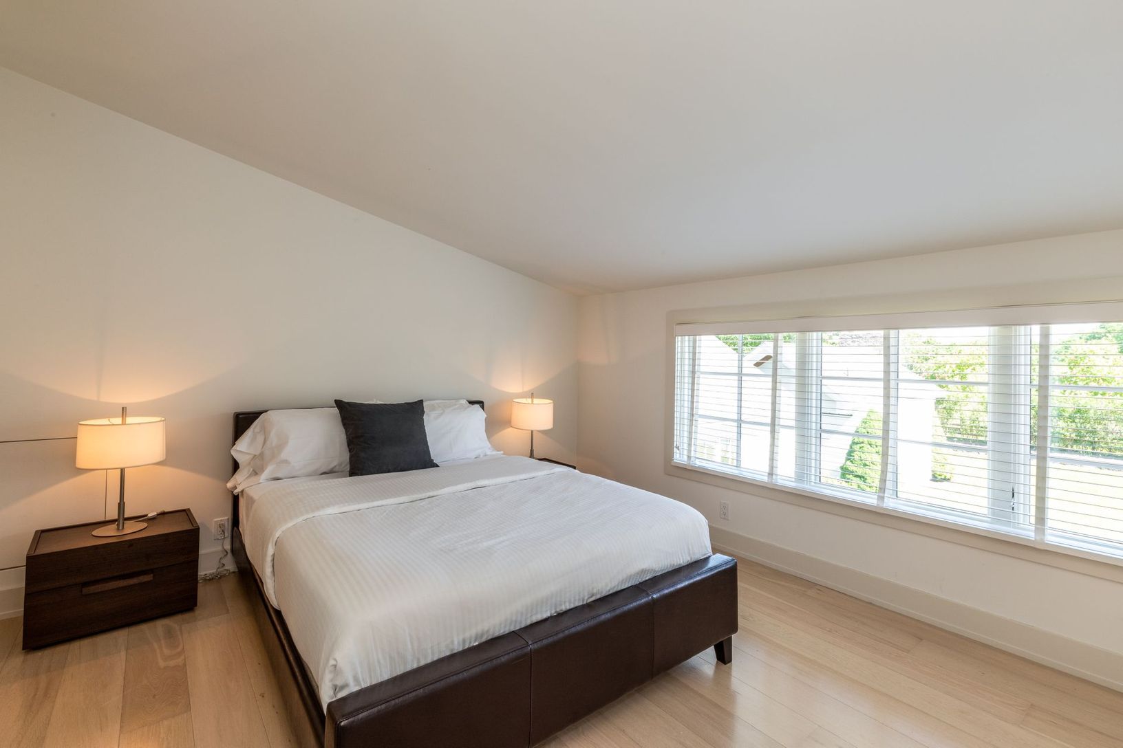 This architectural turn-key beauty located South of the highway, on a quiet lane, less than .25 mile from Main St. in Bridgehampton. Bright and open with a gorgeous modern interior this home offers 4 bedrooms,4.5 baths, living room with wood burning fireplace, formal dining room and a very large Chefs kitchen with marble counter tops and Viking appliances. The master bedroom and two guest rooms are located on opposite sides of the first floor.