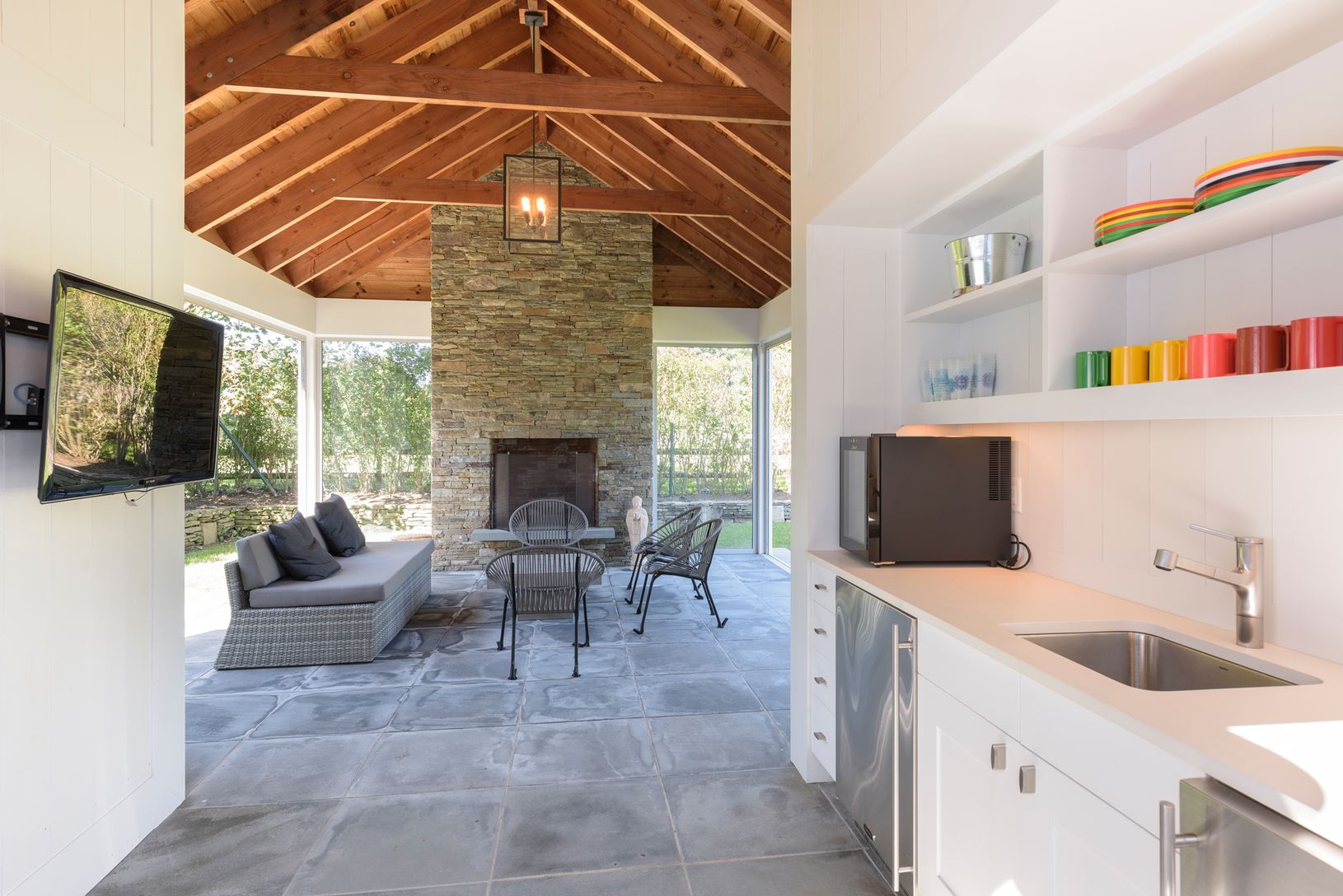 Fantastic new architect designed village dazzler! South of the Highway, perfectly located in the heart of Bridgehampton Village. Moments away from Main Street and pristine ocean beaches, this stunning modern home offers four bedrooms, three and one-half baths all overlooking farm field vistas. Living room with wood-burning fireplace, formal dining room and large gourmet kitchen with marble countertops and high end appliances. The backyard offe