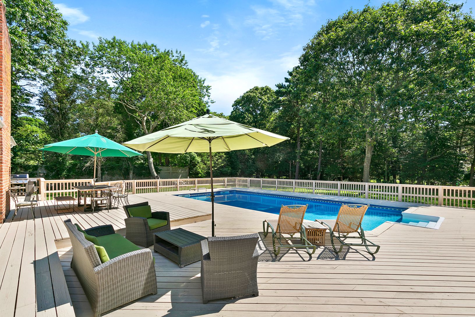 Quiet & serene summer rental, south of the highway with three bedrooms, two baths, heated pool and tranquil setting. Recently updated, light, bright & airy floor plan, with custom kitchen, great room & dining area all featuring vaulted ceilings and hardwood flooring. A newly remastered bedroom & bathroom with access to the outdoors, plus a gas grill for entertaining, making this a fabulous opportunity to enjoy summer BBQ's. A f
