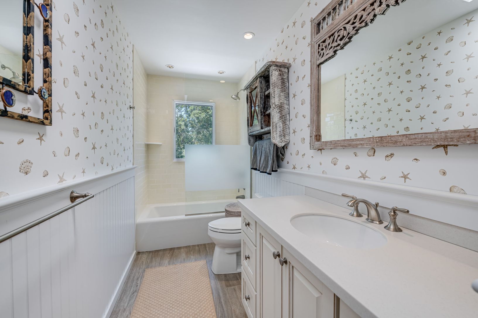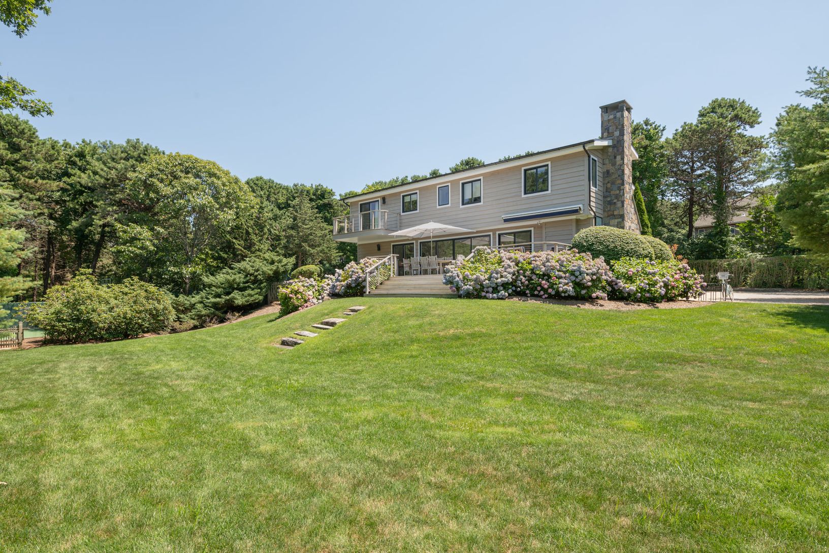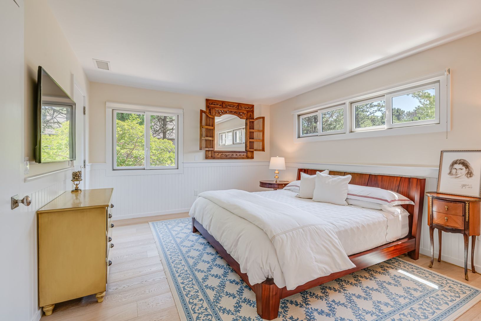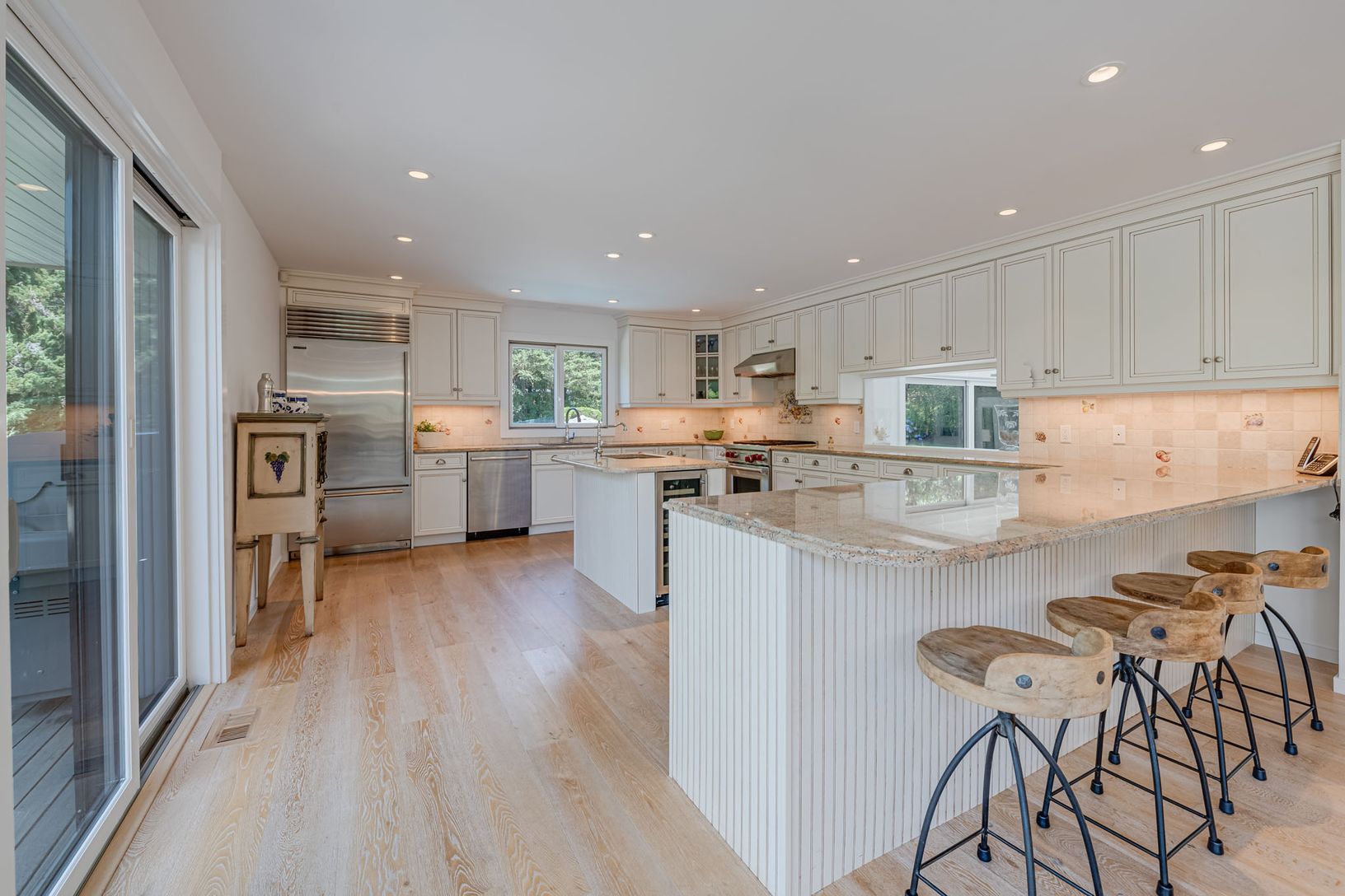 Every design detail has been meticulously considered at this immaculate, sun-filled modern on a gorgeously landscaped super-private shy acre in the Southampton Highlands. The vaulted living room with floor to ceiling doors overlooks the expansive granite patio with multiple seating areas, exquisite plantings and a 48-foot heated gunite pool accented with stacked stone and cascading fountains. The open floor plan also offers a charming sunroom