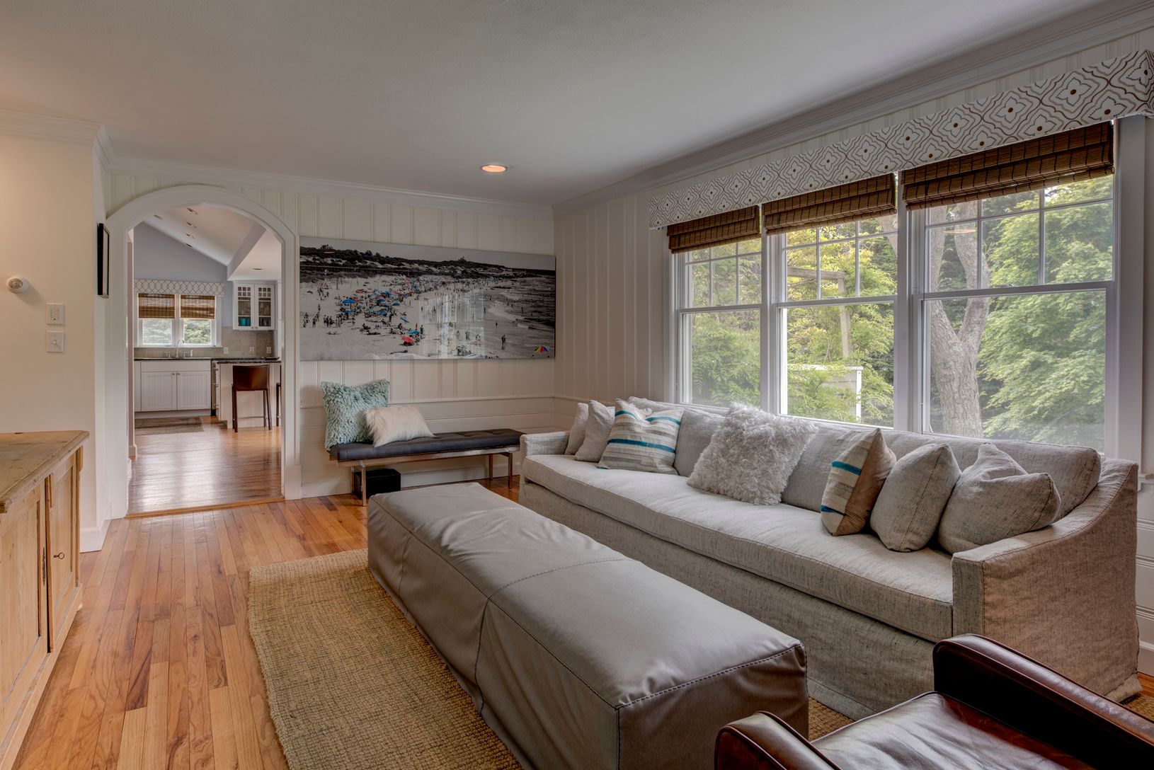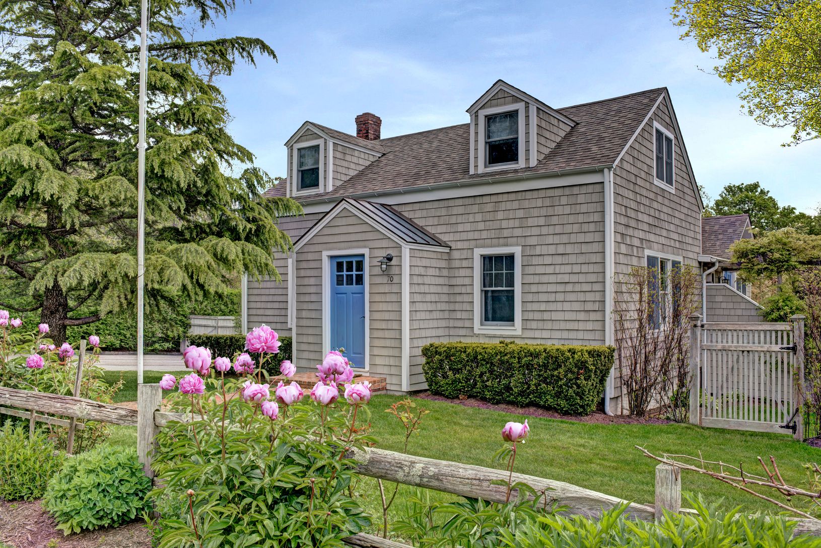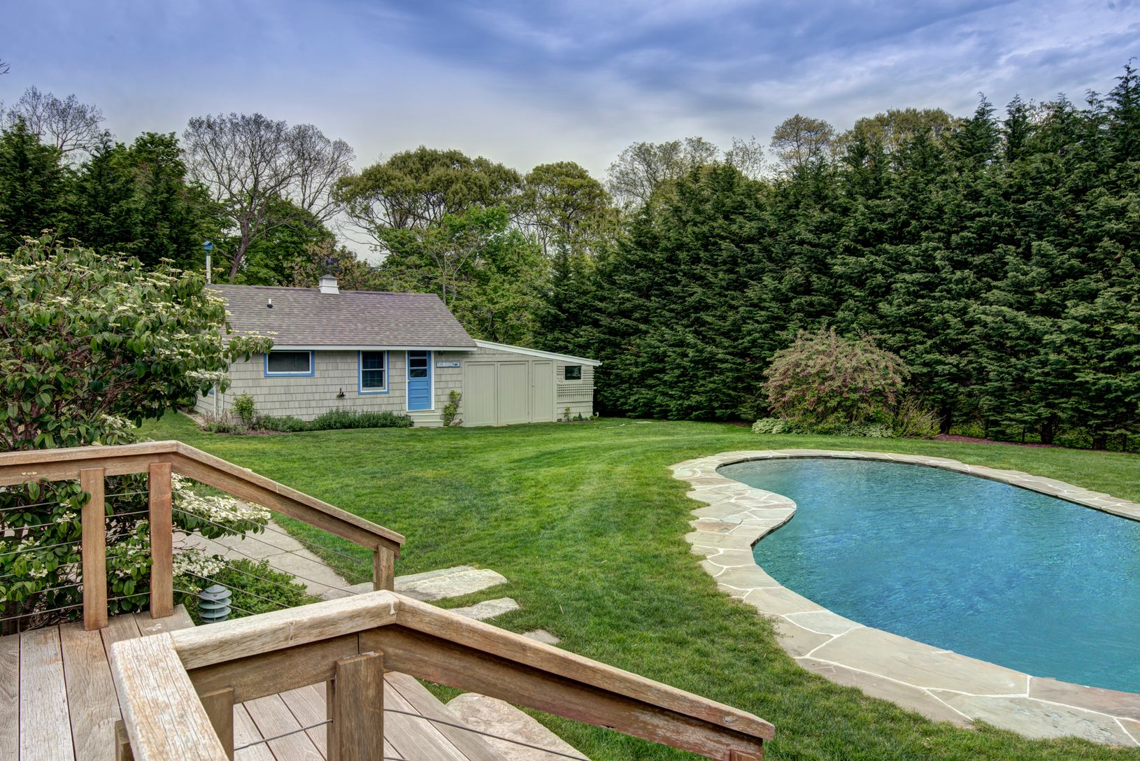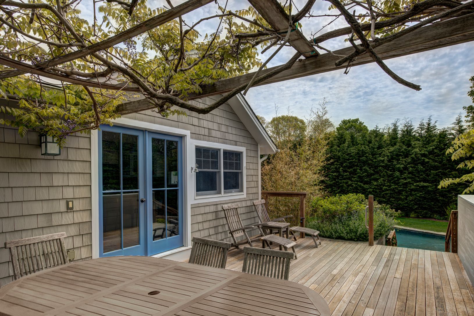 Charming cottage in East Hampton available for sale just a few blocks to East Hampton Village shopping and dining. A welcoming blue door is a distinctive pop of color on this traditional shingled Hamptons home. The 4 bedroom, 2.5 bathroom home with light wood floors throughout is simply elegant with touches of granite, marble, and wainscoting from room to room. The light-filled open kitchen with granite countertops and stainless steel appl