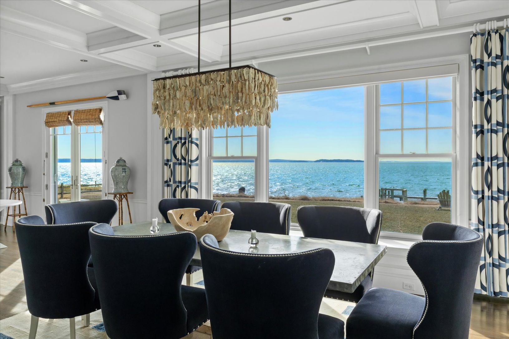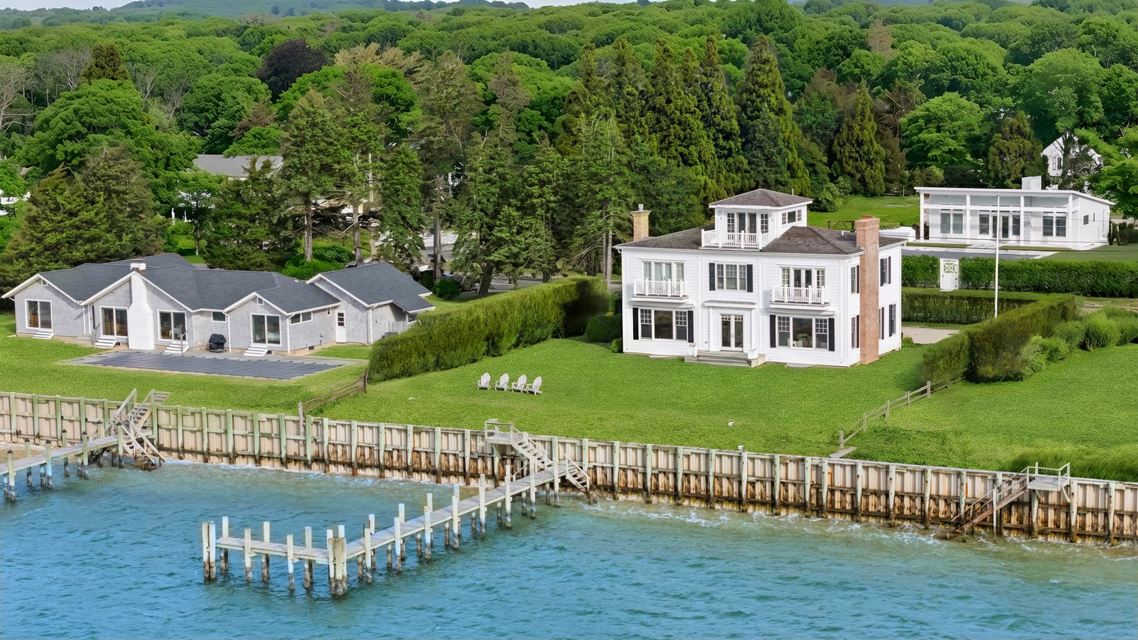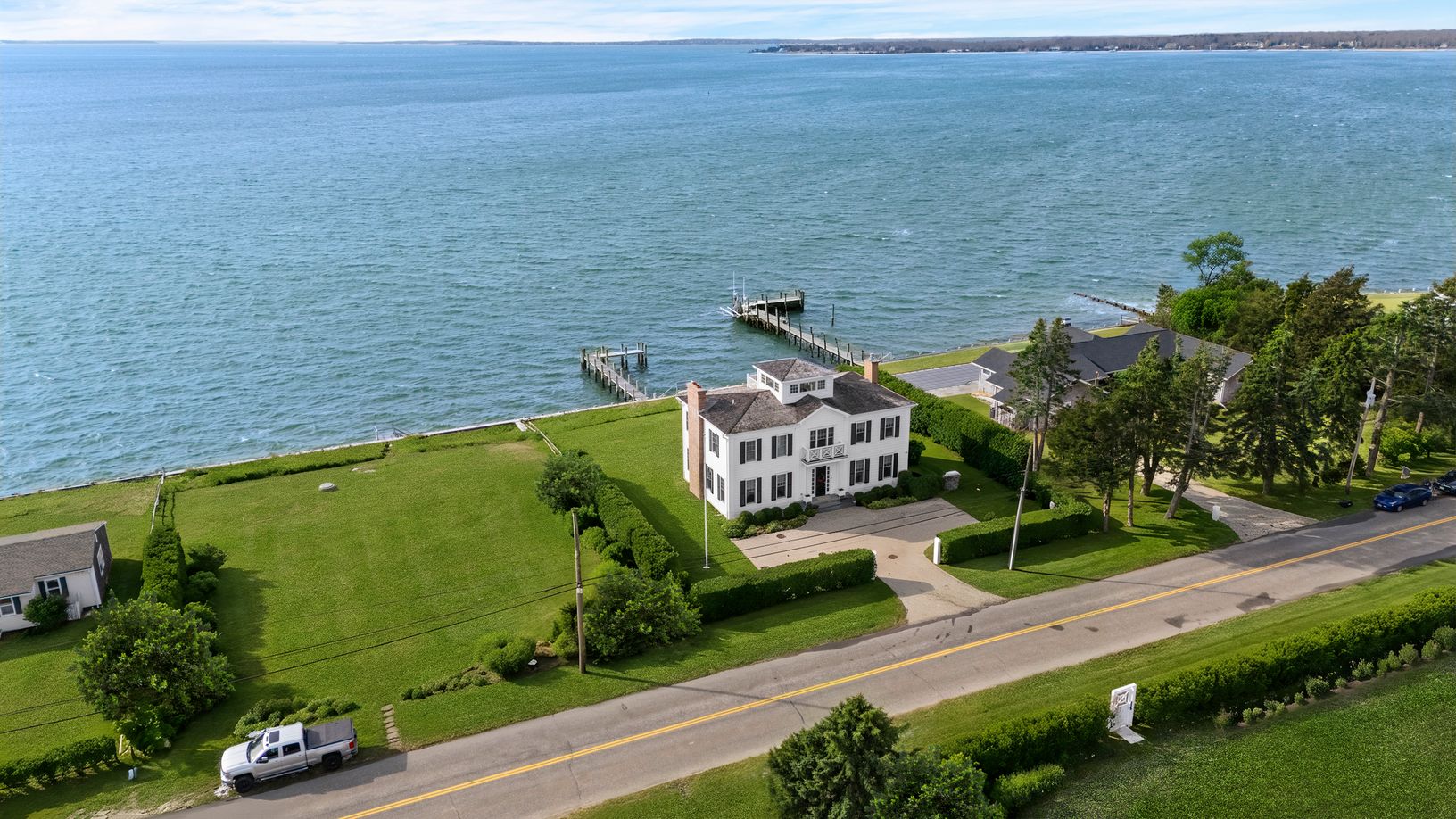 Introducing 70 Peconic Avenue—an irreplaceable, one-of-a-kind waterfront estate commanding sweeping southwest views across the Peconic toward Southampton. With four fully finished levels, nearly every room framed by water, and private shoreline access, this is the kind of property that simply does not come back to market. From the moment you enter the front foyer, the view stops you in your tracks. Sunlight pours through oversized windows, pul