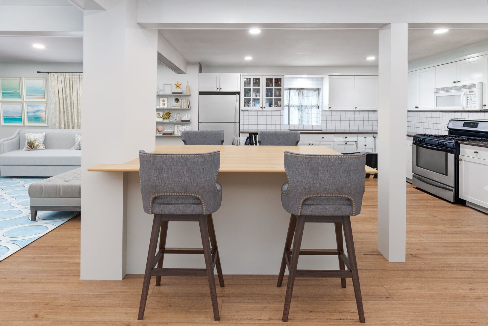 Plenty of light-filled gathering spaces inside including an open-concept kitchen, dining and livi