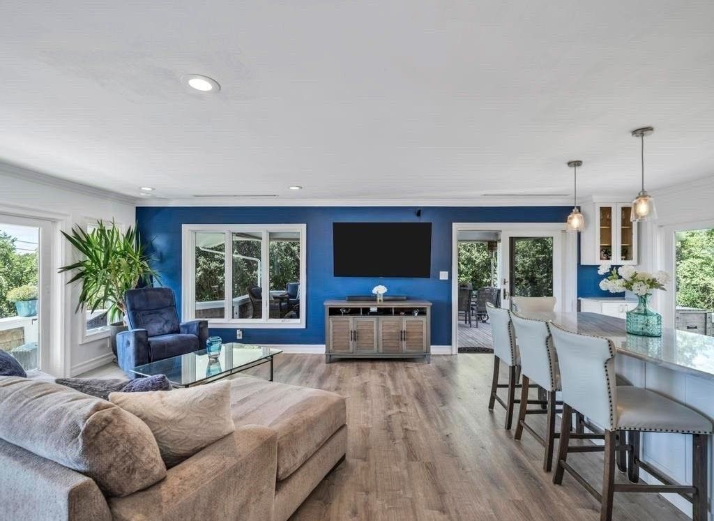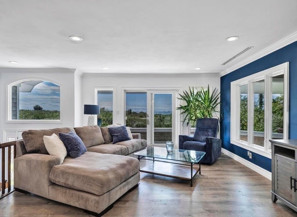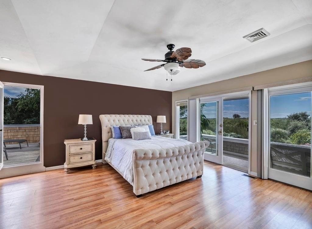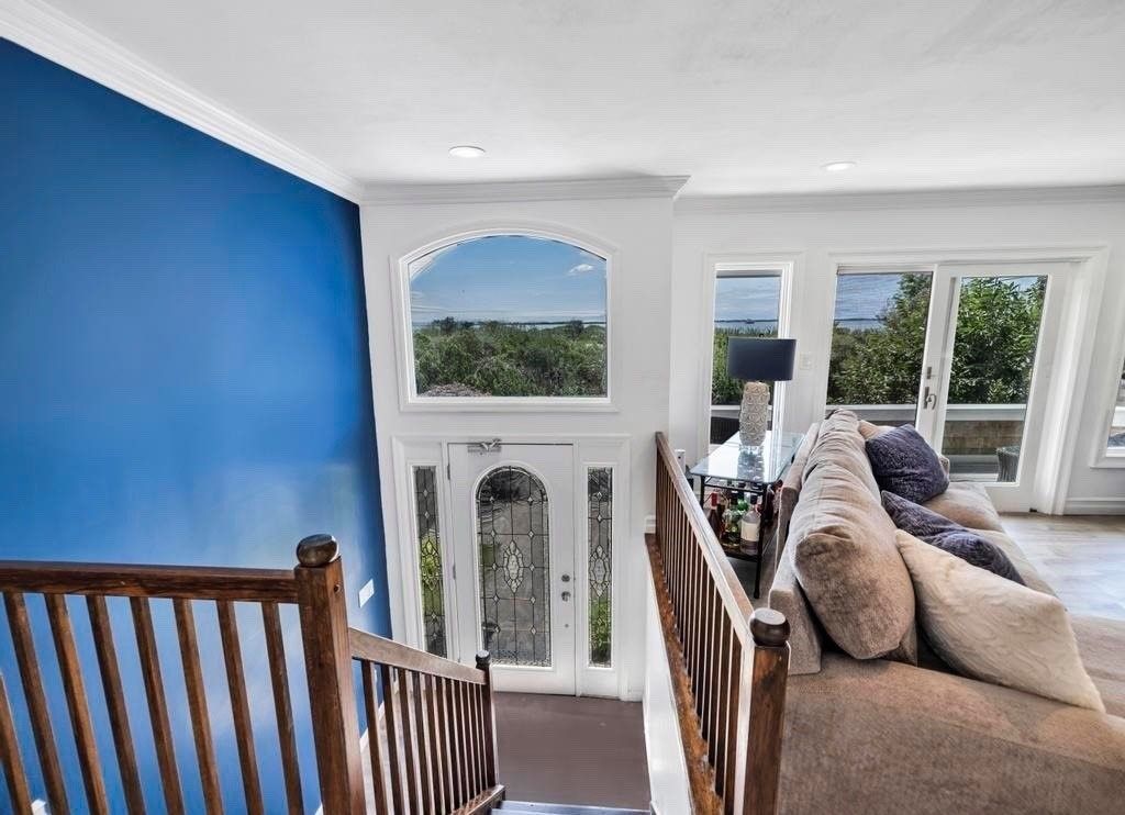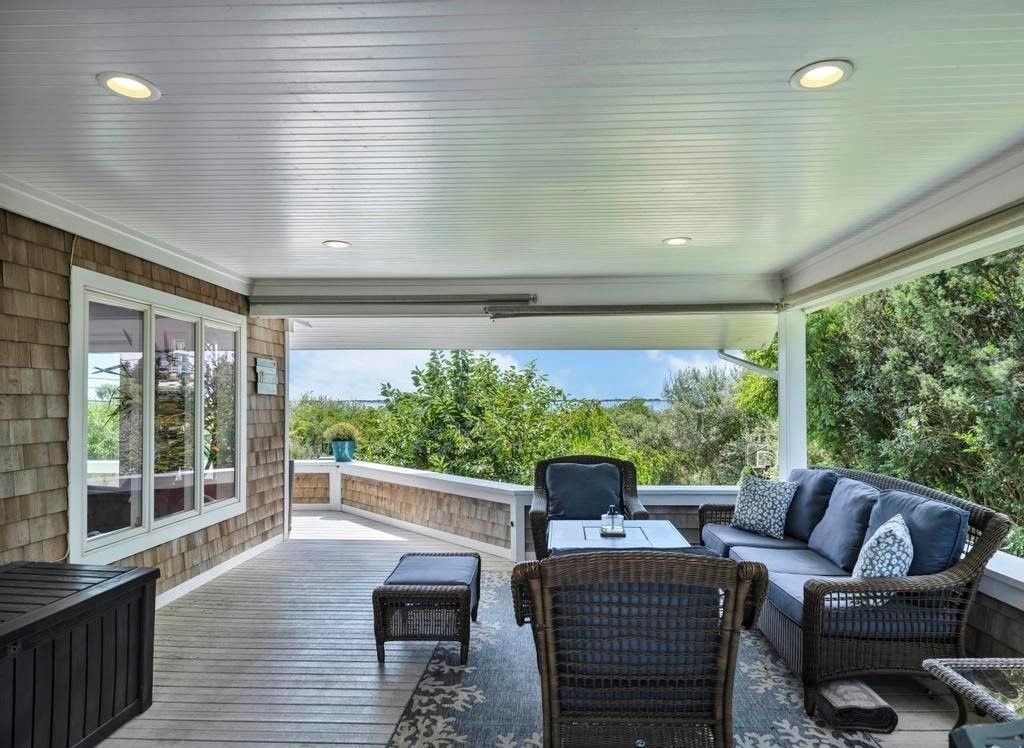 Serene and Private with Water Views - Discover the tranquility of this cedar shake contemporary home, offering unparalleled privacy and panoramic 180-degree views of Moriches Bay, stretching all the way to Dune Road. This property ensures a serene and unobstructed setting with farmland preserved behind the home, sold to the township, and open land across the street safeguarded by the Peconic Land Preservation. The bright, open floor plan featu