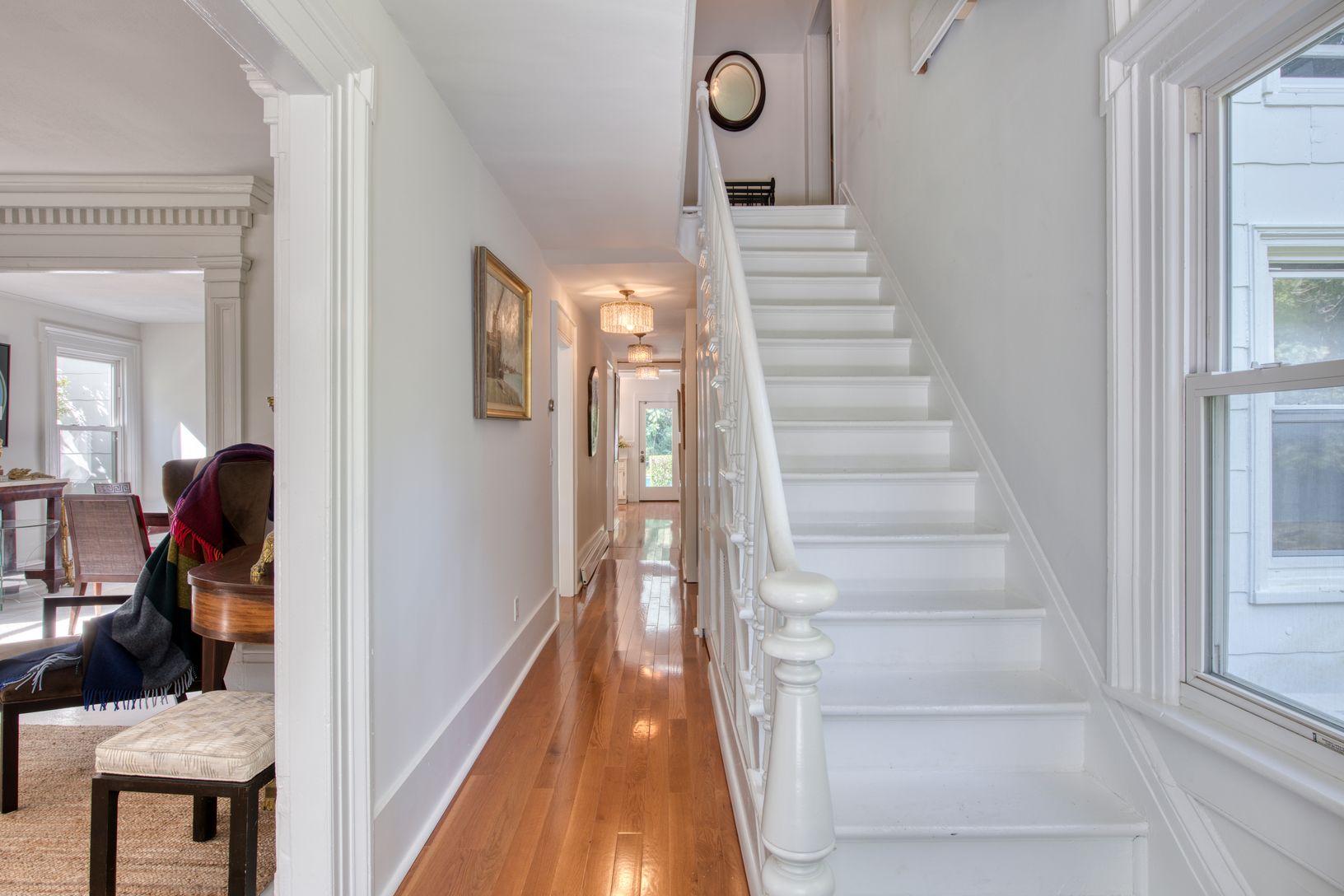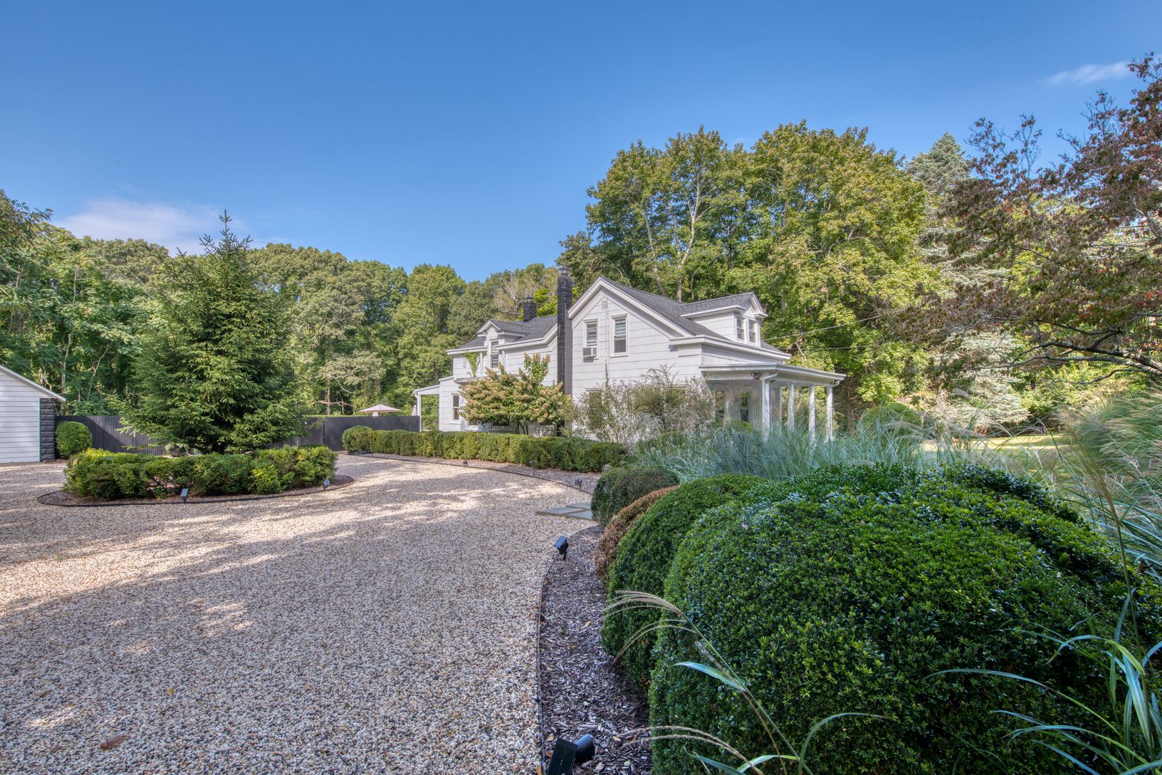 Enter by way of a circular drive to this Designers own fabulous reconstruction and renovation of the Classic and Iconic Captain Cartwright House handsomely landscaped in Shelter Island. This classic 5 bedroom home, detached garage, covered porches, blue stone patios and heated 20 x 40 gunite pool with all the bells and whistles is centrally located between the South and the North Ferries and across the street from the 2350 acre Mashomack Prese