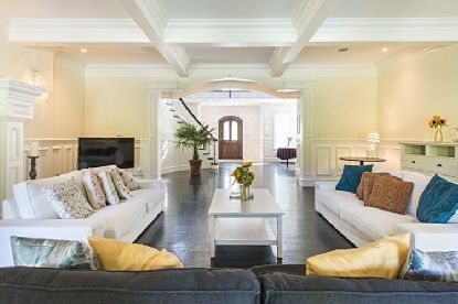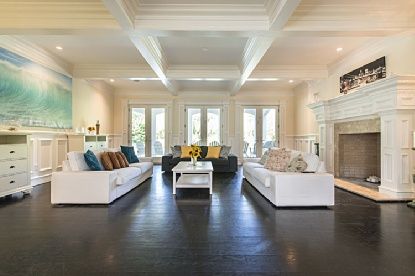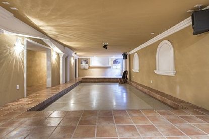 You're in Water Mill, but it seems like Mittel Europa. This stucco mansion sits on over two acres, with beautiful swimming pool area and grounds, large covered patio, outdoor fireplace area, eight bedrooms including both downstairs and upstairs masters, two living rooms also up and down, regal entrance with curving staircase. There is a huge lower level consisting of sitting areas, showers and lounge with long bar and dance floor. All rooms ar