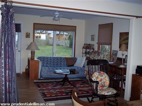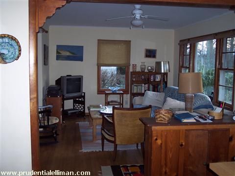 This Cottage has an open kitchen and large living room with views toward the water. One bedroom and bath in Cottage; another bedroom and bath in adjacent studio. Beautifully furnished with all amenities. Door to rear deck and large, private garden. Across from community pavillion on water, ideal for sunsets.