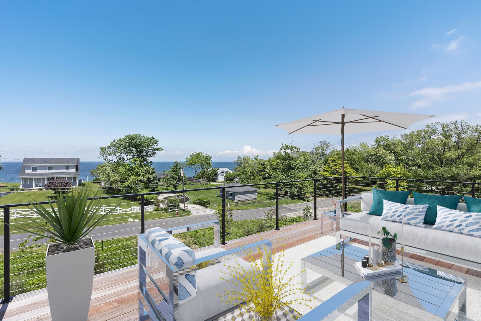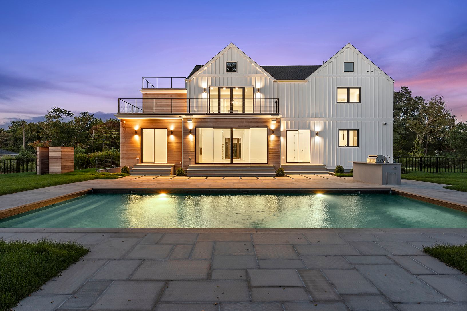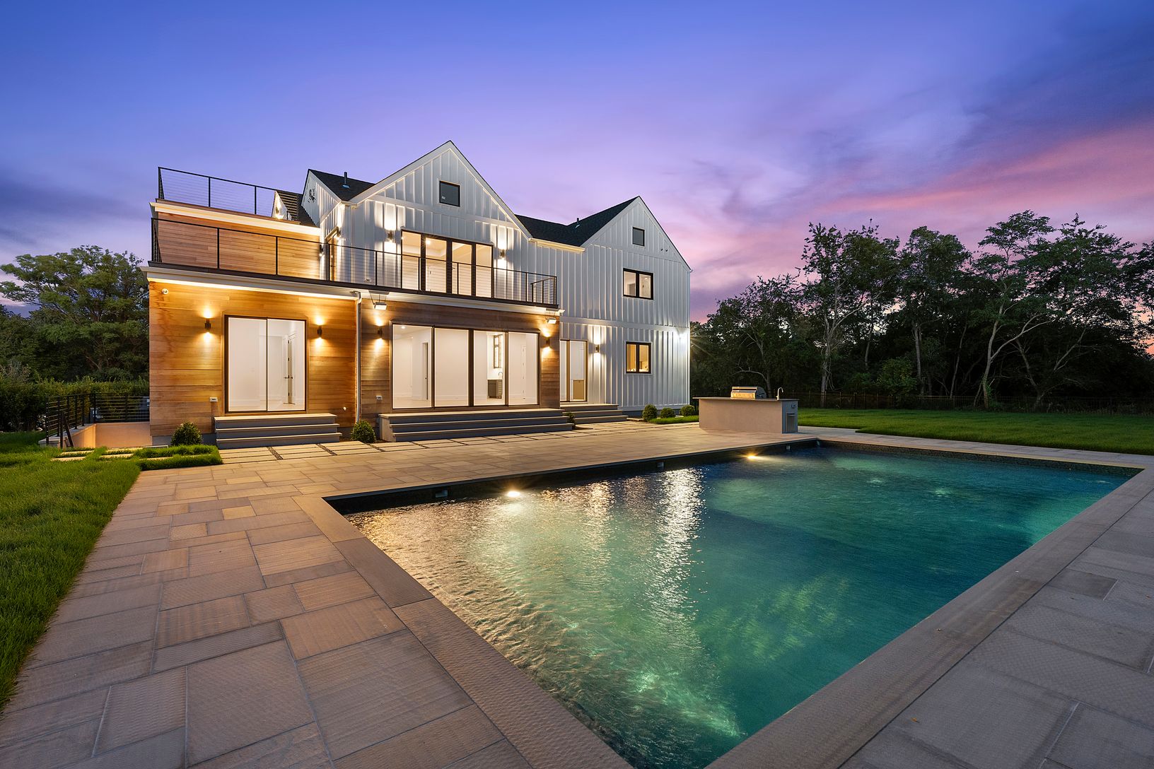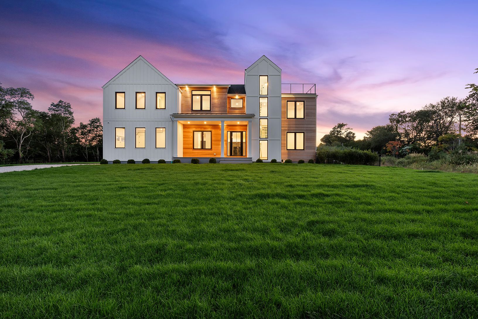 Beautiful custom home located in the hamlet of Southold captures amazing views of the LI Sound. Architectural details include an open floor plan, floating staircase, private roof-top, mahogany decks with horizontal cable railings, and all custom European windows and doors. An expansive luxury kitchen, a chic water-view lounge, and a first-floor ensuite bedroom provide a sophisticated North Fork retreat. The exterior is board and baton mixed
