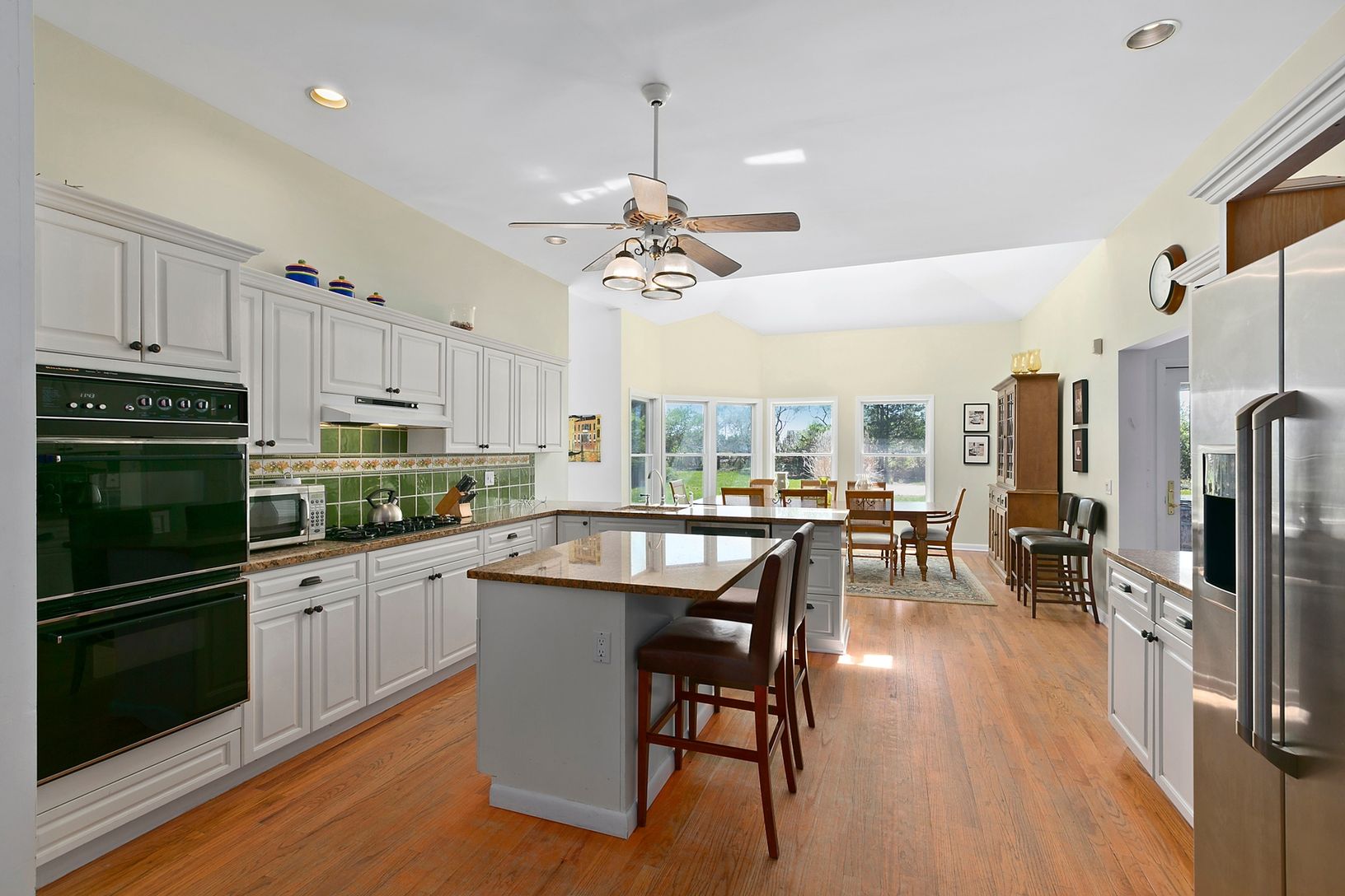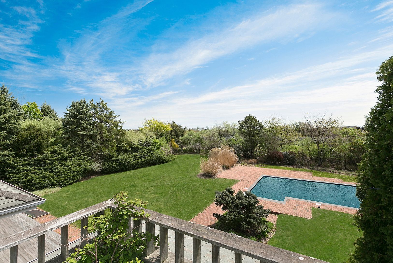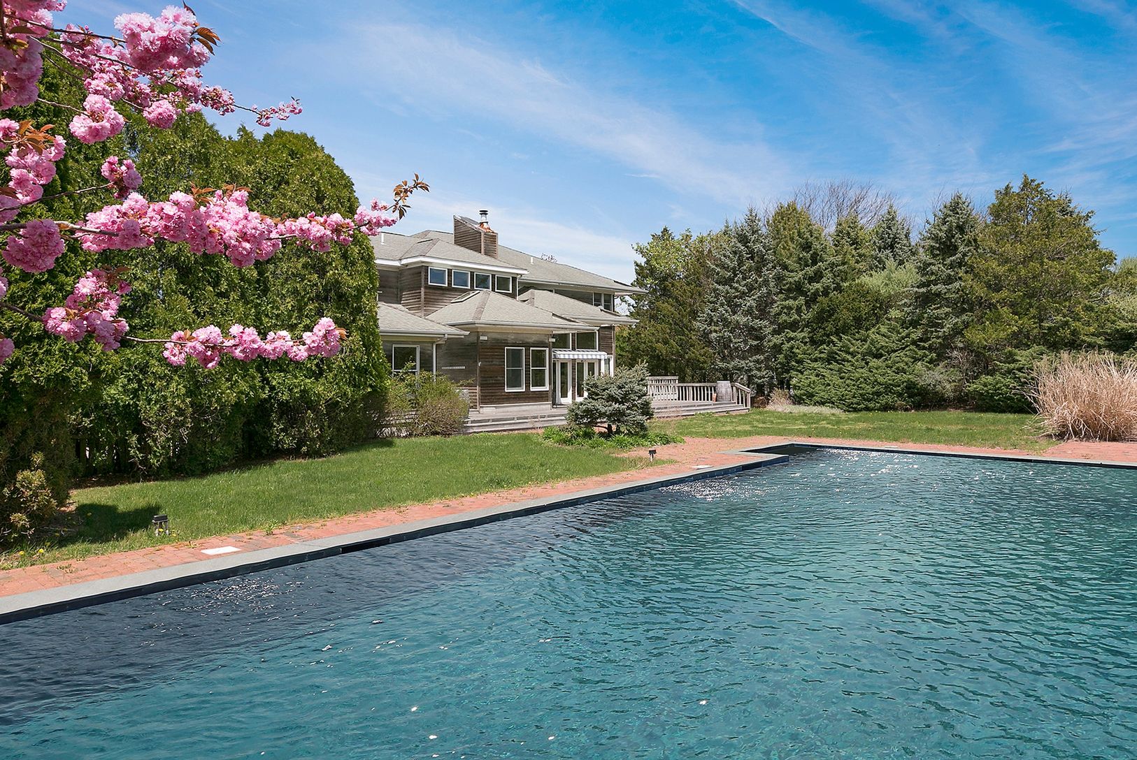 Lovely and bright north of the highway private and serene setting on a cul-de-sac location is back on the market now! Featuring a total of seven bedrooms, five and one-half baths; traditional, sited on .75+/- park like acres with a heated pool and backyard facing reserve, additional features include a great living room with cathedral ceiling with fireplace, a chef's kitchen, dining room, central air conditioning and a finished lower level wit