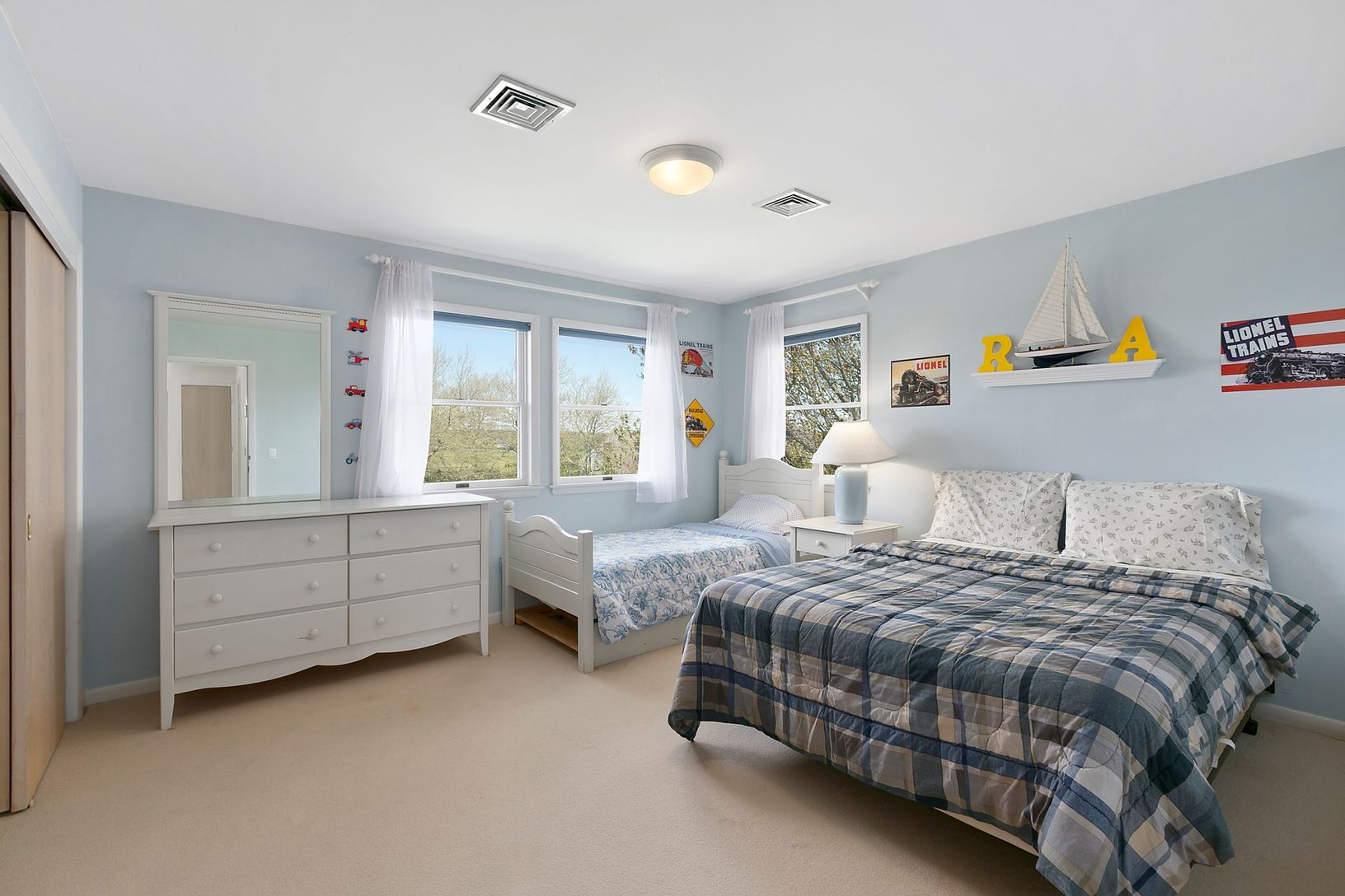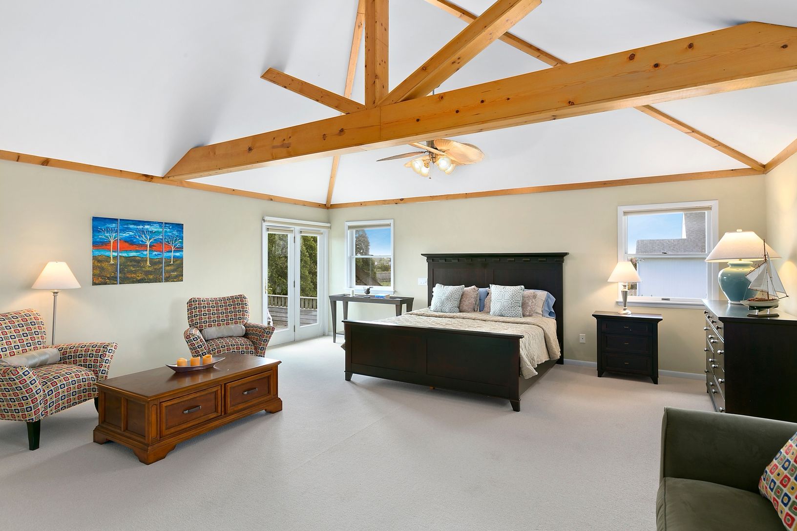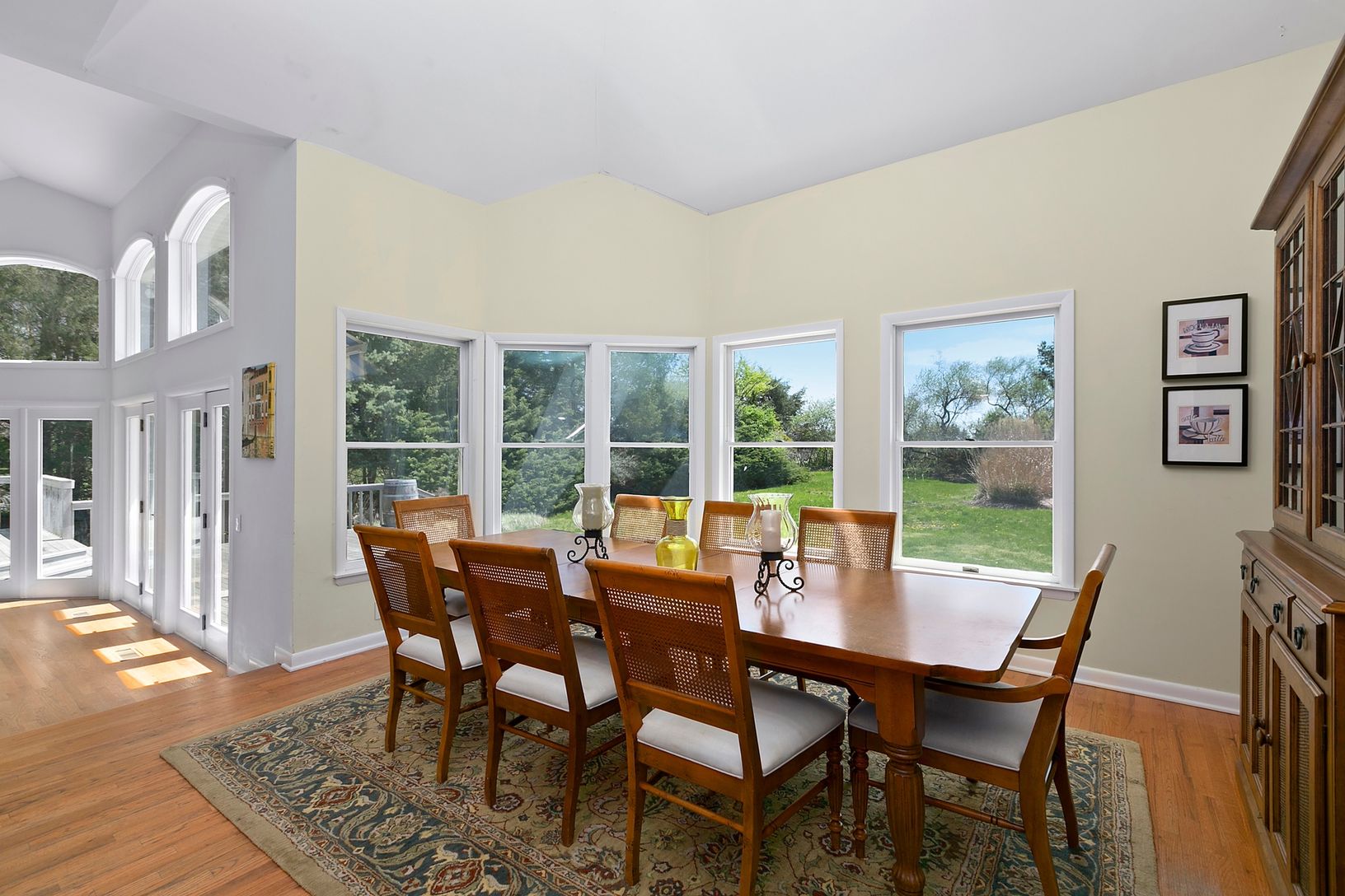 Lovely and bright north of the highway private and serene setting on a cul-de-sac location is back on the market now! Featuring a total of seven bedrooms, five and one-half baths; traditional, sited on .75+/- park like acres with a heated pool and backyard facing reserve, additional features include a great living room with cathedral ceiling with fireplace, a chef's kitchen, dining room, central air conditioning and a finished lower level wit