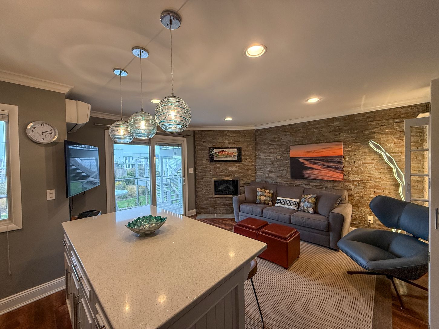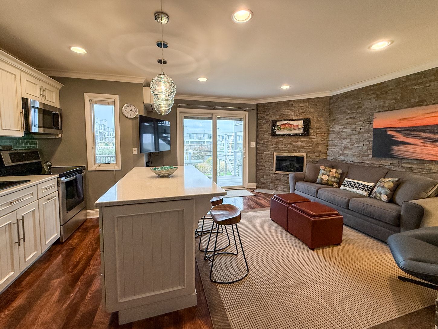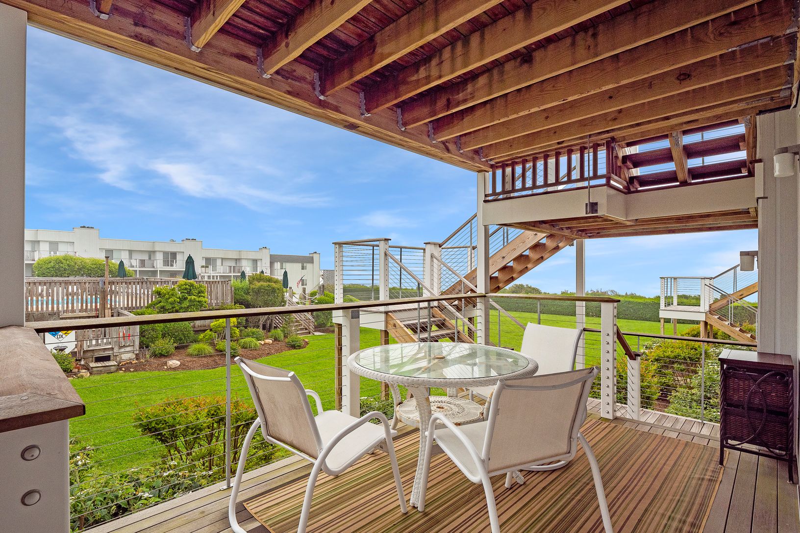 Discover coastal living at its finest with this wonderful year-round co-op, perfectly situated just steps from the Atlantic Ocean and Hither Hills beaches. Enjoy beautiful ocean views from your large covered deck, with private access and overlooking a serene rolling lawn. The thoughtfully renovated open kitchen and living area, complete with a cozy fireplace, creates an inviting atmosphere for relaxation and entertaining. With the beach less t