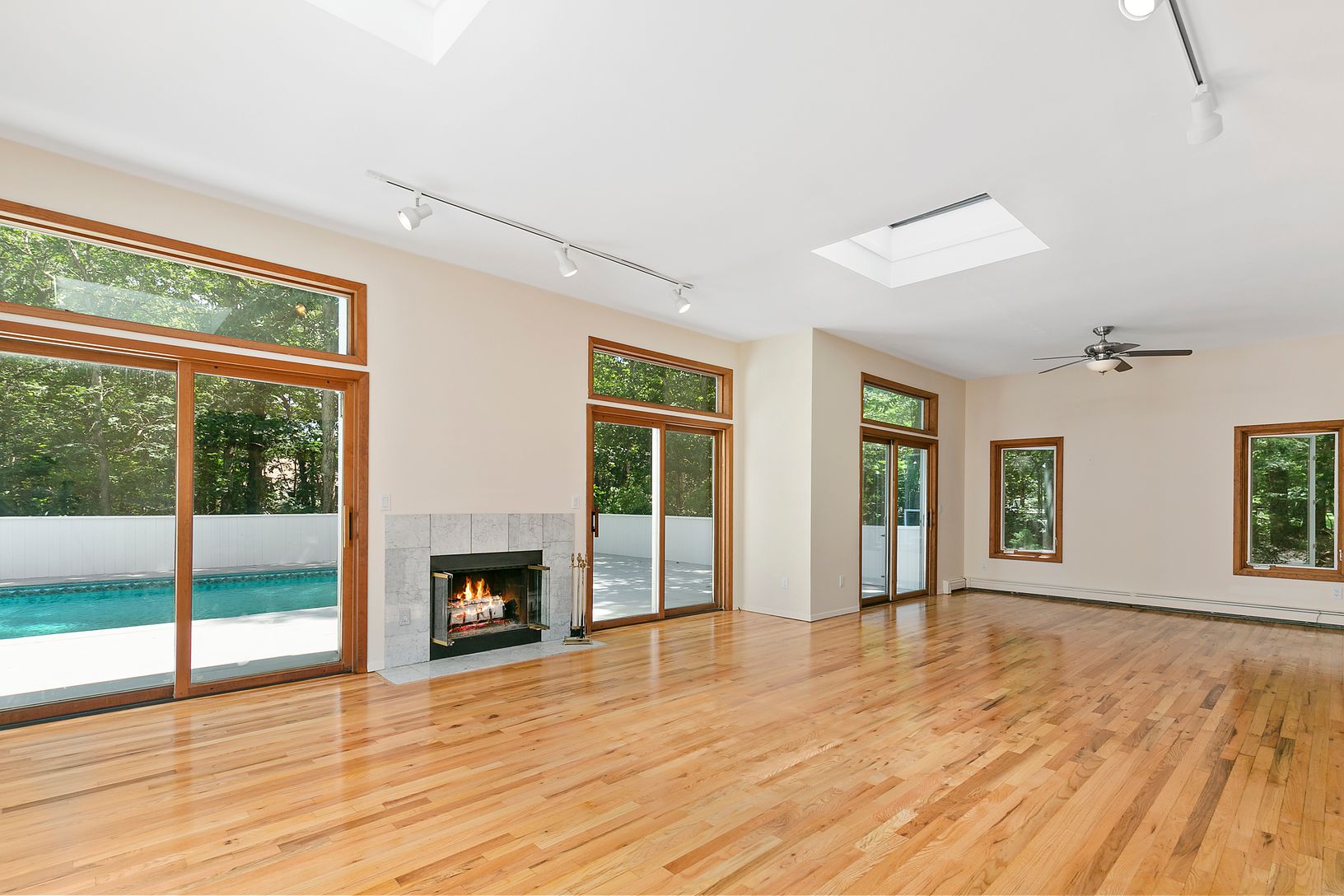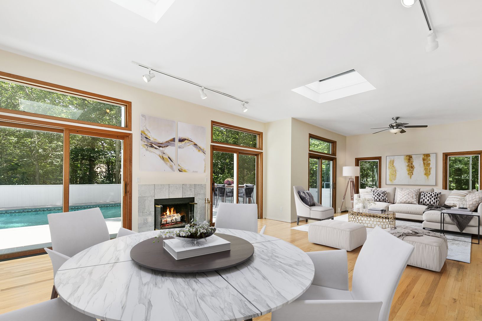 This 3 bedroom, 2 bathroom, crisp, white cedar modern home is the perfect blank canvas. The kitchen opens up to a living area that overlooks the pool along with skylights and a sleek fireplace. The second floor serves as a truly private master suite. This 1+ acre lot is tucked away, yet conveniently close to waterfront restaurants and the village center.