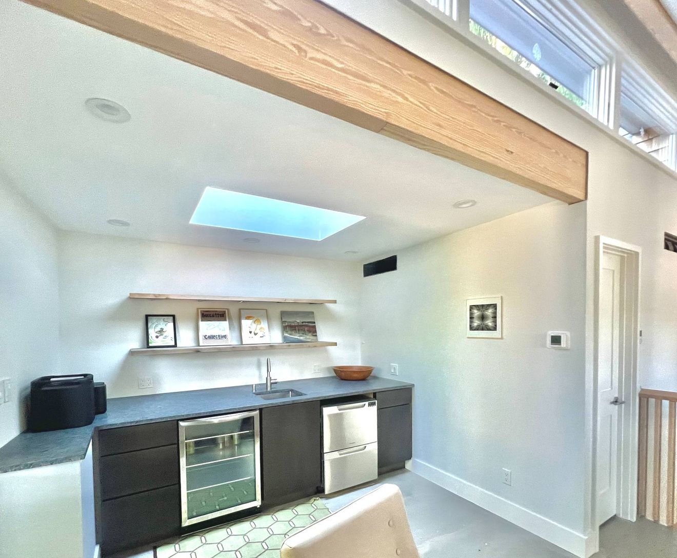Designed with summer fun in mind, 71 IVDW is ready for indoor/outdoor entertaining. This custom renovated home is unique with its slanted tower, beautiful staircases and rooftop deck over looking Long Beach. Located on one of the highest points in the area, this newly renovated, contemporary home combines relaxed living with Hamptons luxury. Surrounded by trees, gardens and flowering container pots, this green getaway is the perfect spot to u