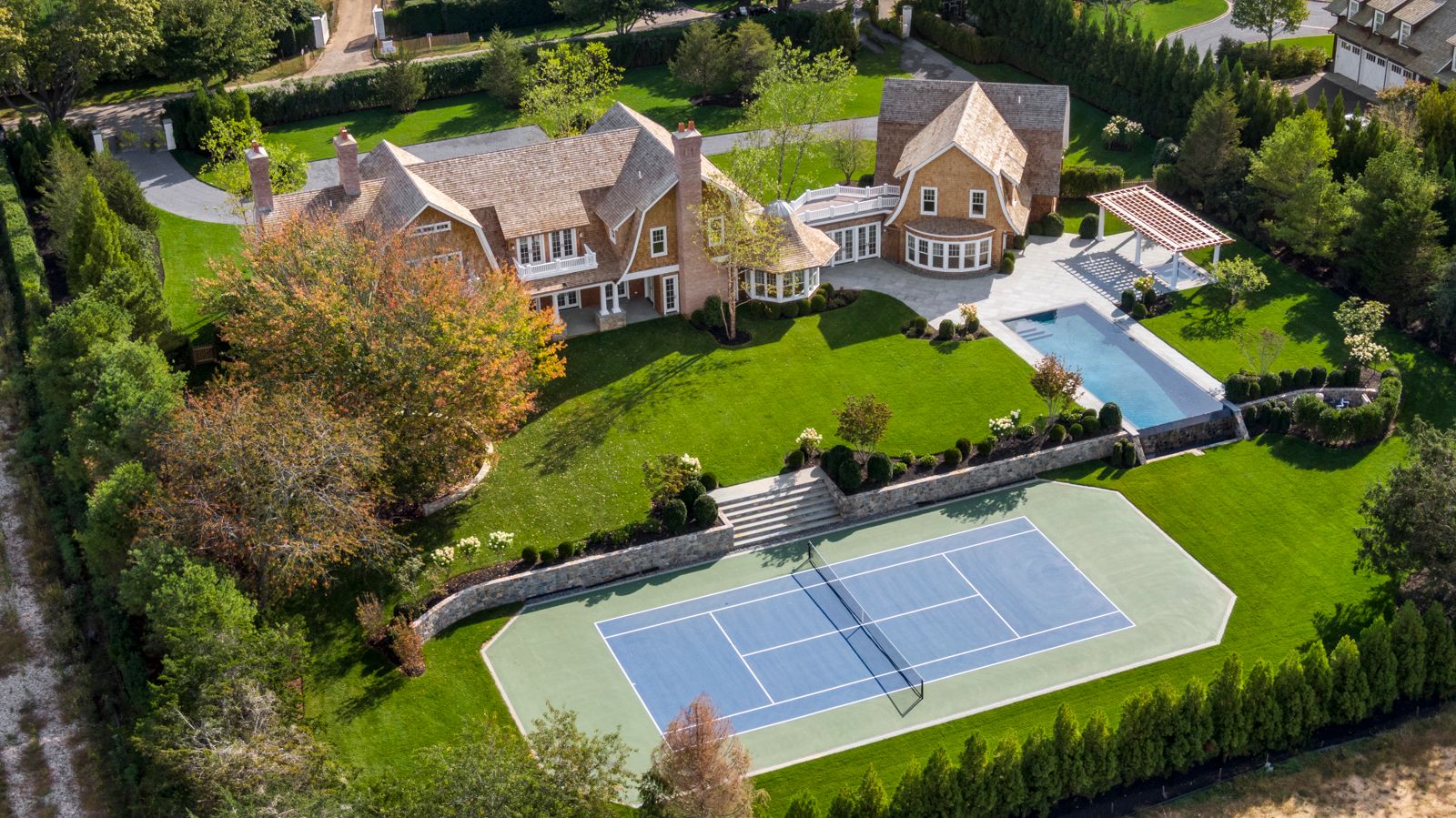 This magnificent approximately 11,000 square-foot Estate was designed by renowned Hamptons' architects Fleetwood & McMullan. A prime example of Traditional Hamptons style with its peaked roofs, generous square footage, and spacious porches, the home was constructed to exacting standards inside and out by the award-winning Hamptonbuilder. Ideally located in Southampton's exclusive Murray Compound, the home sits on nearly two stunning acres
