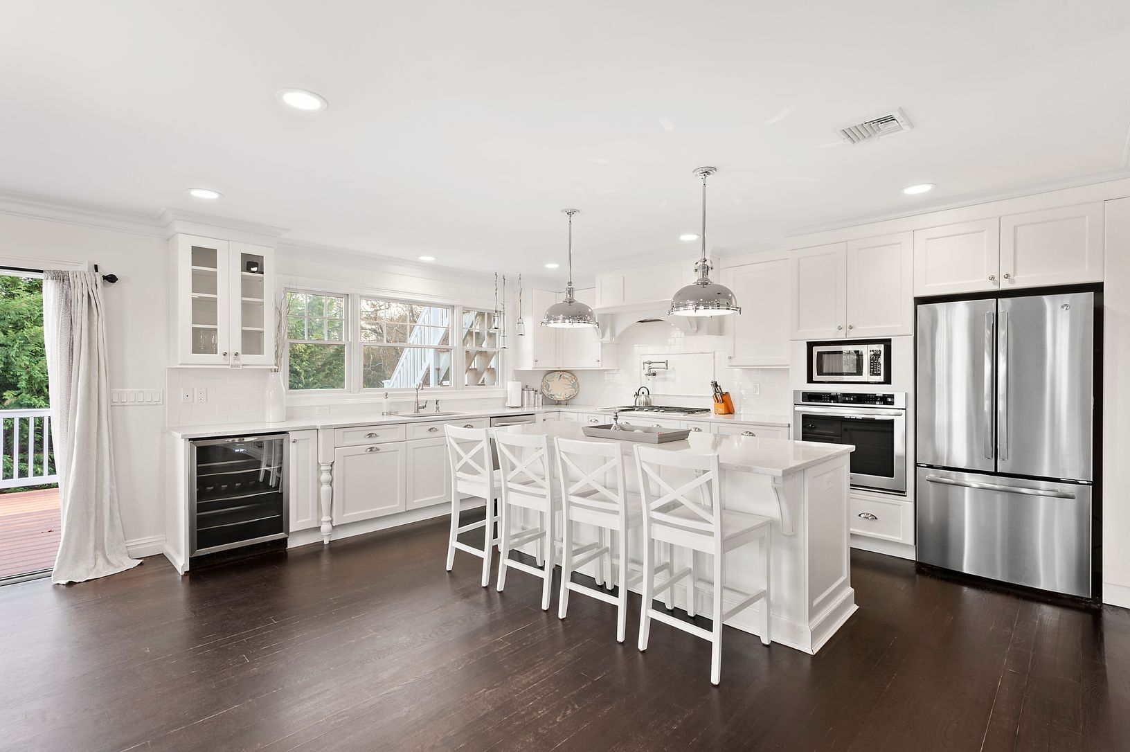 This Turn-Key Renovated Montauk 4 bed 3.5 bath home offers beautiful light and vistas over the ocean and fort pond. Upstairs features a spacious open layout living/dining room with ample room for entertaining and a wood burning fireplace. A large modern open concept kitchen appointed with stainless steel appliances, wine fridge and a large center island. The main floor features 4 spacious bedrooms and 3 bathrooms. A full ceiling height basemen