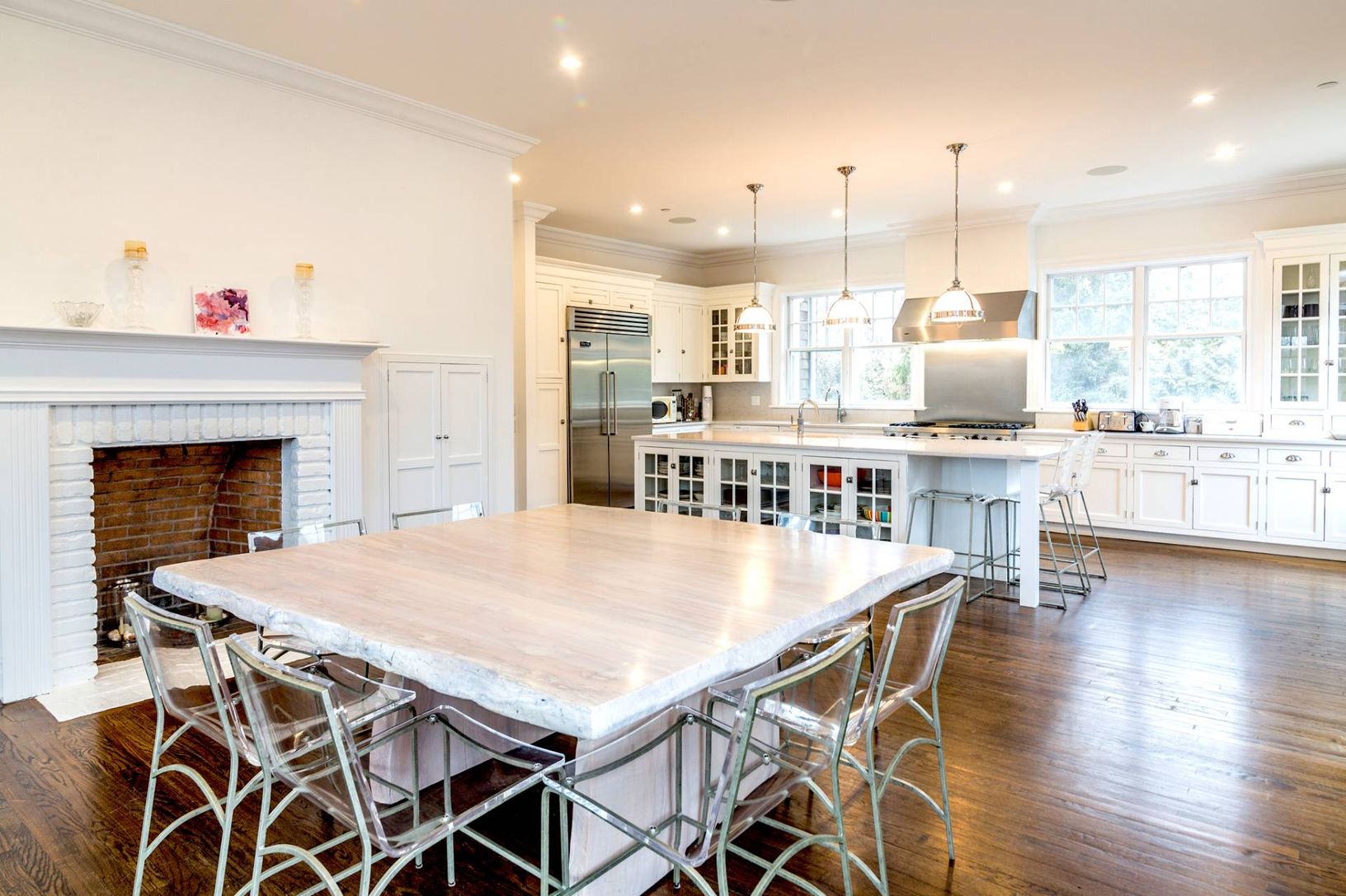 This stunning, elegant waterfront Gambrel style home with a dock offers a spectacular view over Lake Agawam and direct spectacular sunsets. The six bedroom and six and one-half bath home features a chef's kitchen with Viking appliances, formal dining room, and grand living room perfect for entertaining plus family friendly den and playroom. There is a new gunite heated waterside pool with extensive patio and lawn. Moments to the Village shops