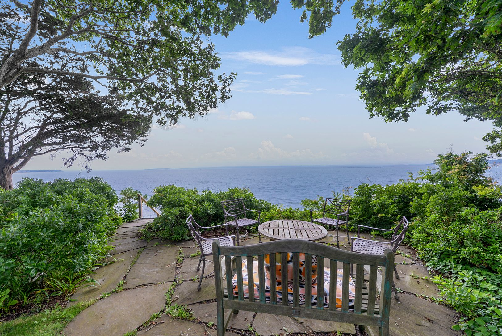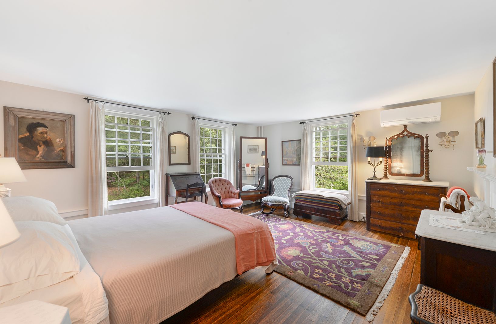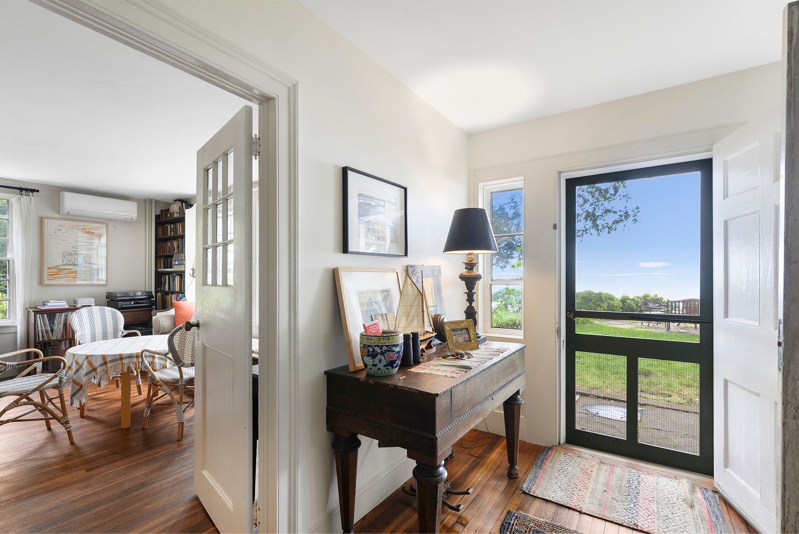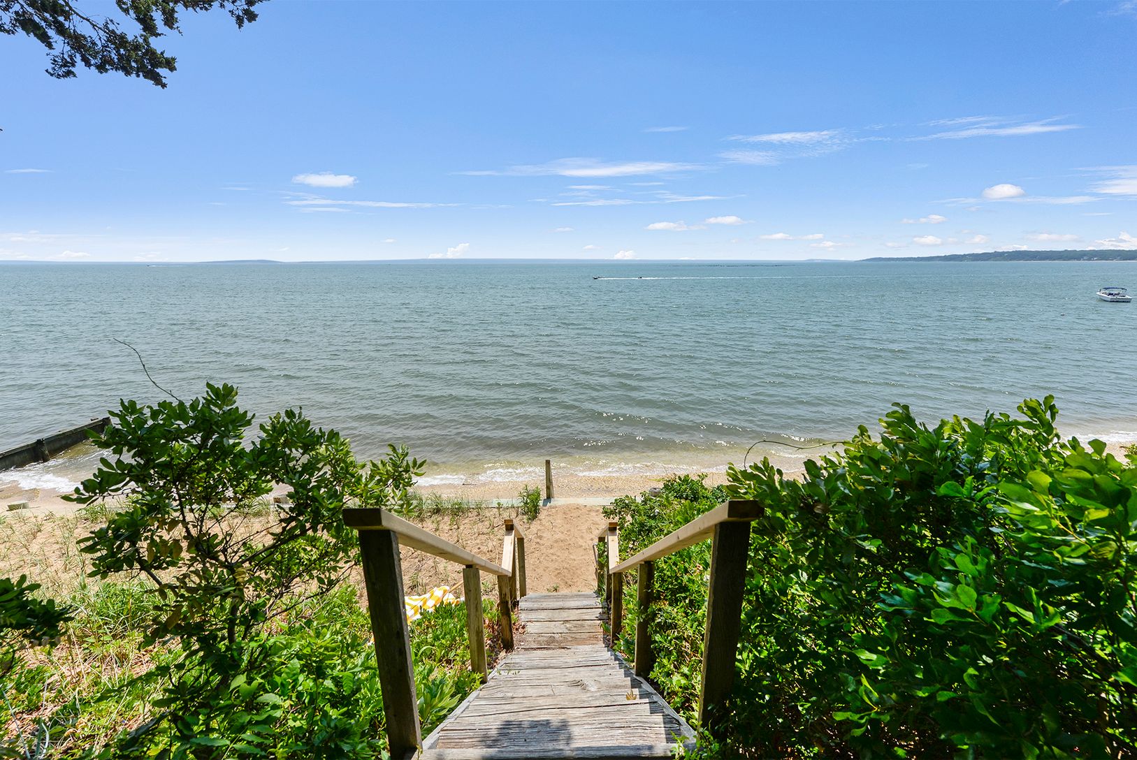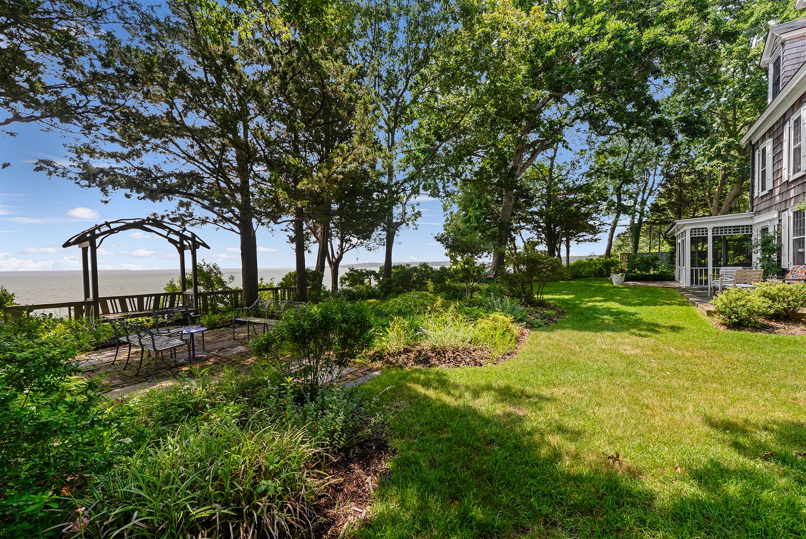 On the bay in Peconic, this historic artists' home, built in 1911, has gorgeous views of Peconic Bay and private stairs down to the beach. The beautiful Peconic Bay's beach is long and sandy. The property features a large lawn, perfect for games, and several outdoor tables and benches to take in the views. The interiors are decorated with antiques and contemporary furniture. Enjoy evening dinners with the moon over the bay in the screened-in