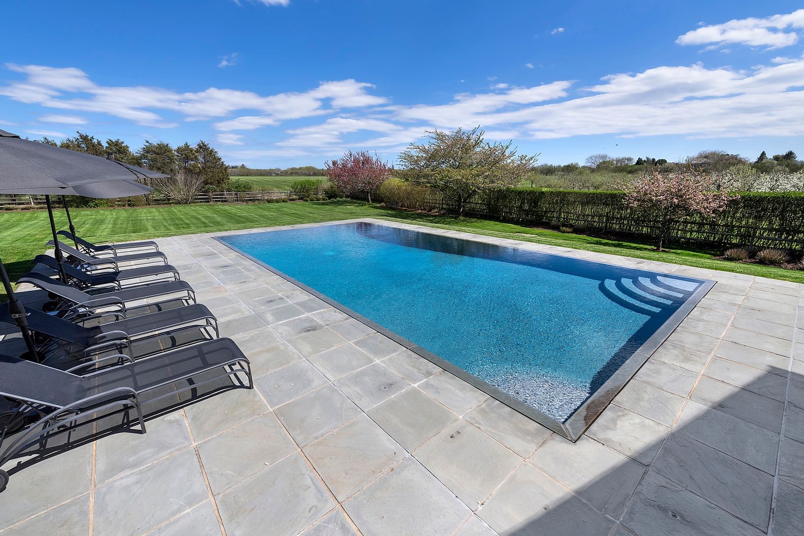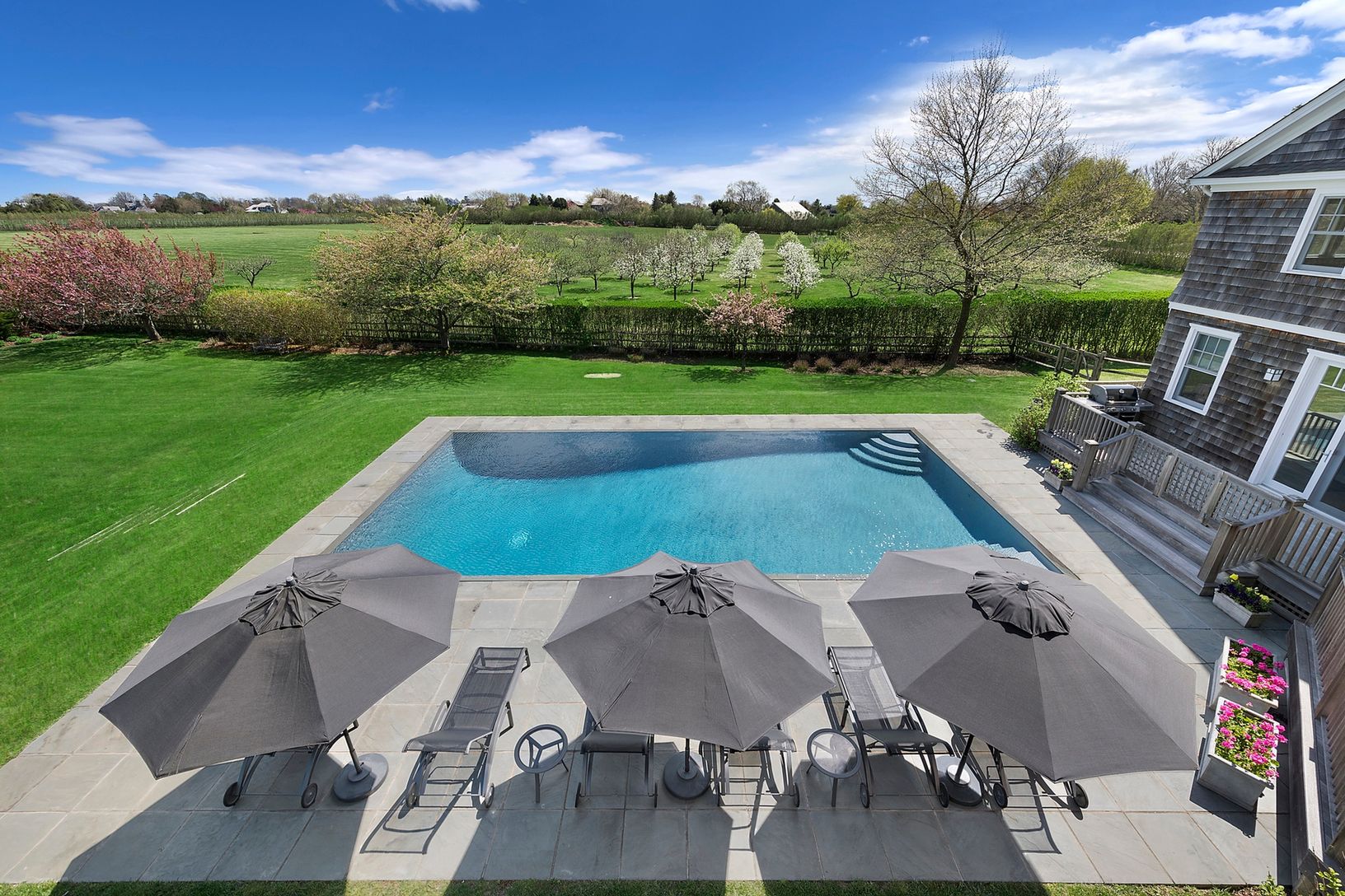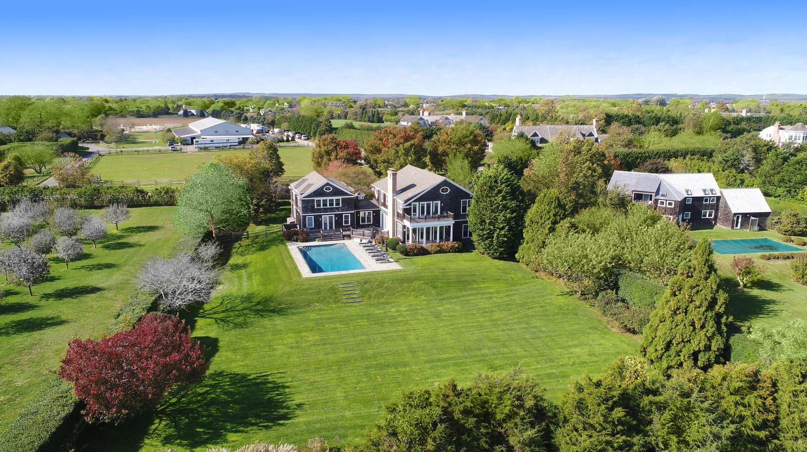 A beautiful traditional custom shingled home with large infinity edge pool in a very special south of the highway location, surrounded by 50 acres of reserve. Meticulously designed by Hampton's own John Laffey to take full advantage the natural light, space and open views. Close to the ocean beaches and far south of the highway with stunning farm views, reserve on two sides, across the entire back of the property, plus horse farm across the st